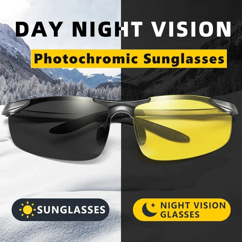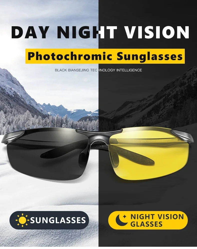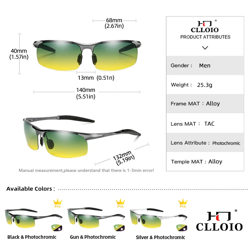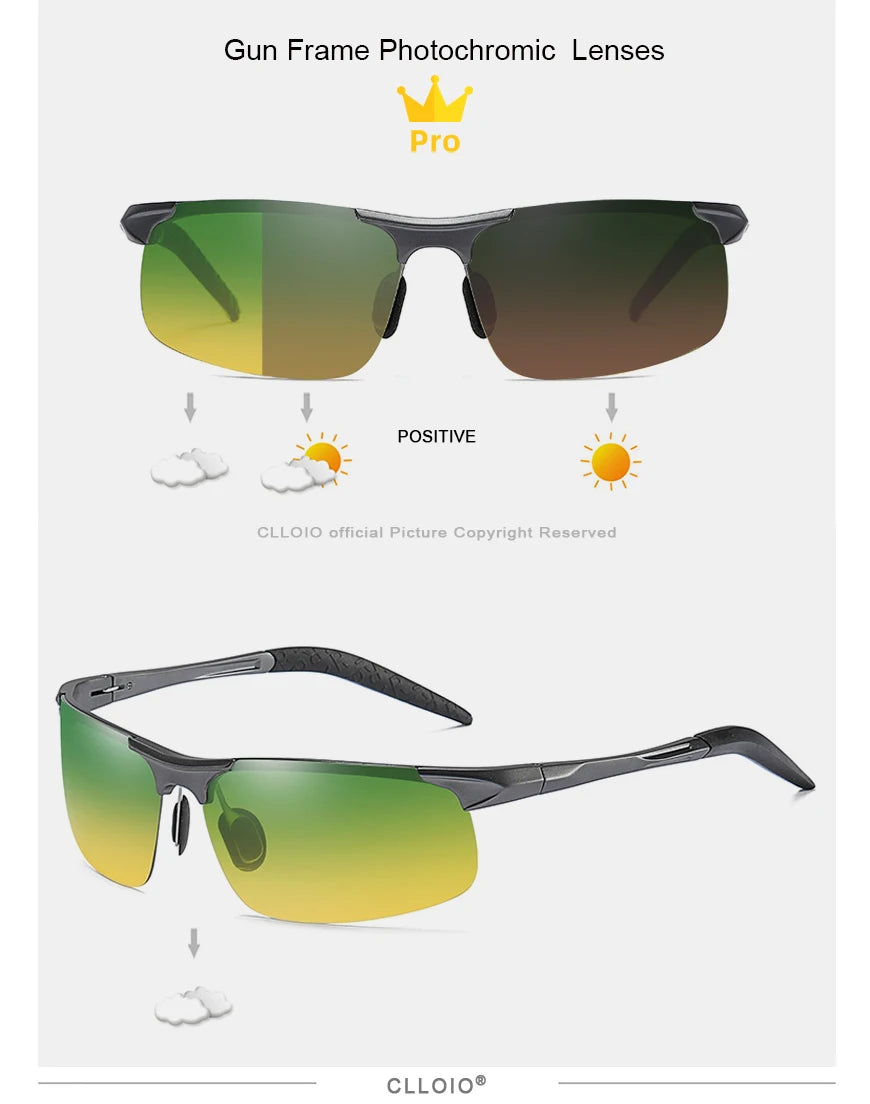 Ochelari de vedere fotocromatici CLLOIO, fără ramă din aluminiu, pentru zi și noapte – Vedere mai clară în timpul conducerii și călătoriilor