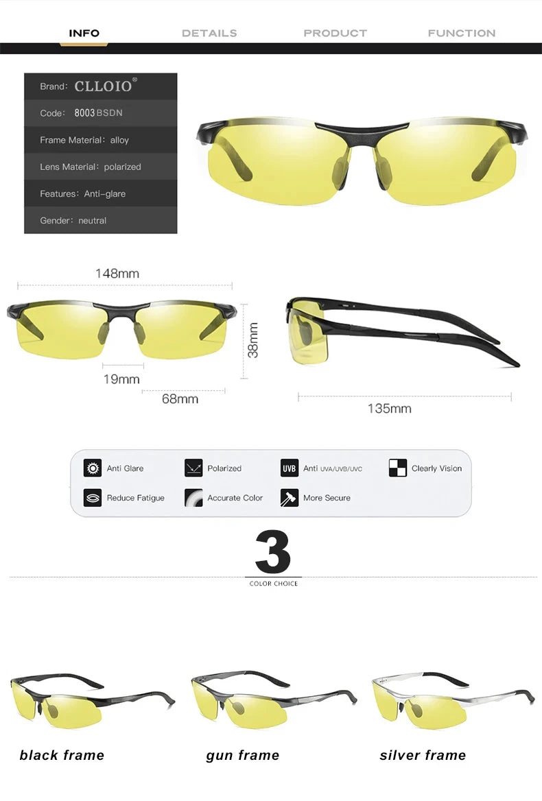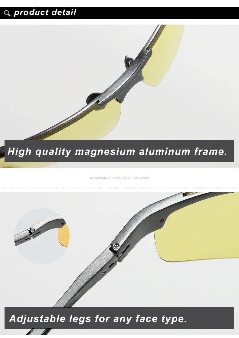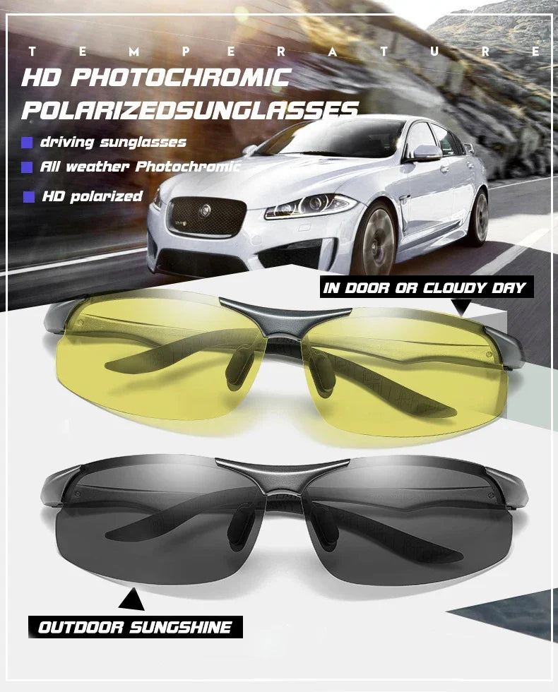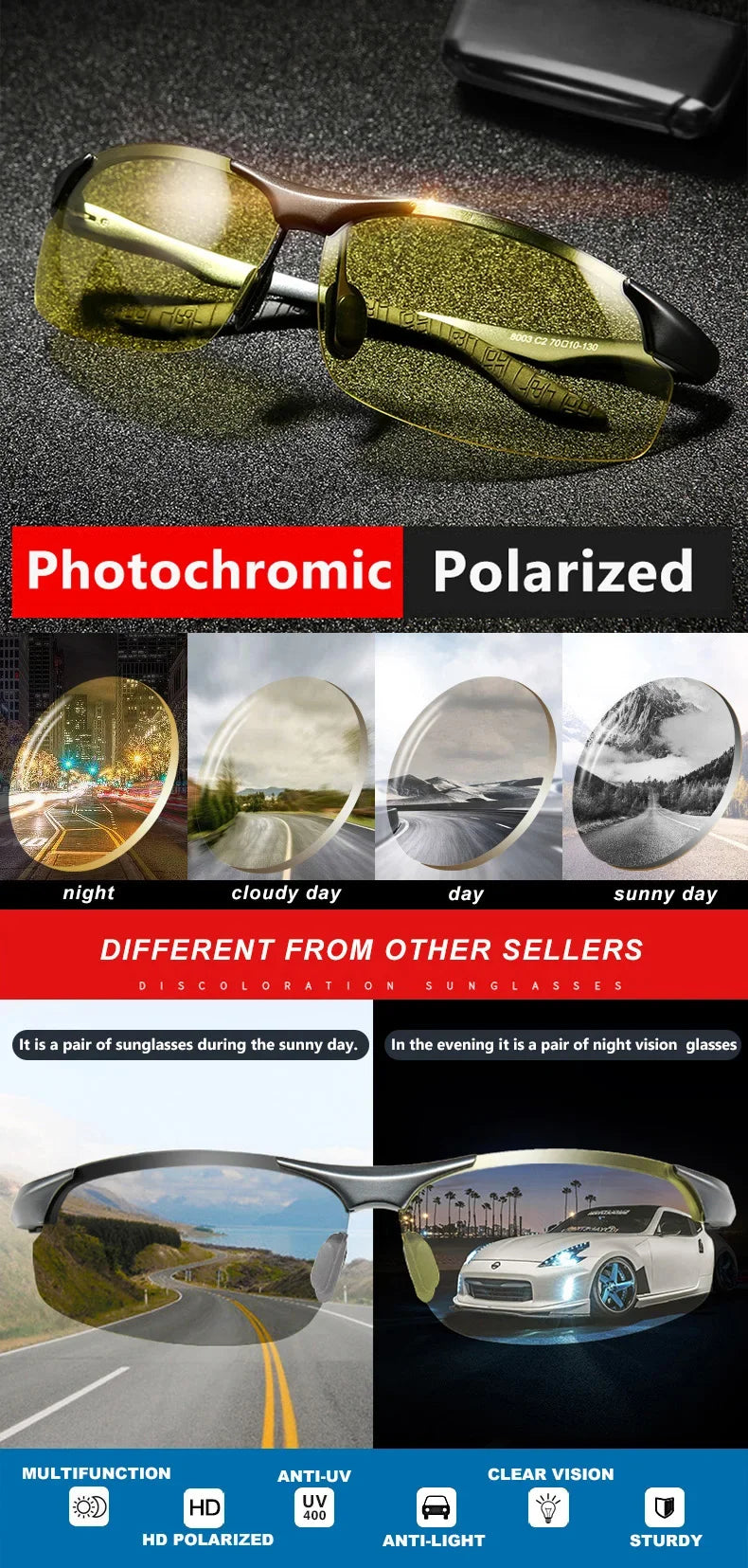 Ochelari de vedere fotocromatici CLLOIO, fără ramă din aluminiu, pentru zi și noapte – Vedere mai clară în timpul conducerii și călătoriilor