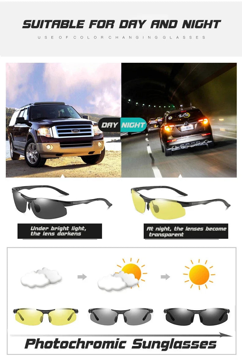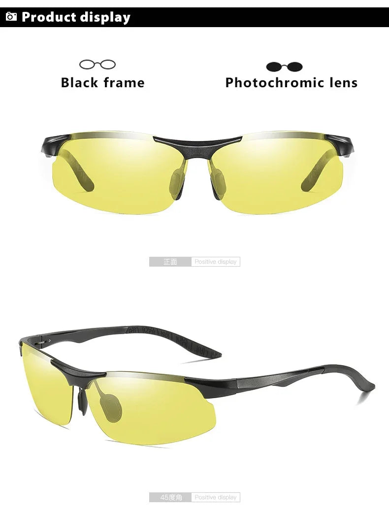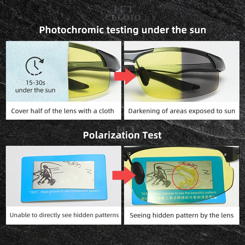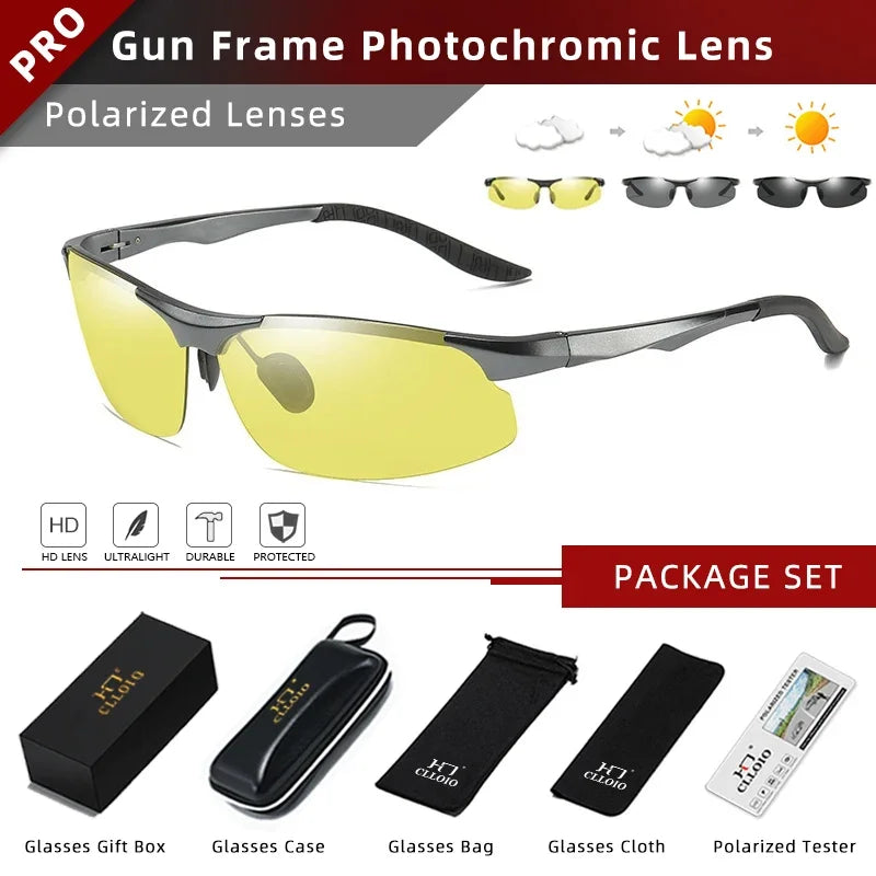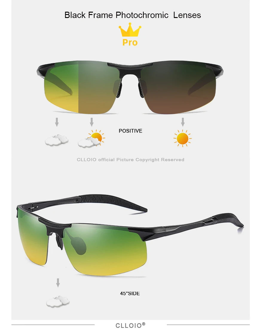 CLLOIO Ochelari de soare fotocromatici fără ramă din aluminiu CLLOIO, viziune de zi și noapte, anti-orbire, pentru bărbați, ochelari de soare polarizați pentru condus, ochelari de pescuit pentru călătorii