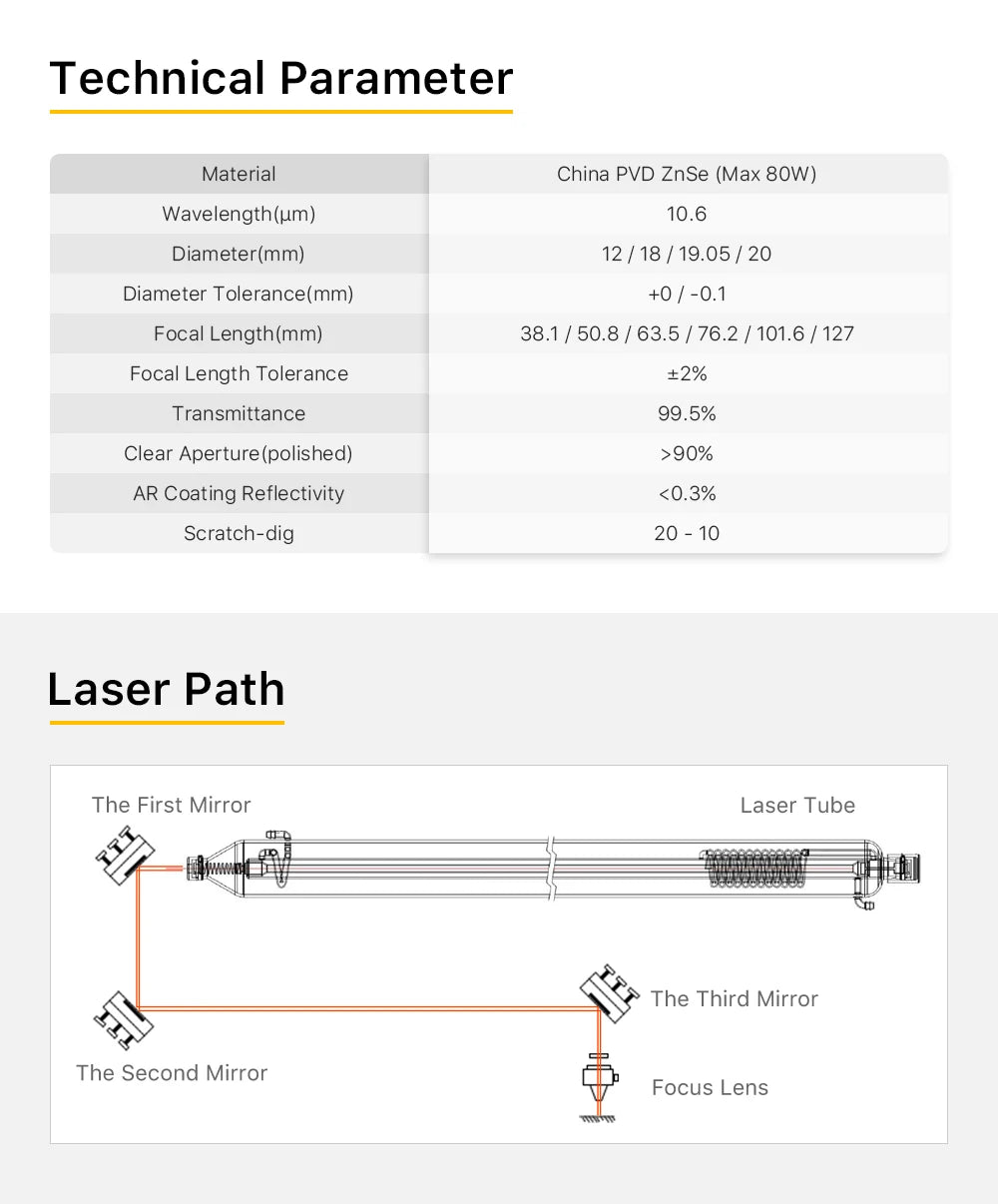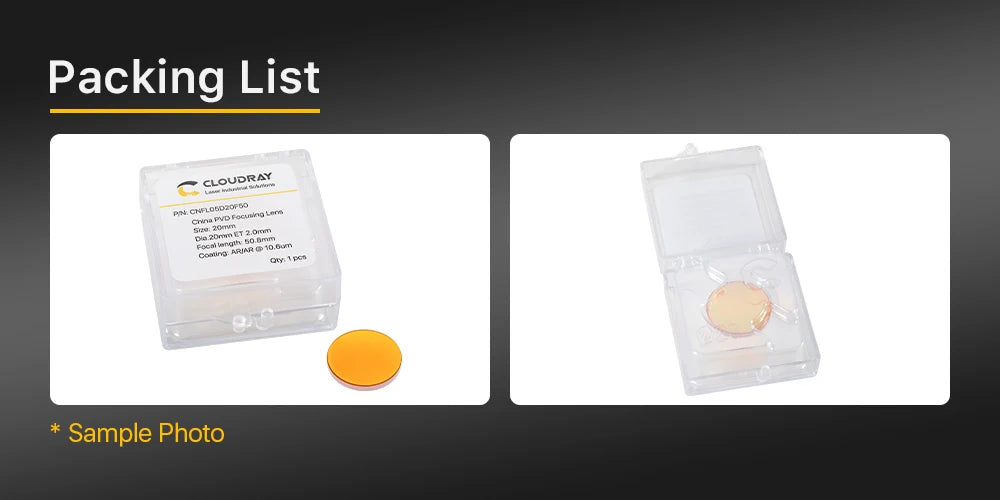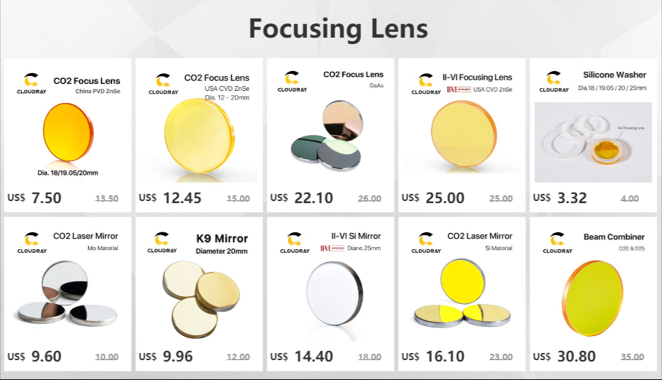 - 1 x Lentilă de focalizare Cloudray CO2 ZnSe (combinație selectată de diametru și distanță focală)