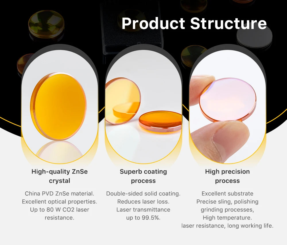 - Pierderi reduse de energie: Optica ZnSe cu transmisie ridicată minimizează pierderile de putere, permițând ca mai multă energie laser să ajungă la piesa de prelucrat.