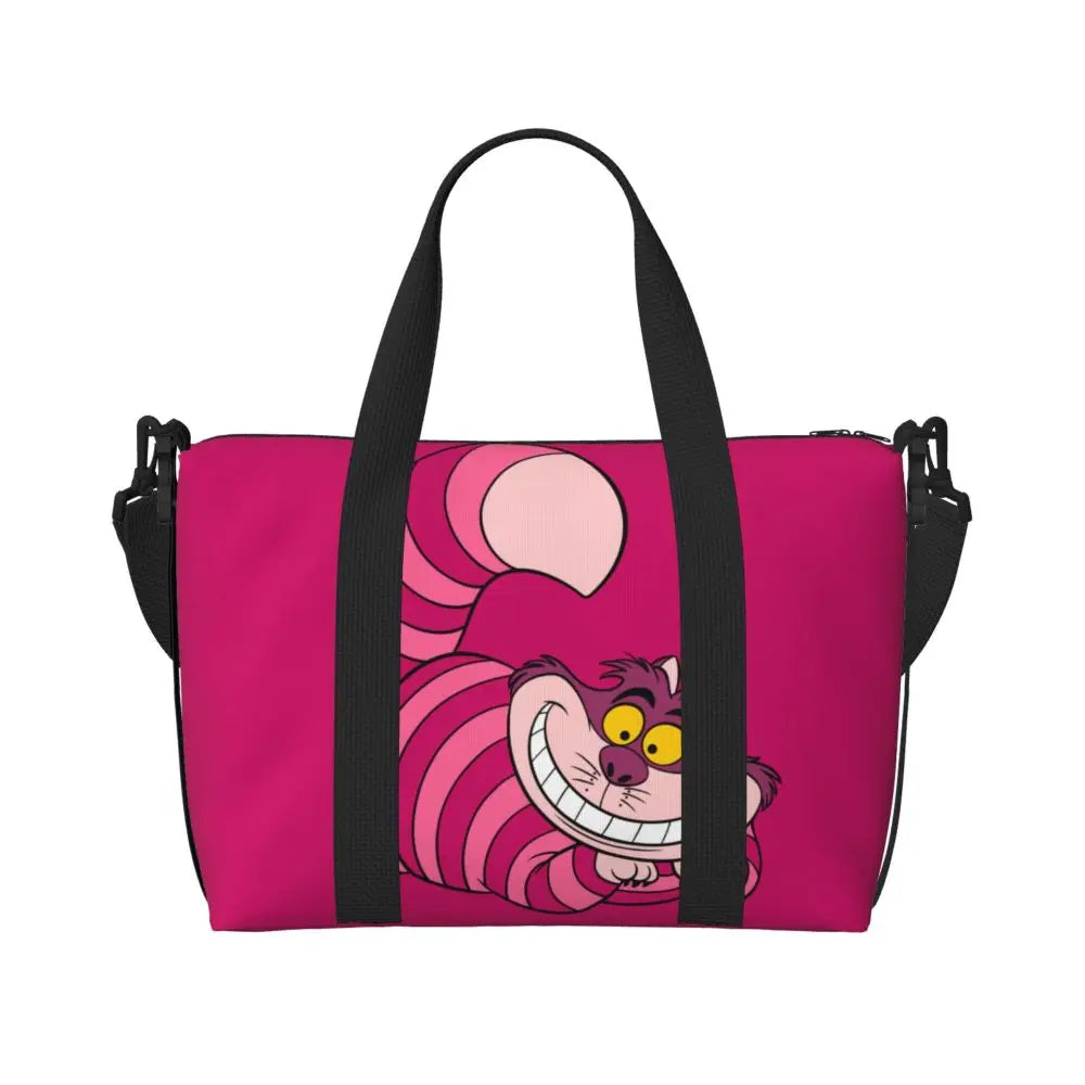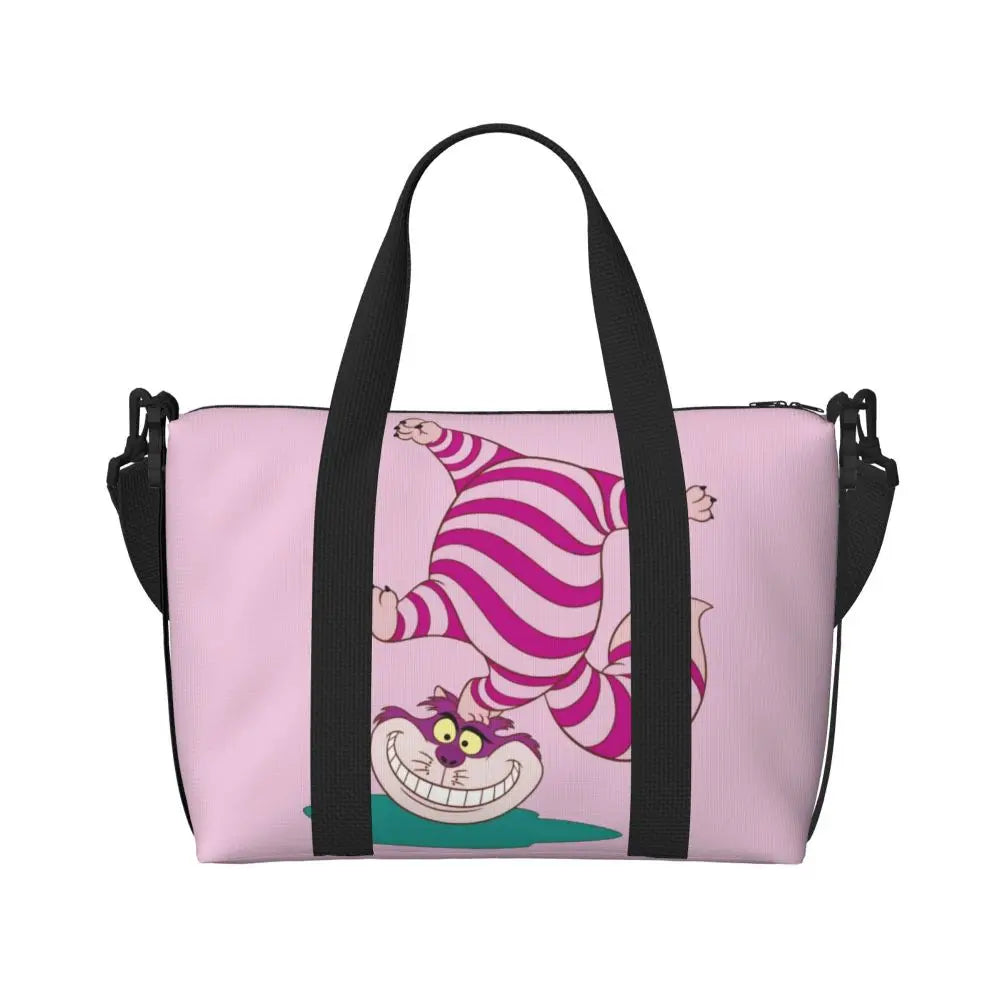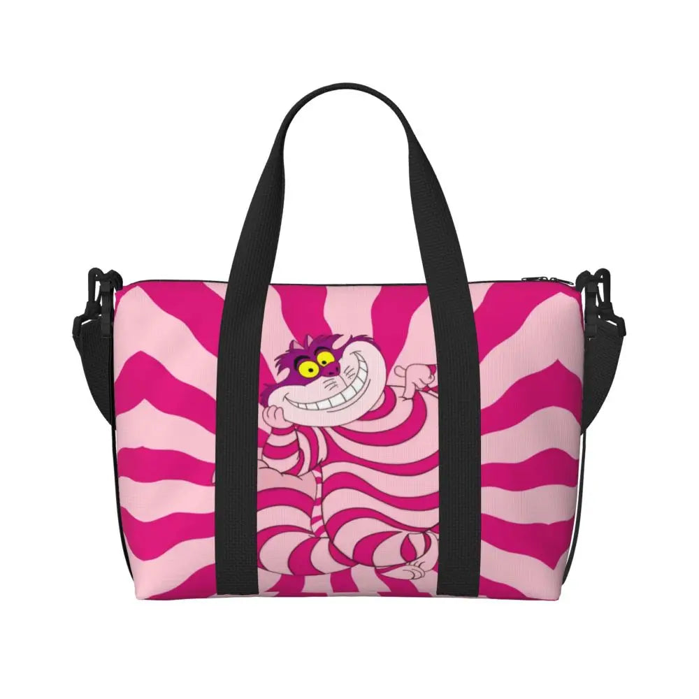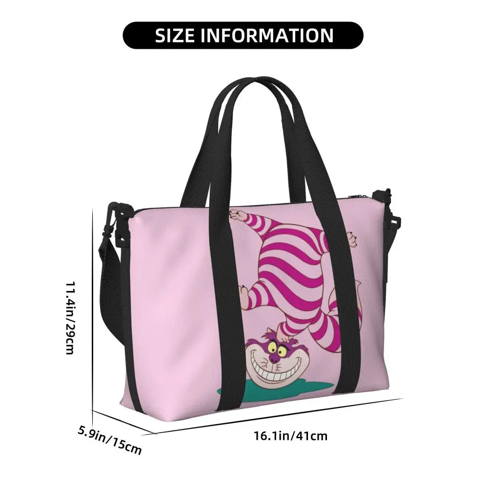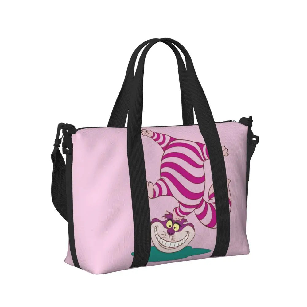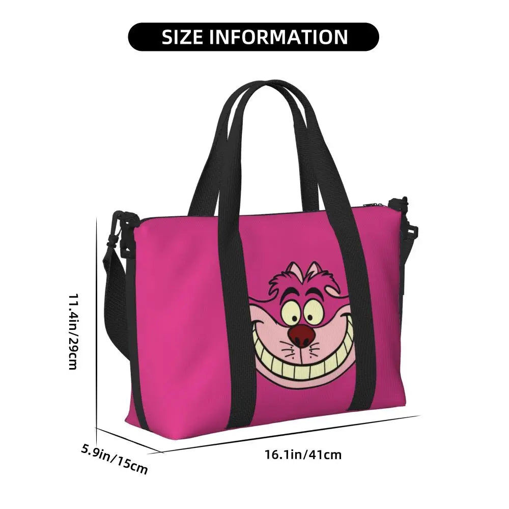Geantă de plajă personalizată cu pisica Cheshire pentru femei – spațioasă, ușoară și elegantă pentru plajă, sală și călătorii