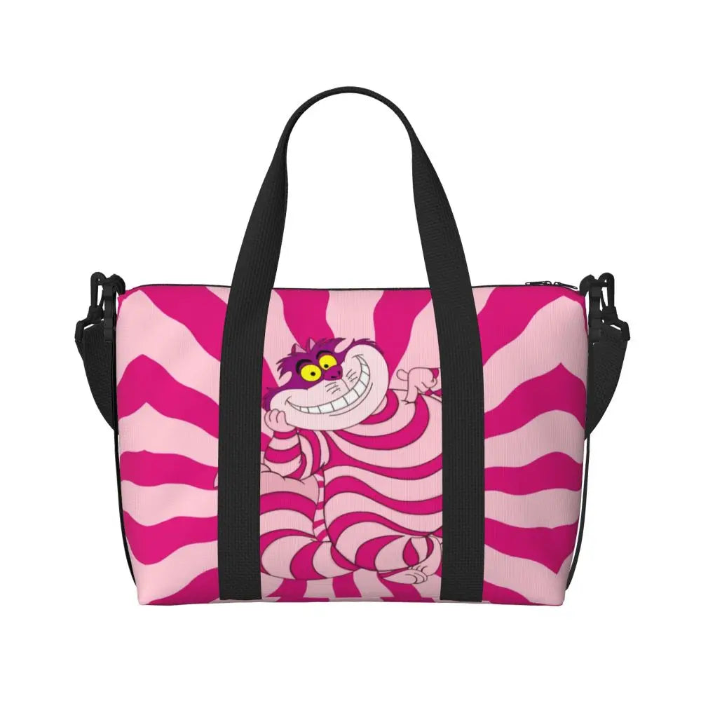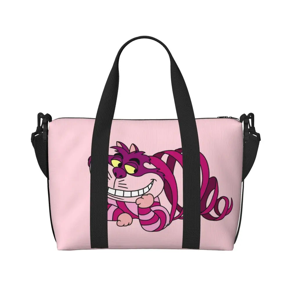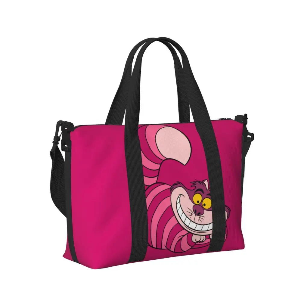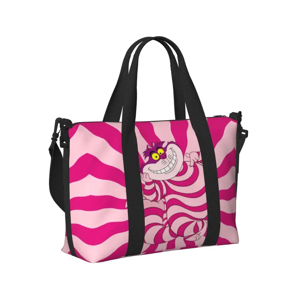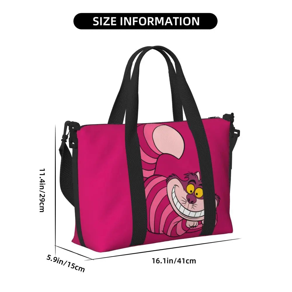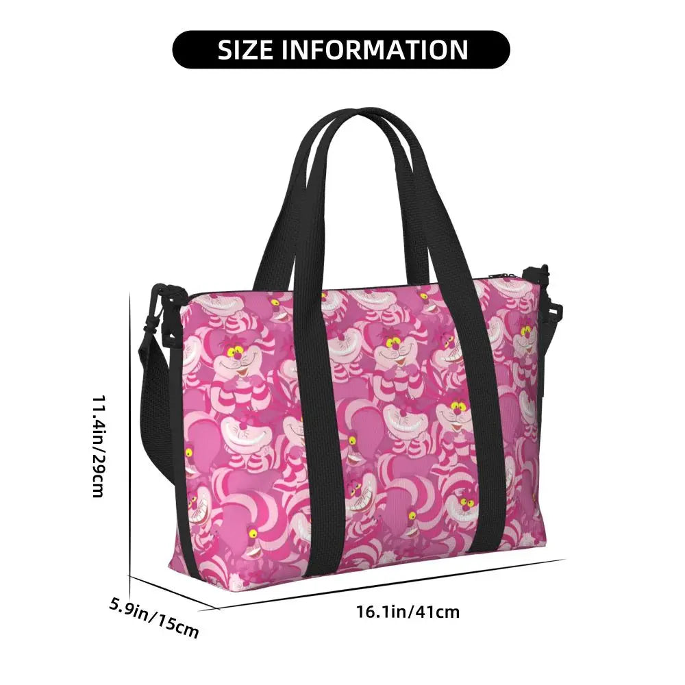 Geantă de plajă personalizată cu pisica Cheshire pentru femei – spațioasă, ușoară și elegantă pentru plajă, sală și călătorii