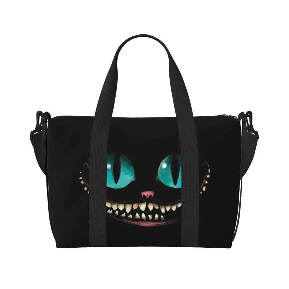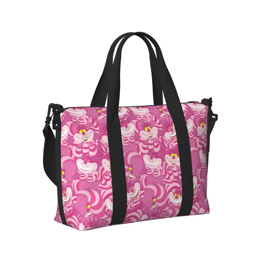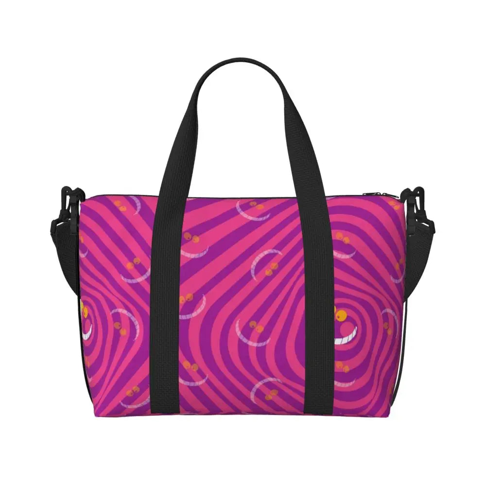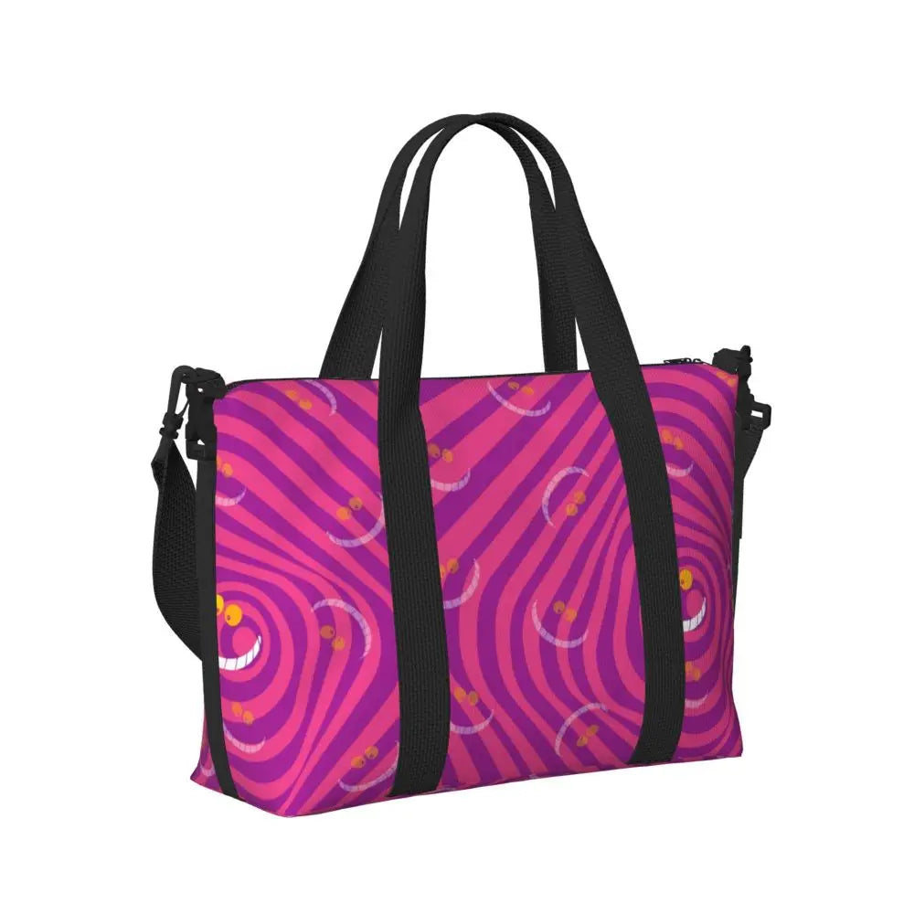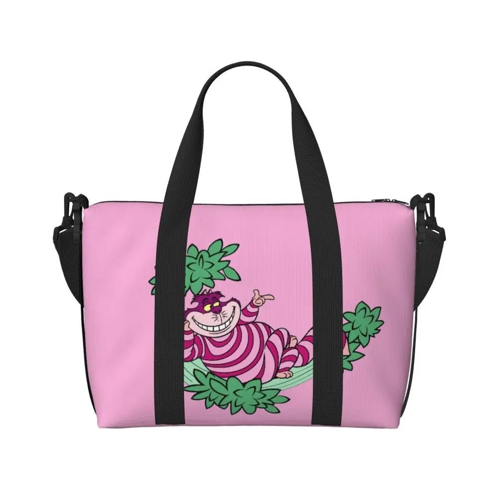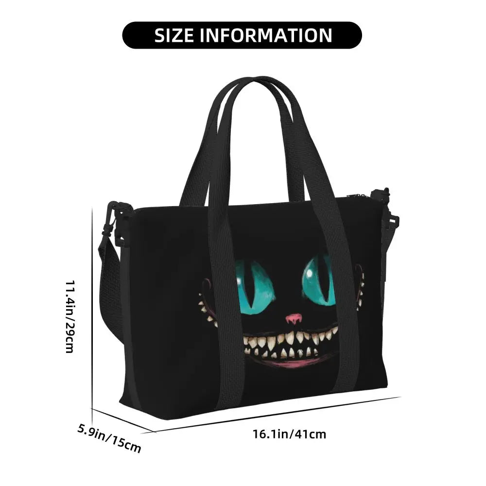 Geantă de plajă personalizată cu pisica Cheshire pentru femei – spațioasă, ușoară și elegantă pentru plajă, sală și călătorii