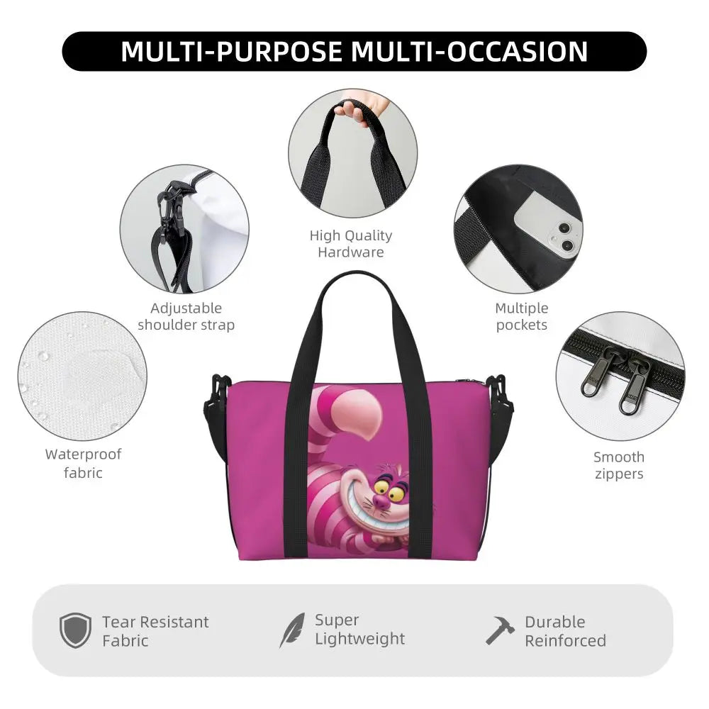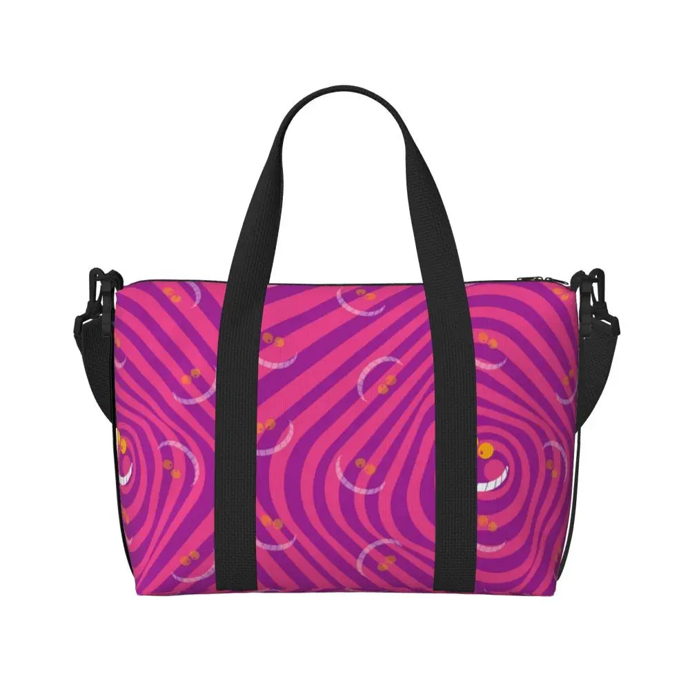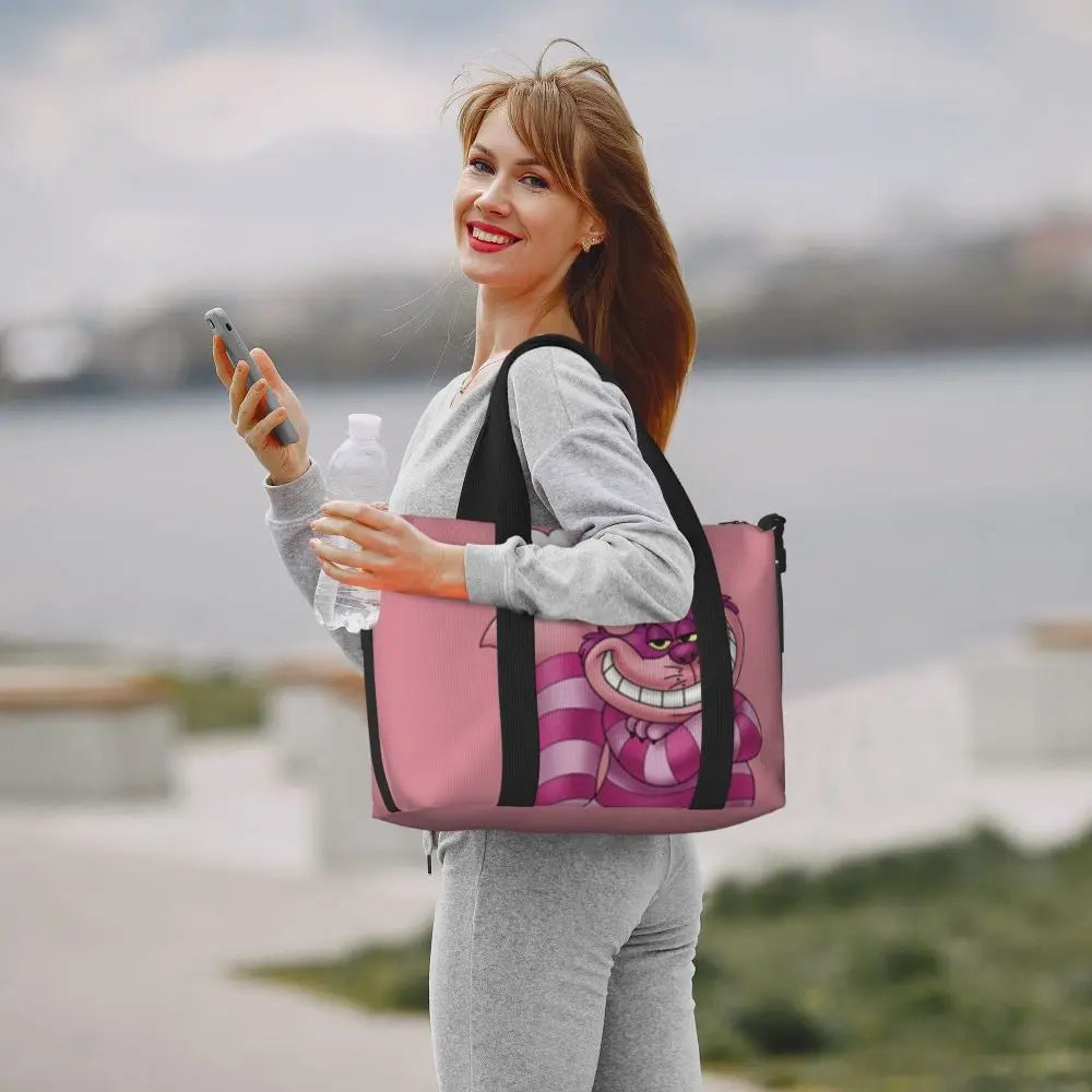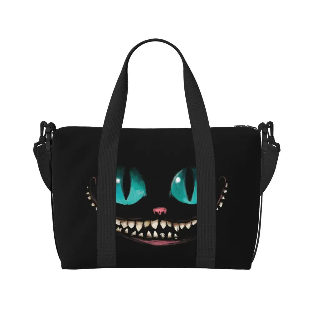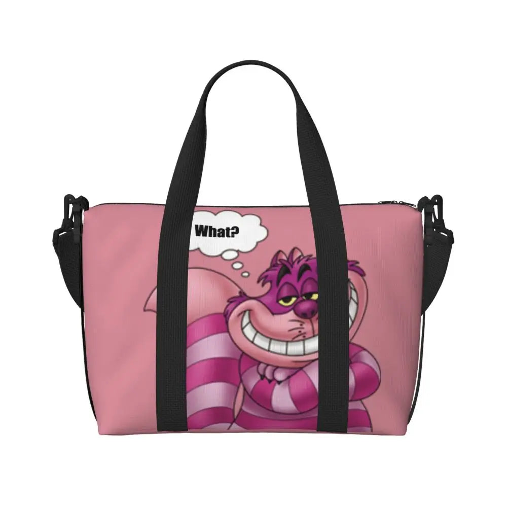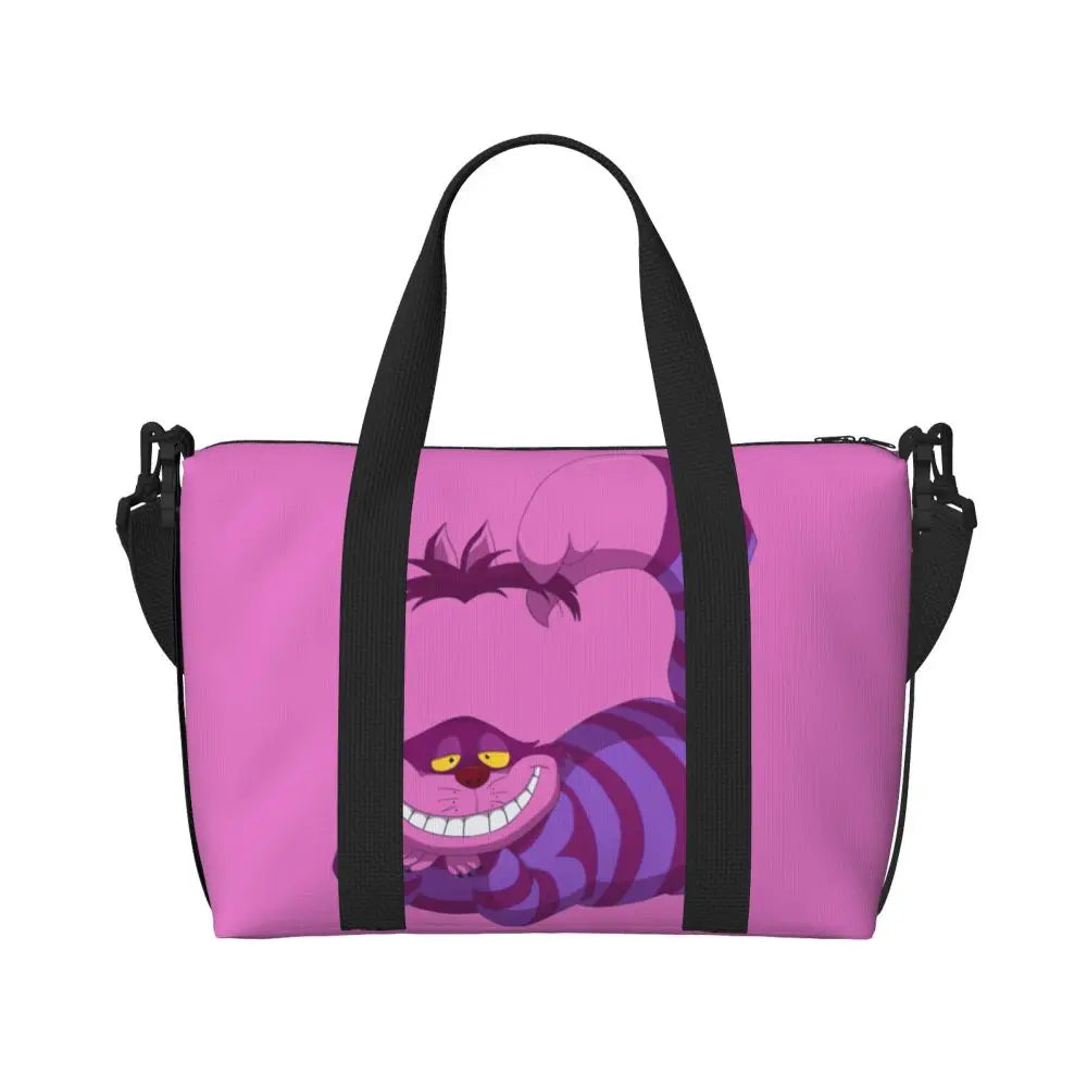 Geantă de plajă personalizată cu pisica Cheshire pentru femei – spațioasă, ușoară și elegantă pentru plajă, sală și călătorii
