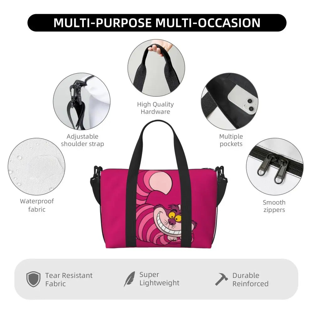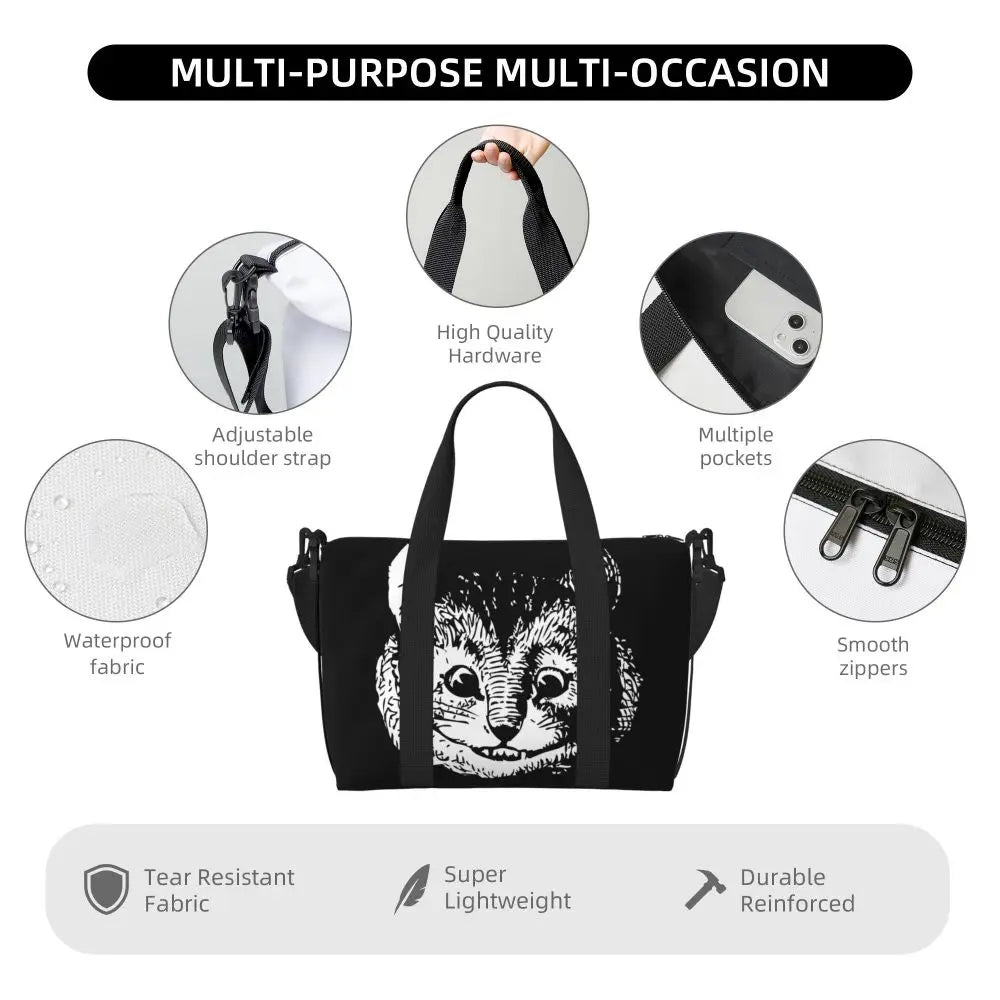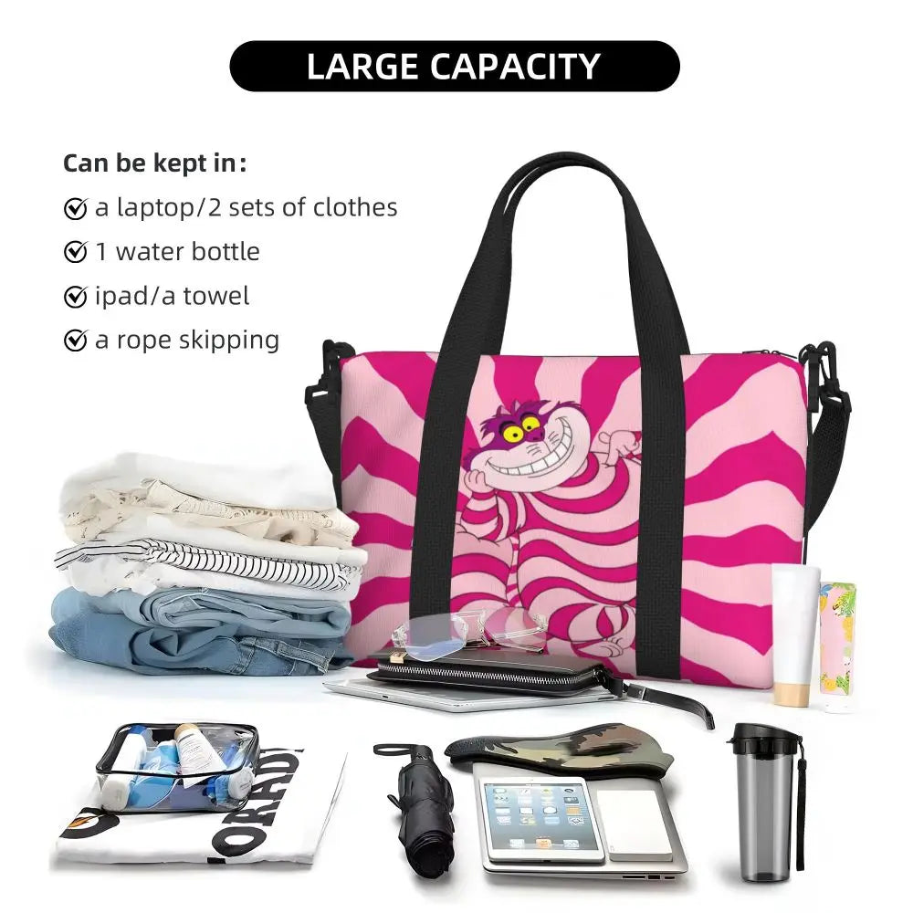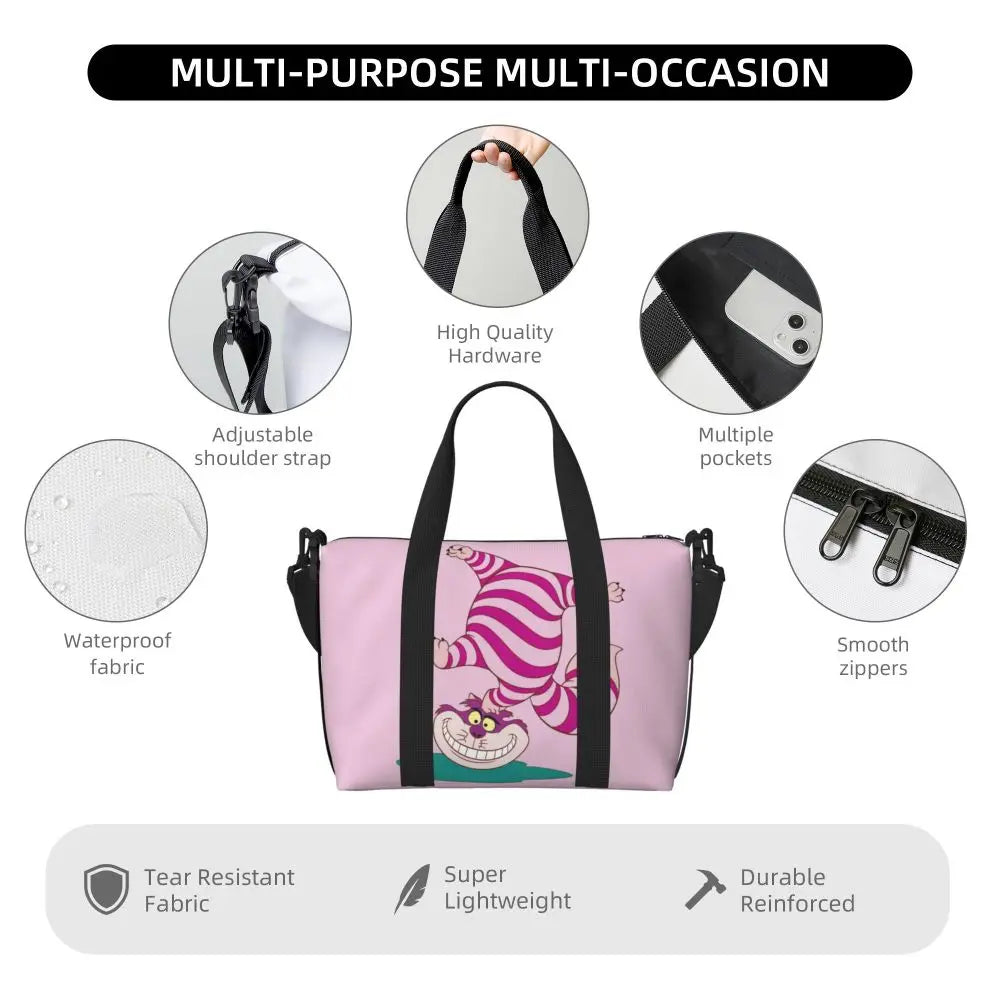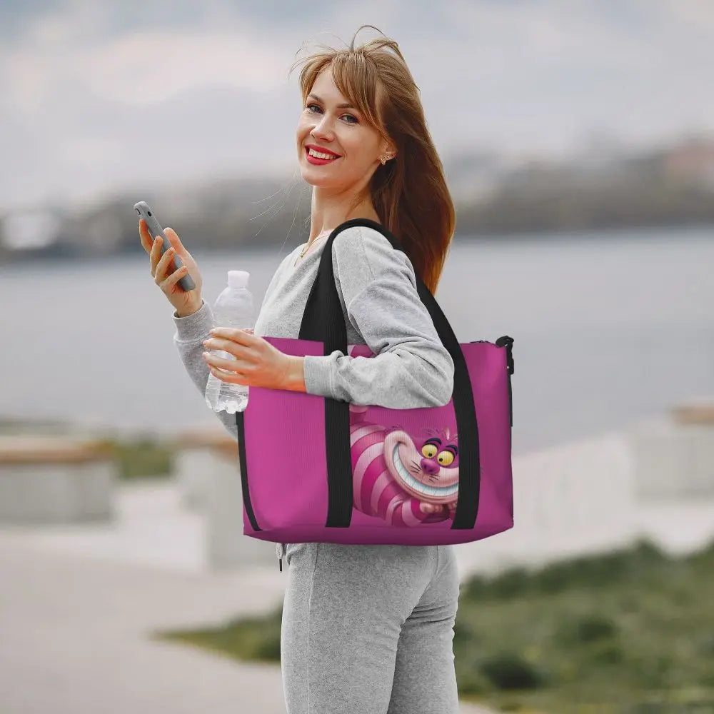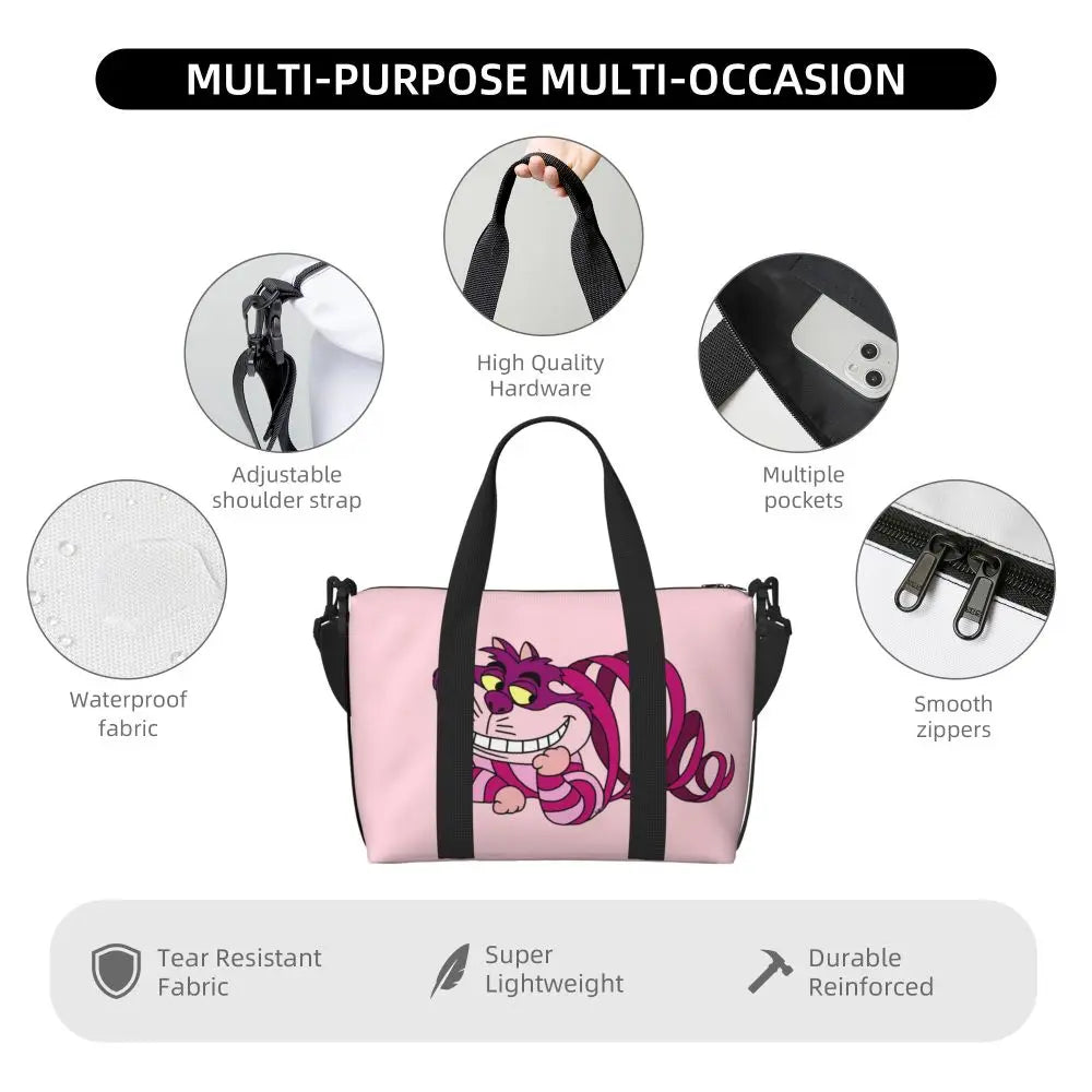 Geantă de plajă personalizată cu pisica Cheshire pentru femei – spațioasă, ușoară și elegantă pentru plajă, sală și călătorii