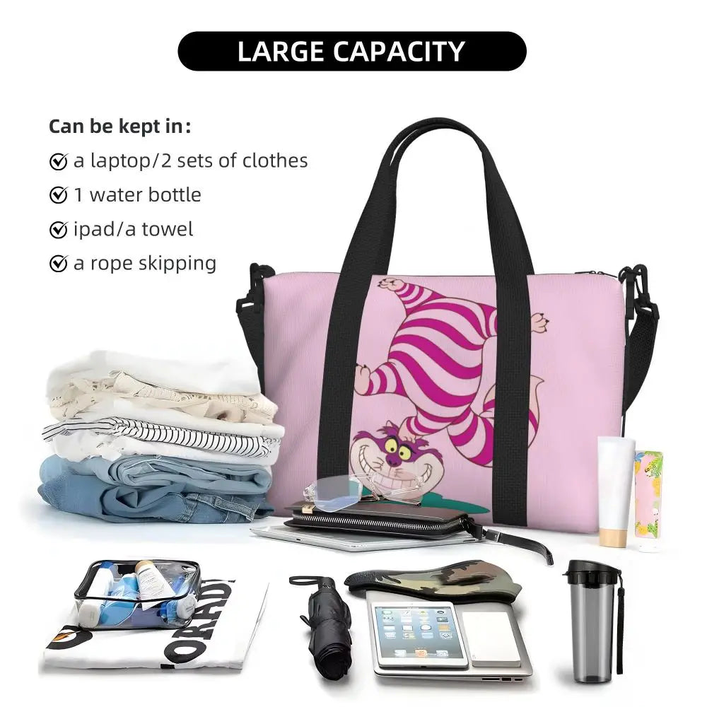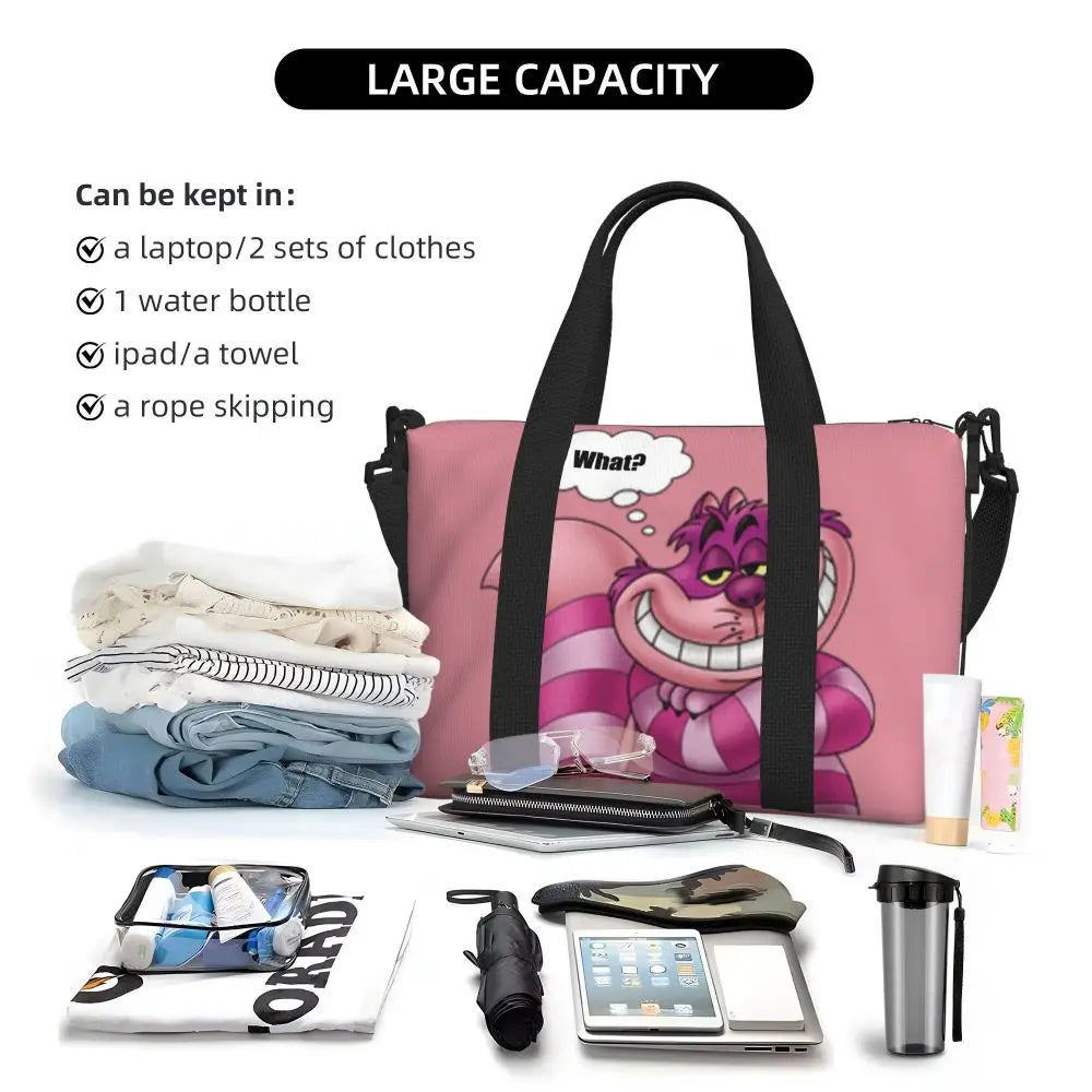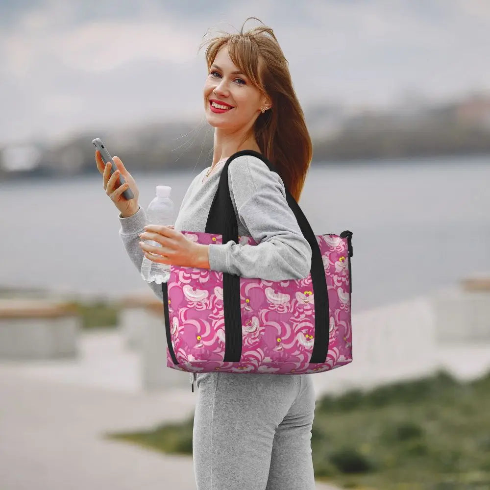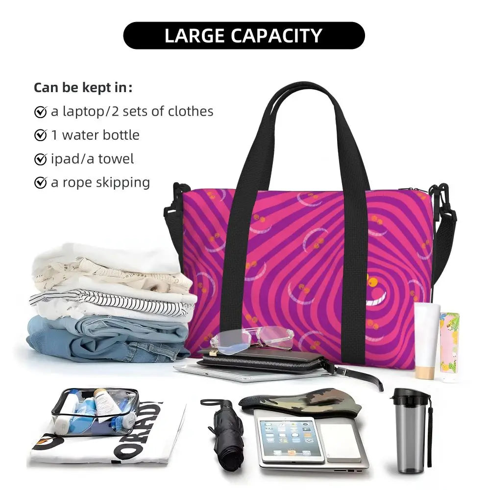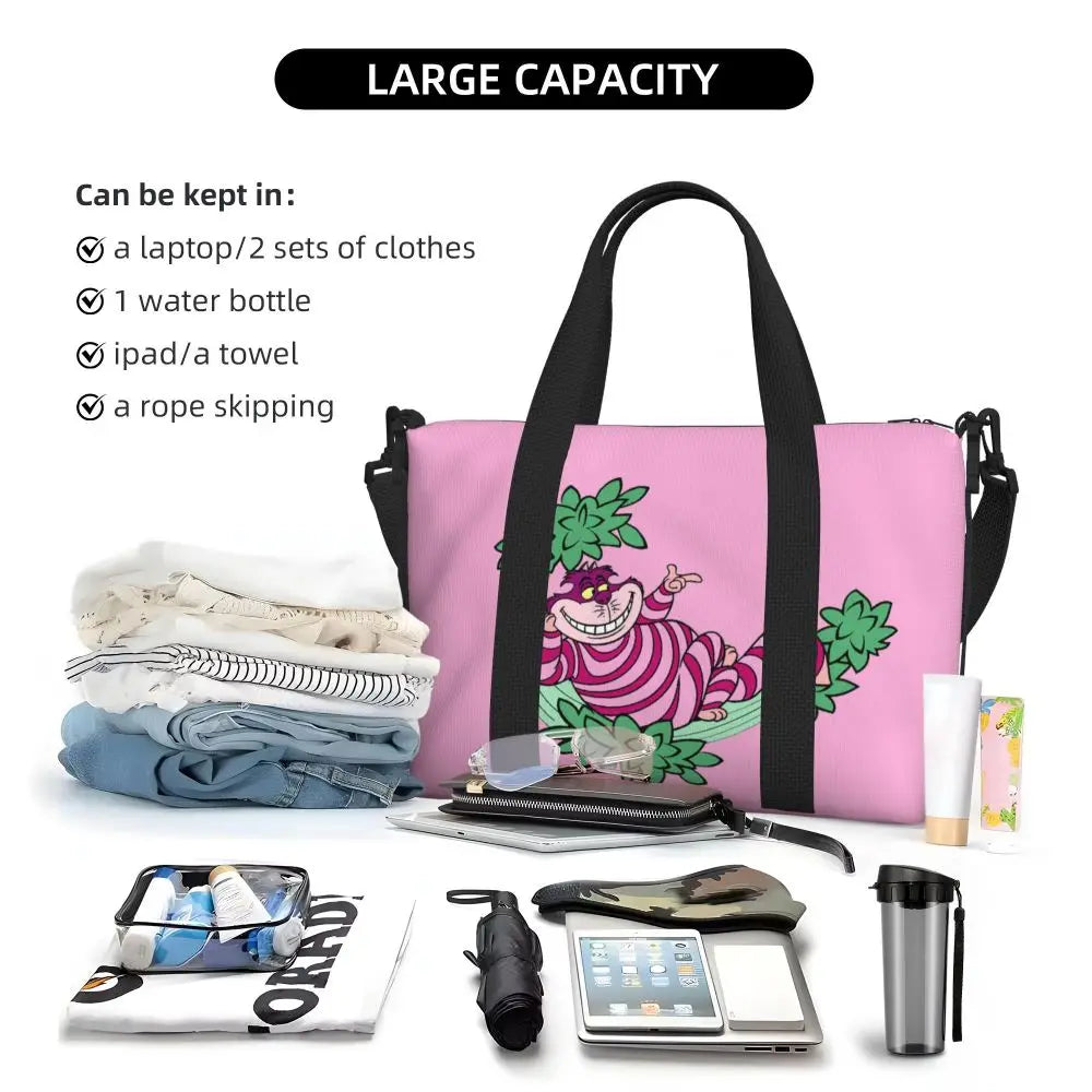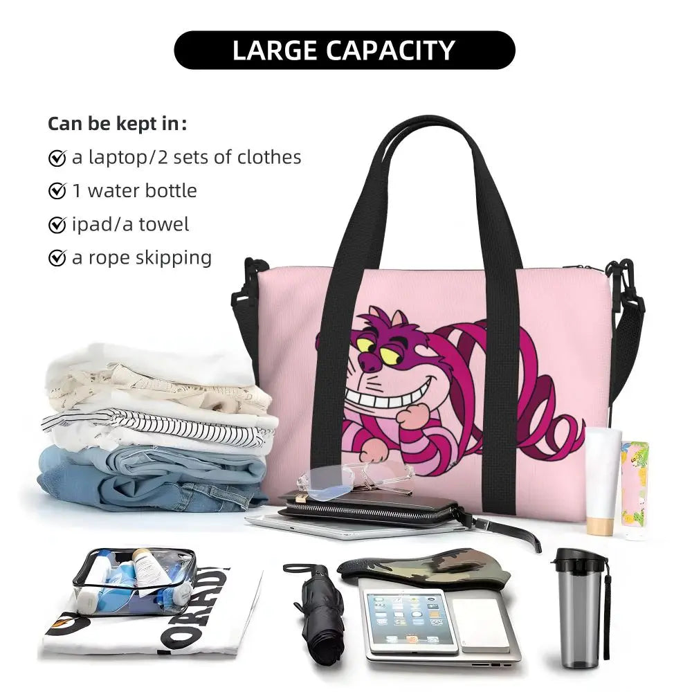 Geantă de plajă personalizată cu pisica Cheshire pentru femei – spațioasă, ușoară și elegantă pentru plajă, sală și călătorii