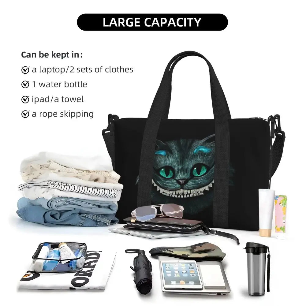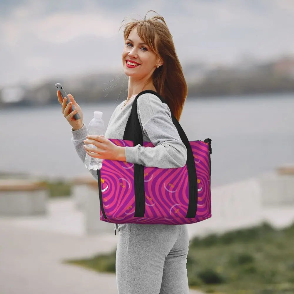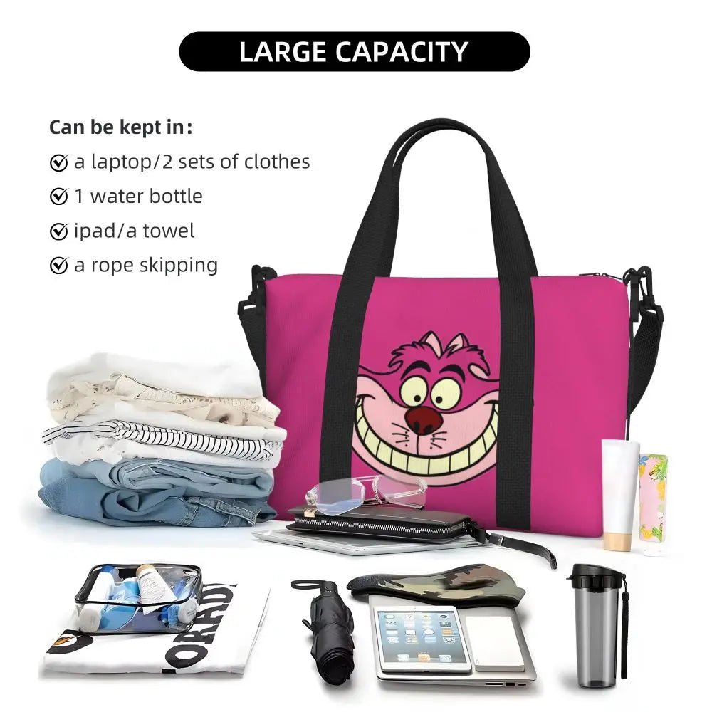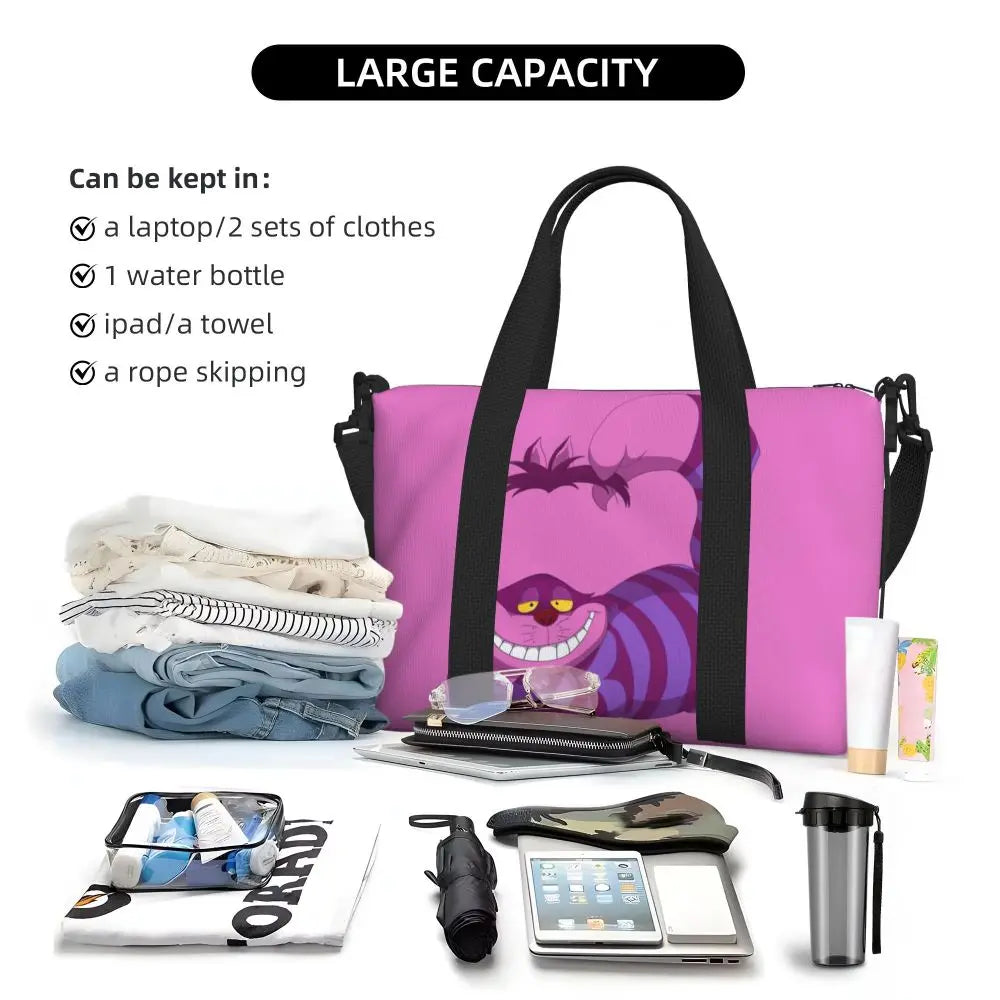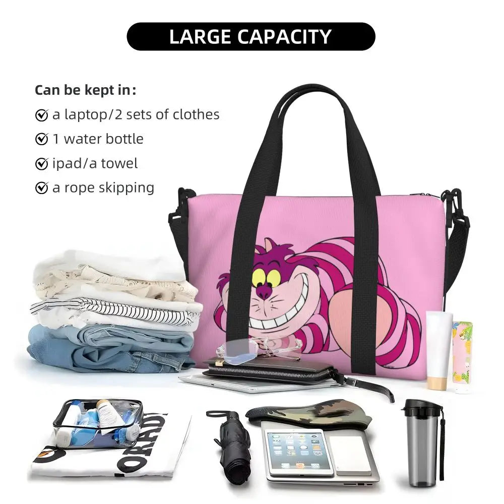 Geantă de plajă personalizată cu pisica Cheshire pentru femei – spațioasă, ușoară și elegantă pentru plajă, sală și călătorii