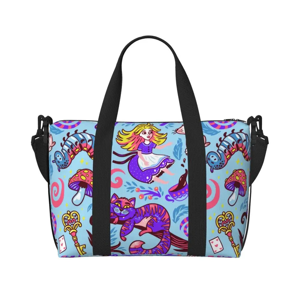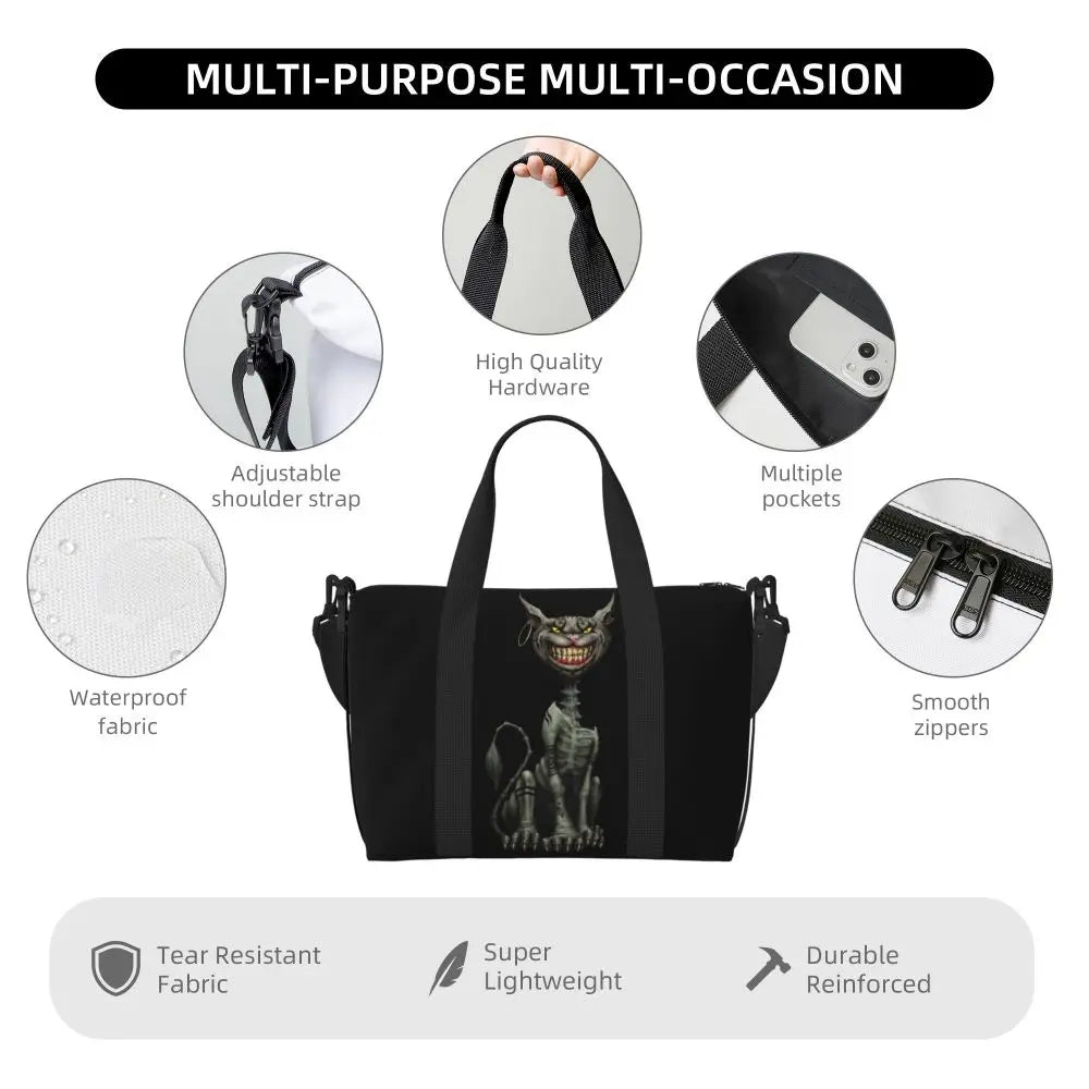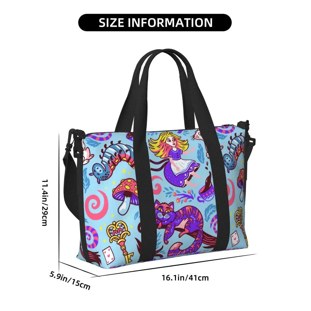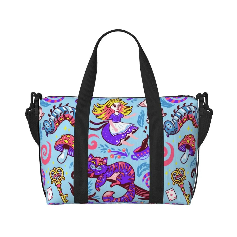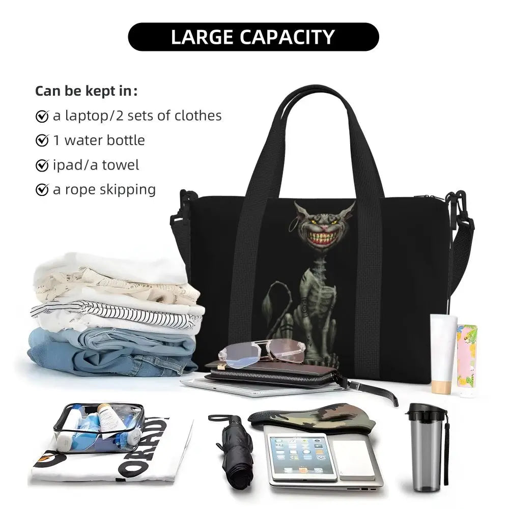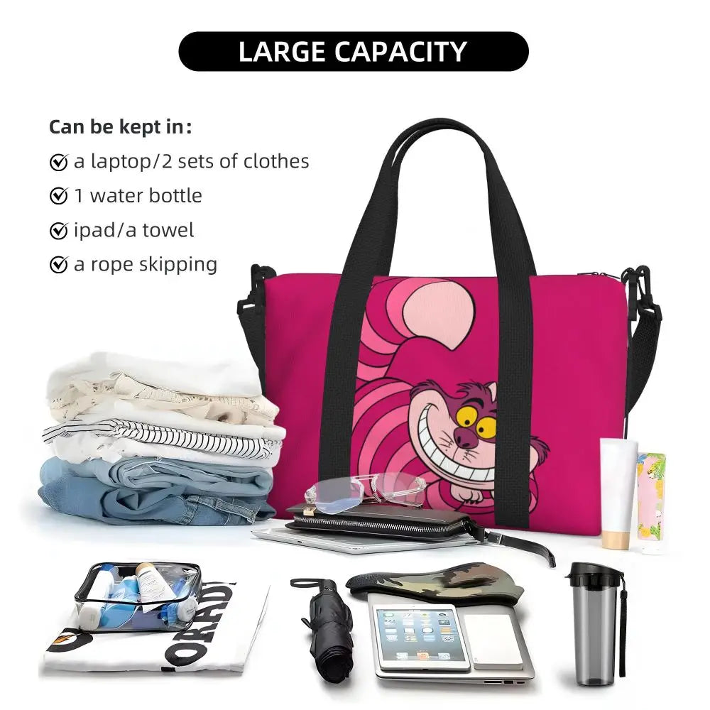 Geantă de plajă personalizată cu pisica Cheshire pentru femei – spațioasă, ușoară și elegantă pentru plajă, sală și călătorii