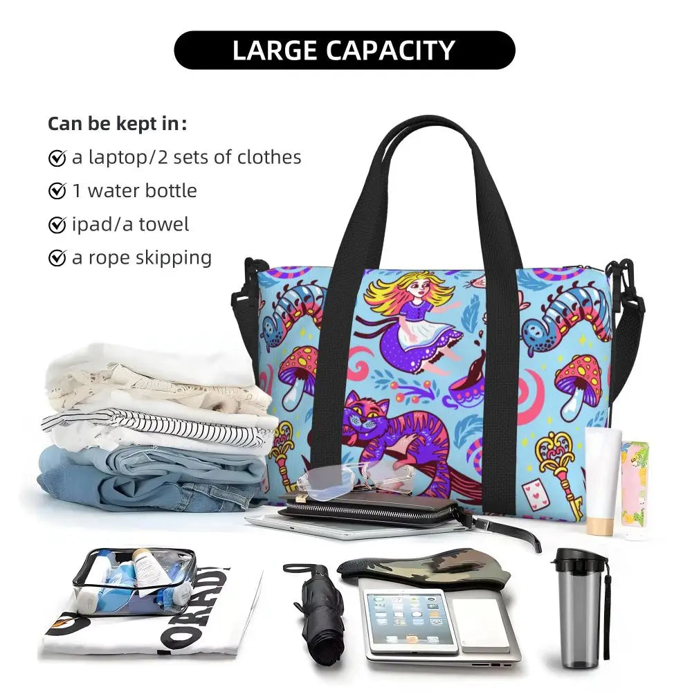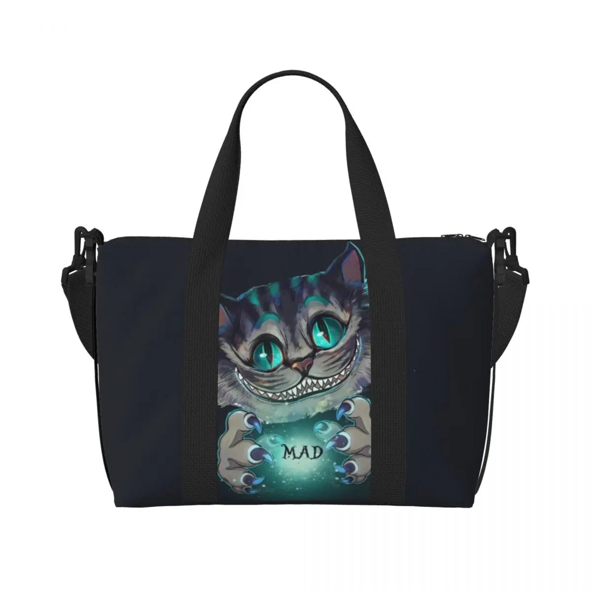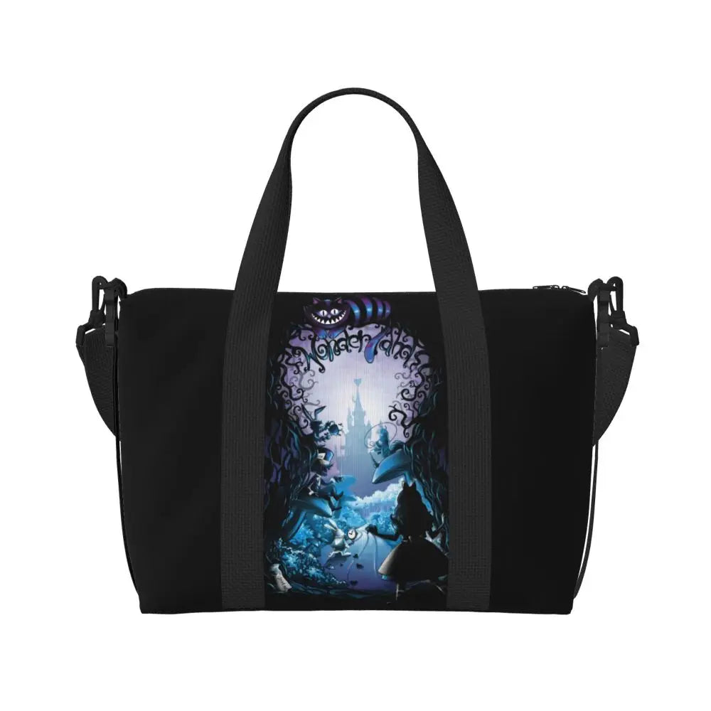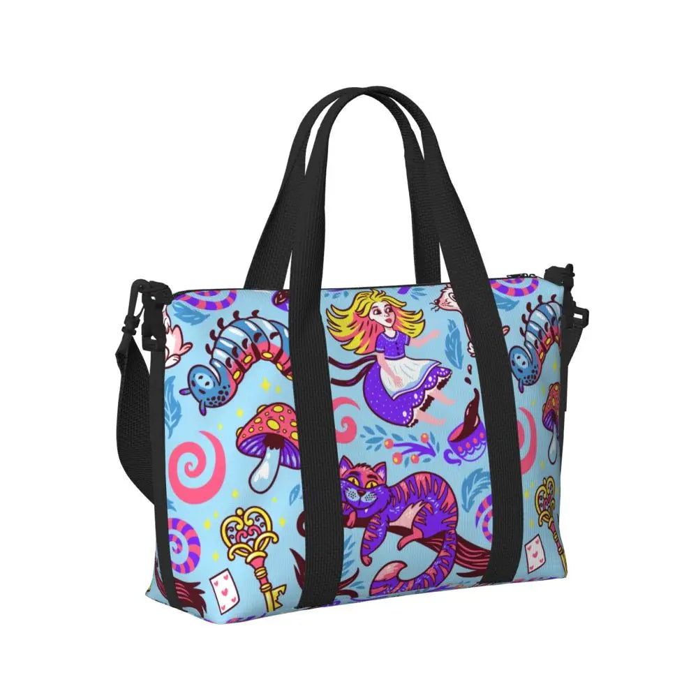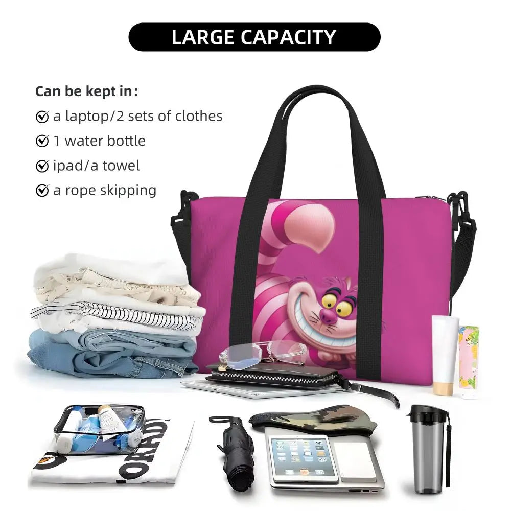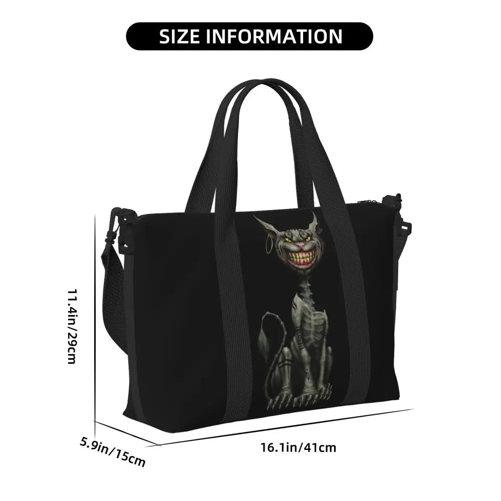 Geantă de plajă personalizată cu pisica Cheshire pentru femei – spațioasă, ușoară și elegantă pentru plajă, sală și călătorii