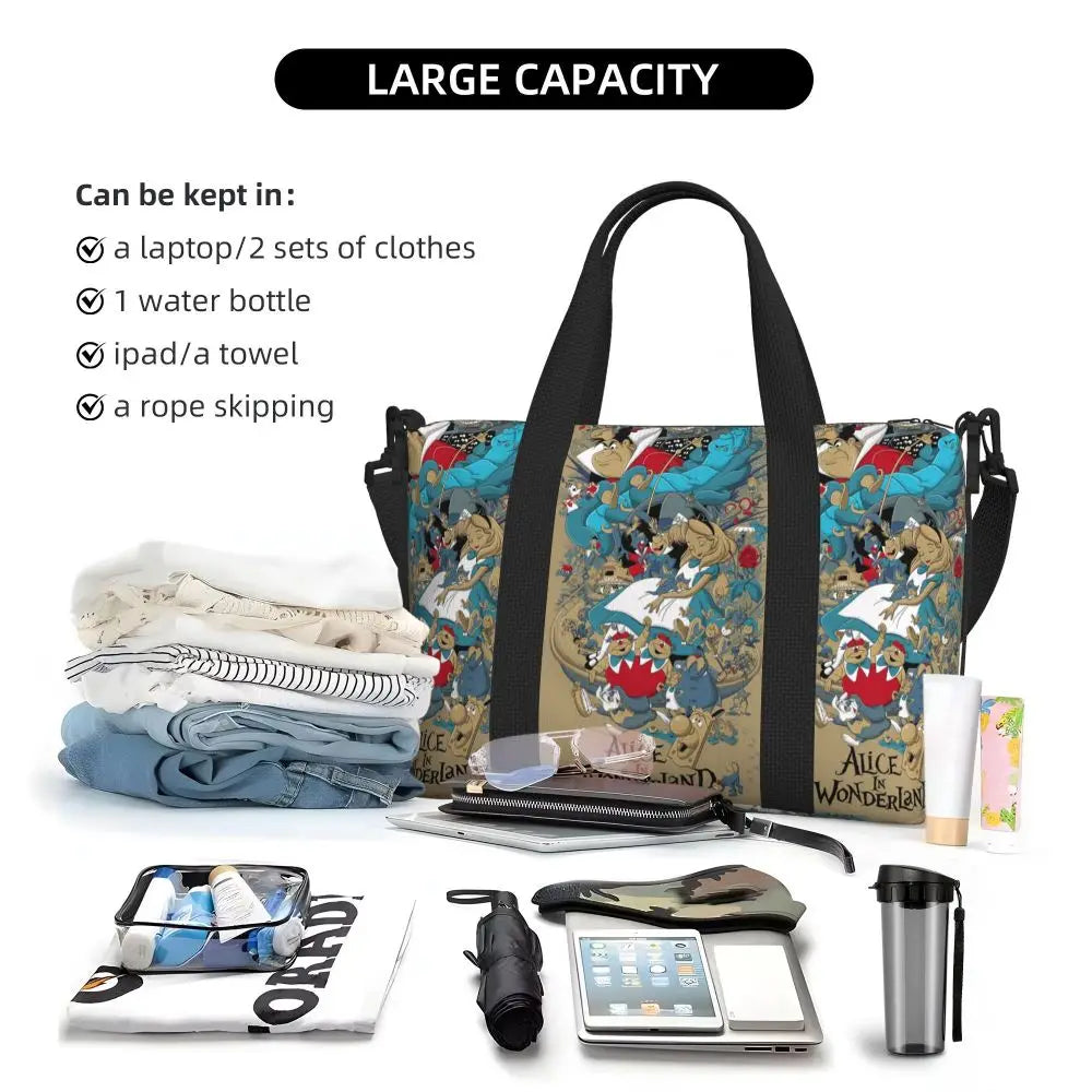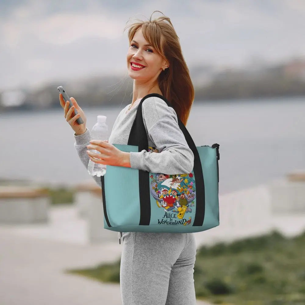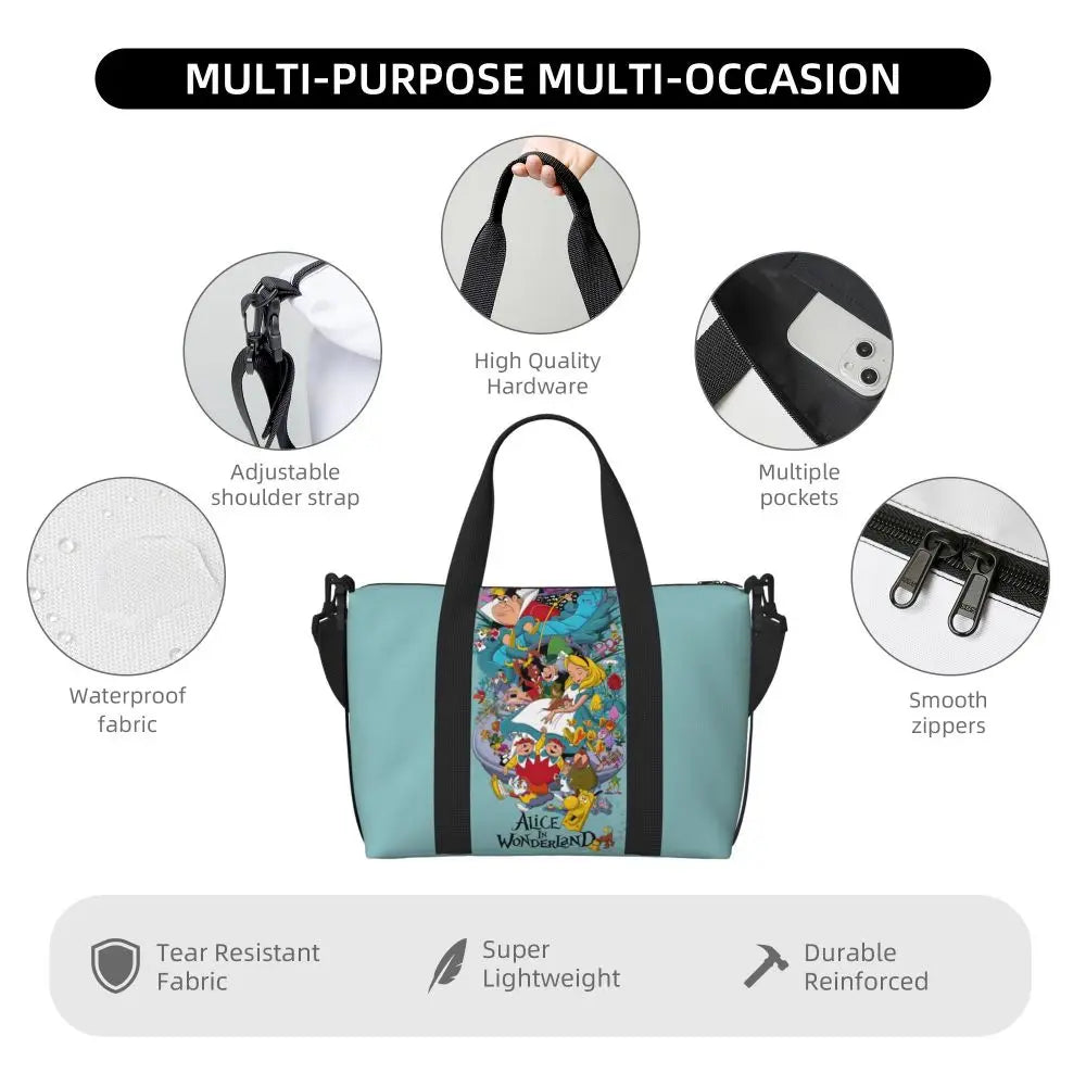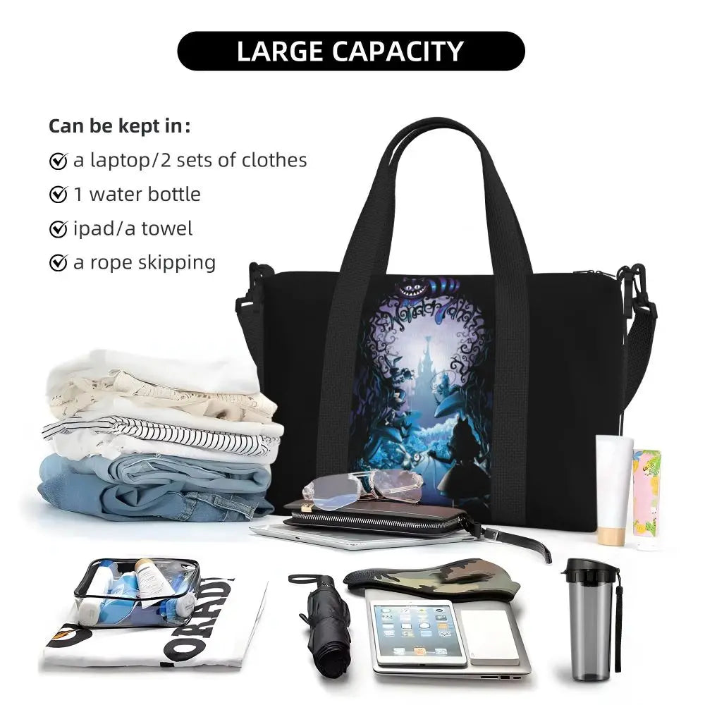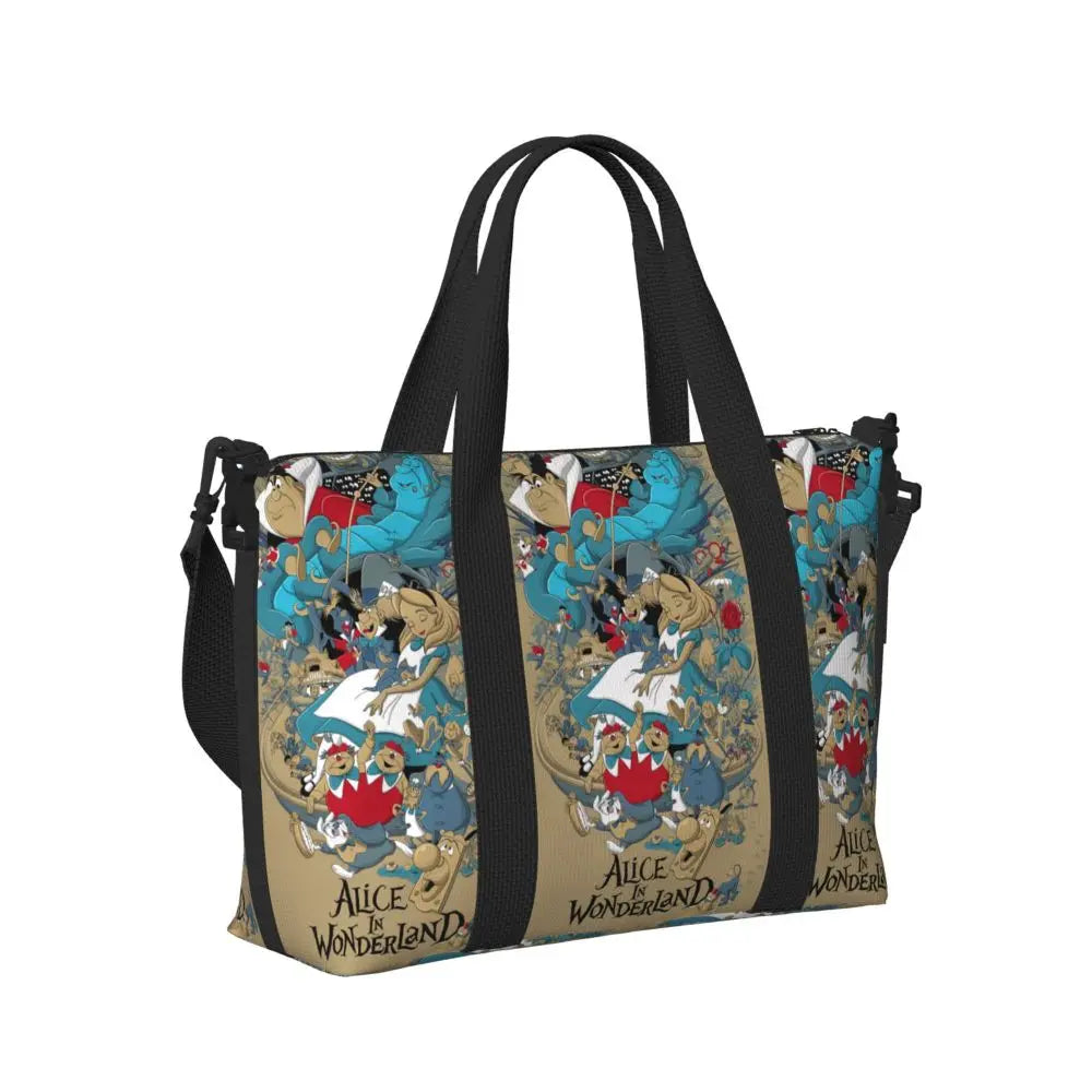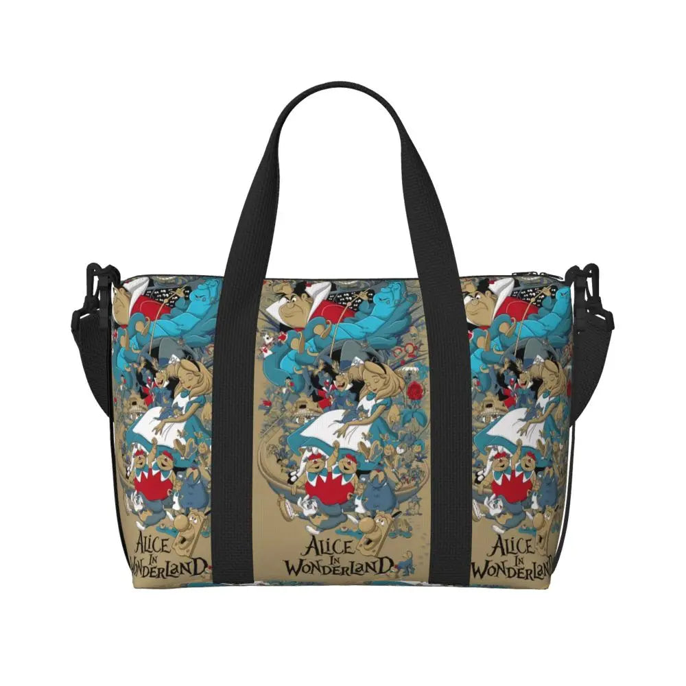 Geantă de plajă personalizată cu pisica Cheshire pentru femei – spațioasă, ușoară și elegantă pentru plajă, sală și călătorii