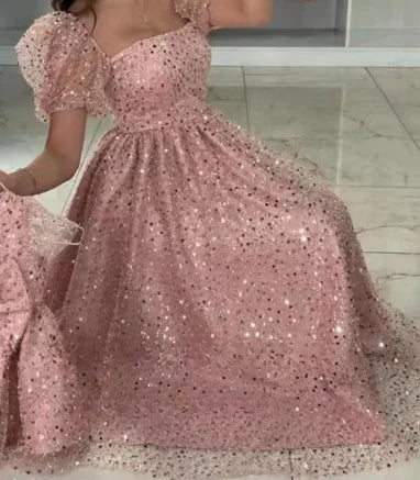 Rochii personalizate pentru mamă și fiică, elegante, strălucitoare, din dantelă, cu aplicații, pentru petrecere, linie A, rochie de fetiță cu flori, prințesă, copii