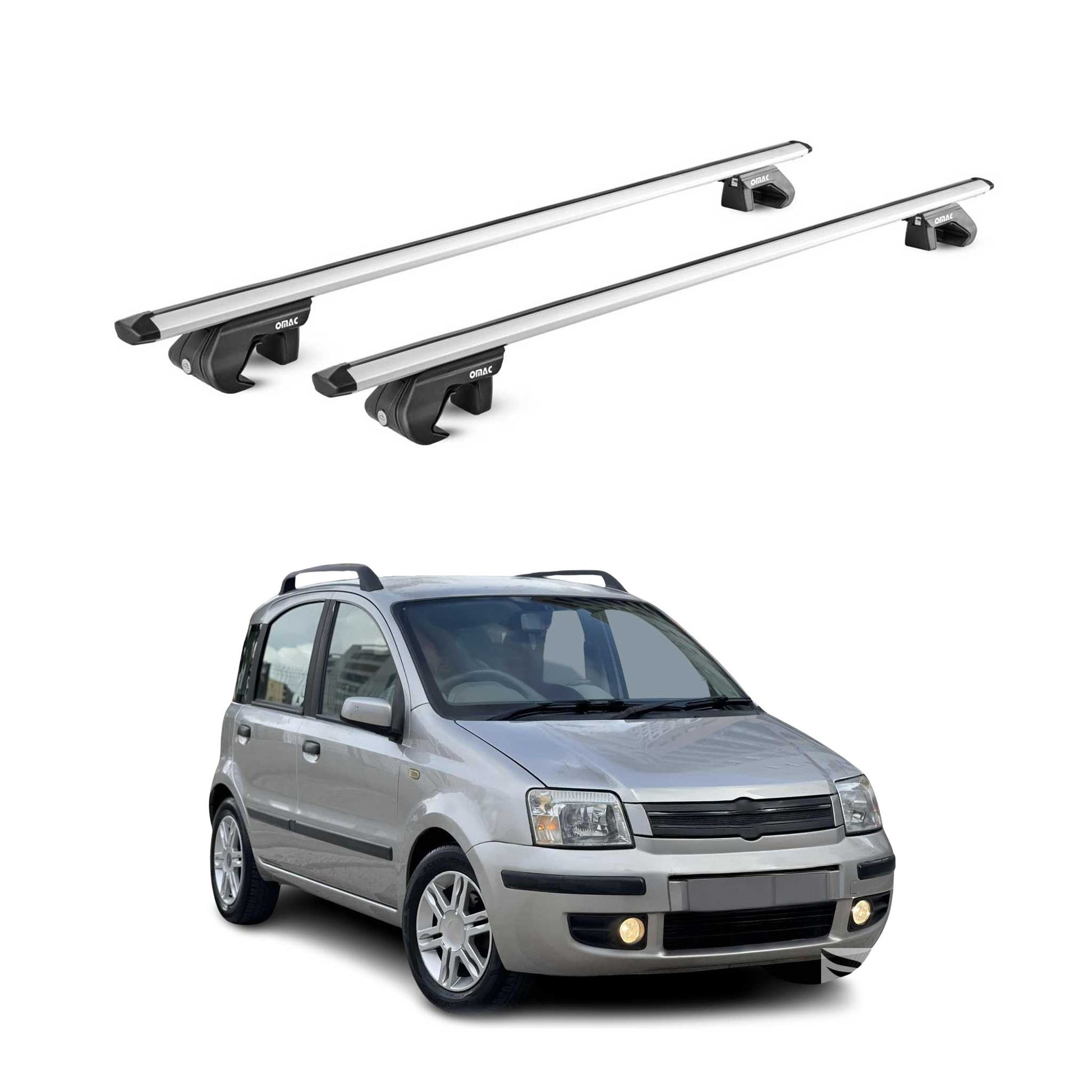 Portbagaj de plafon pentru Fiat Panda II 2003-2012 5 uși 90 kg aluminiu argintiu 2x ABE