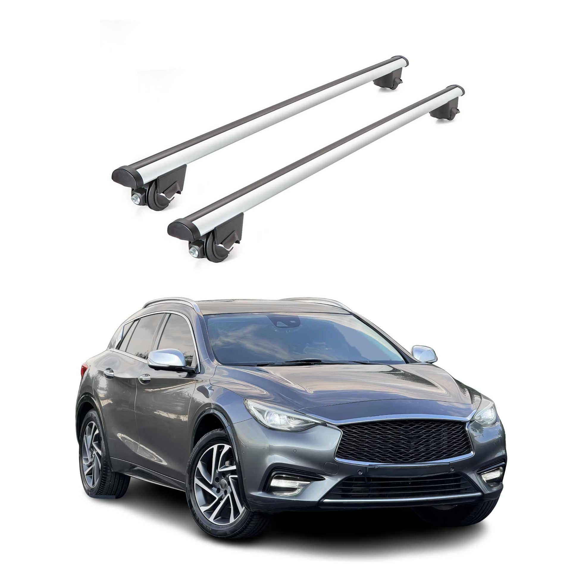 Portbagaj de plafon pentru Infiniti Q30 2015-2025 100kg aluminiu argintiu 2 piese ABE
