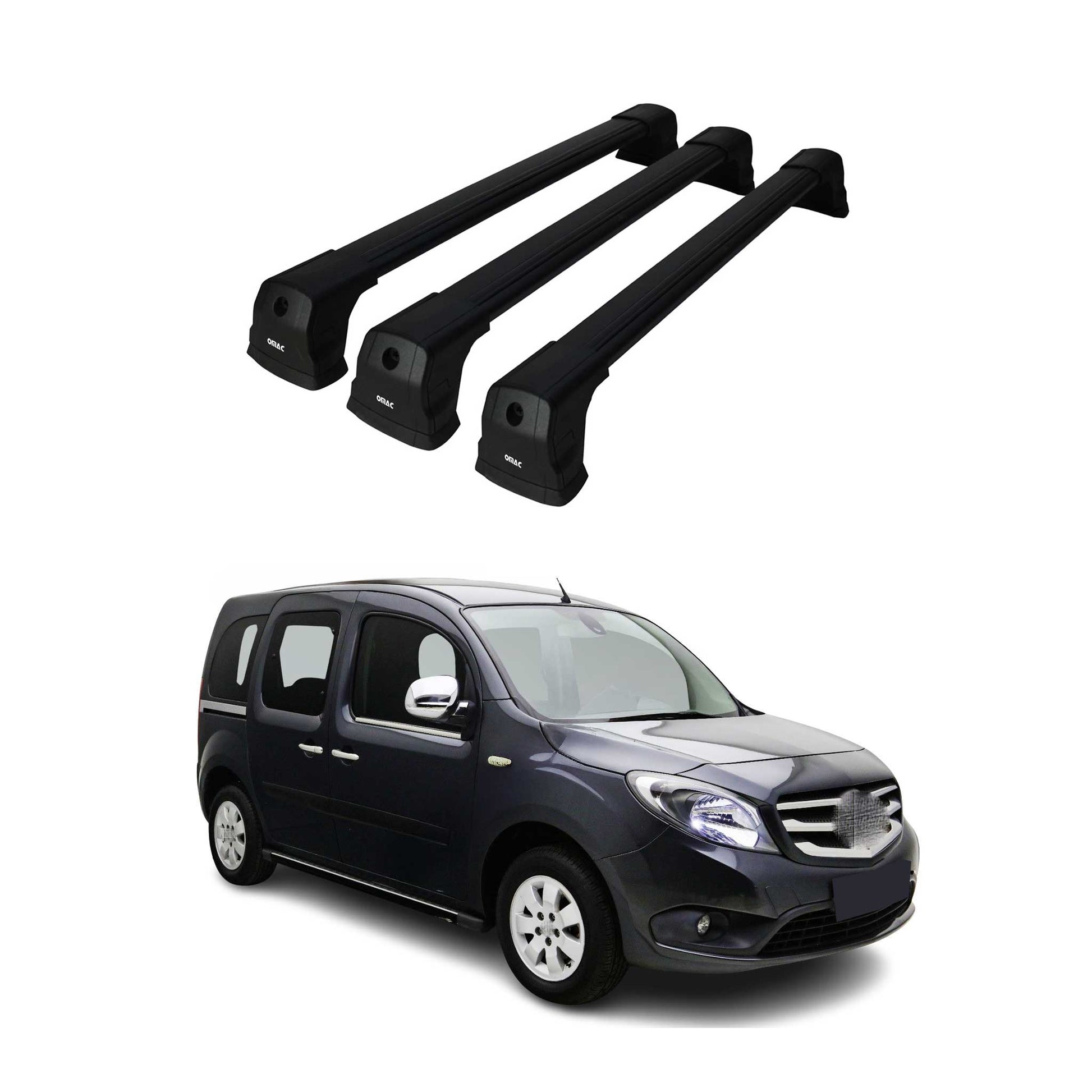 Portbagaj de plafon pentru Mercedes Citan W415 2012-2021 75kg aluminiu negru set 3 piese