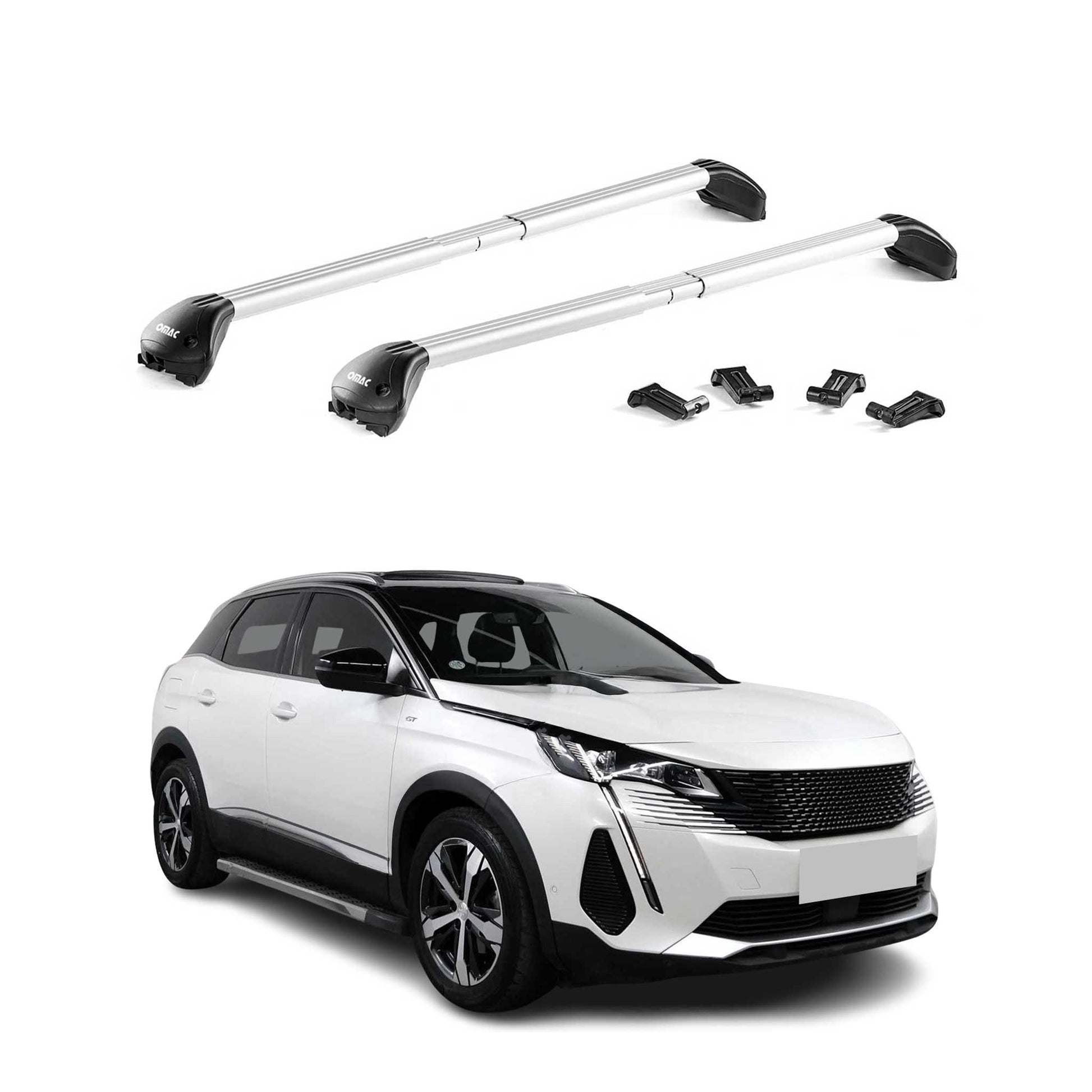 Portbagaj de plafon pentru Peugeot 3008 2016-2023 100kg aluminiu argintiu 2 piese ABE
