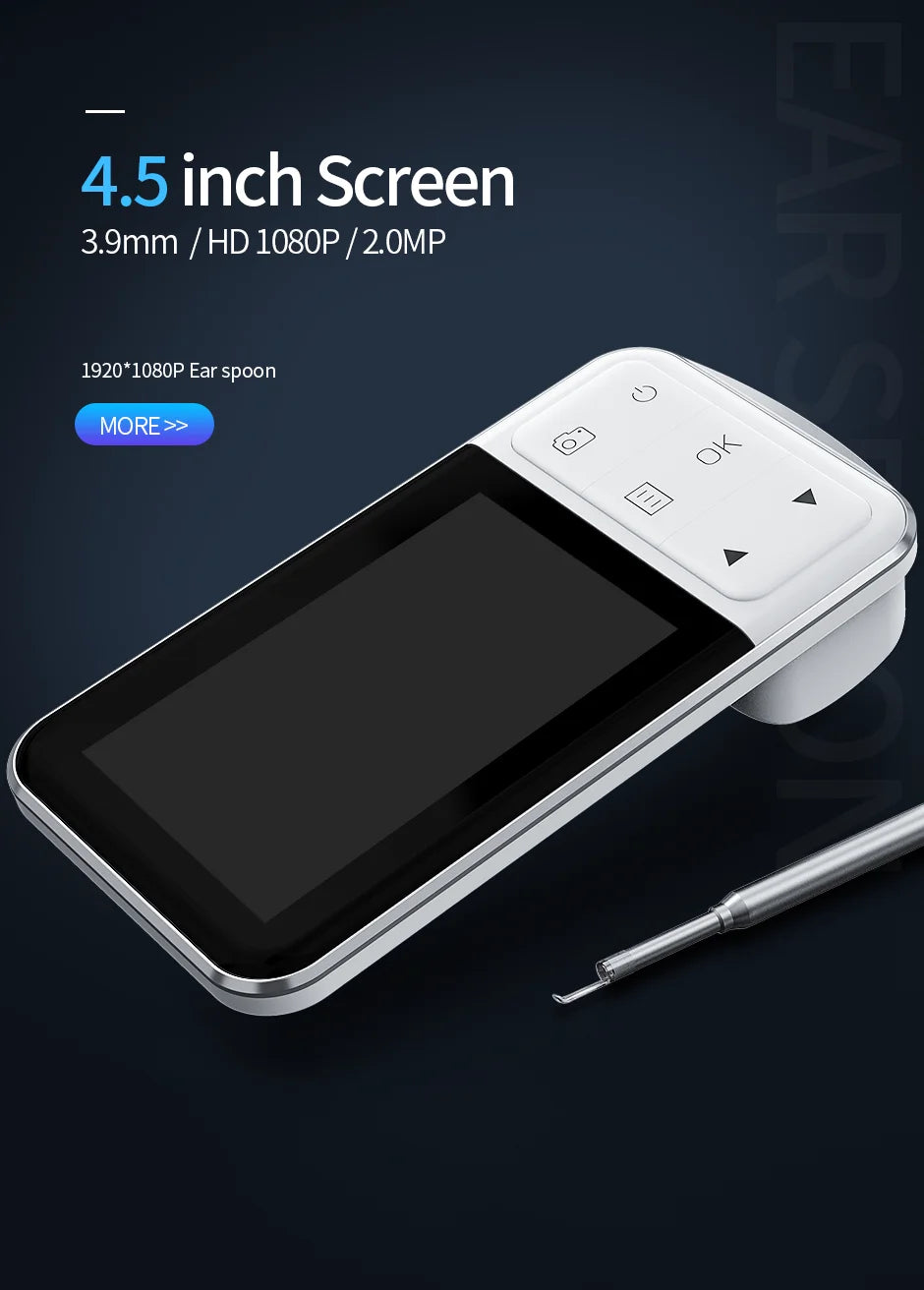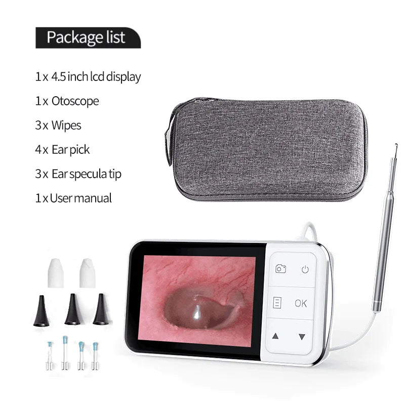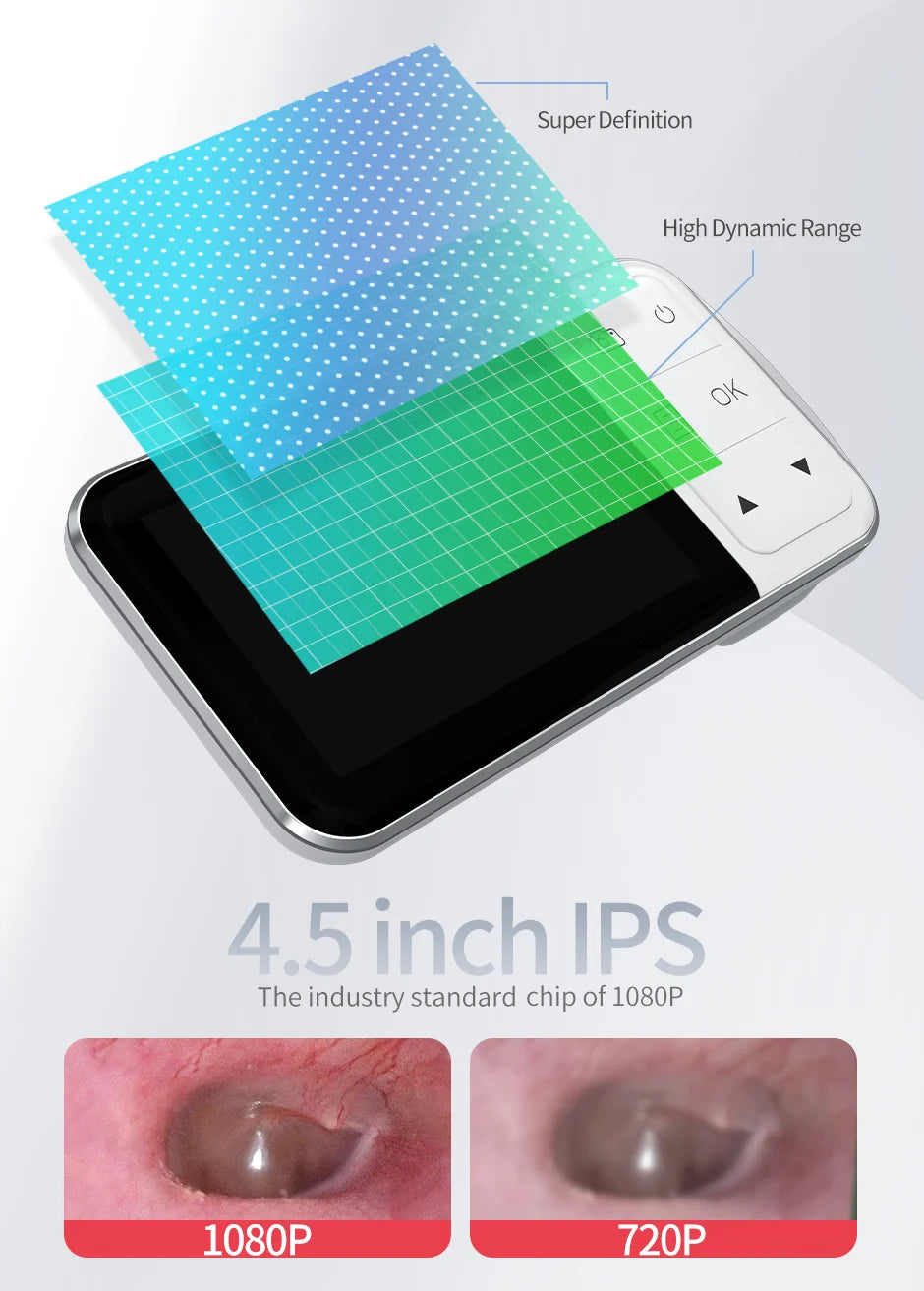 Otoscop digital cu giroscop 3,9 mm și IPS de 4,5" — Inspecție precisă a urechii și curățare sigură