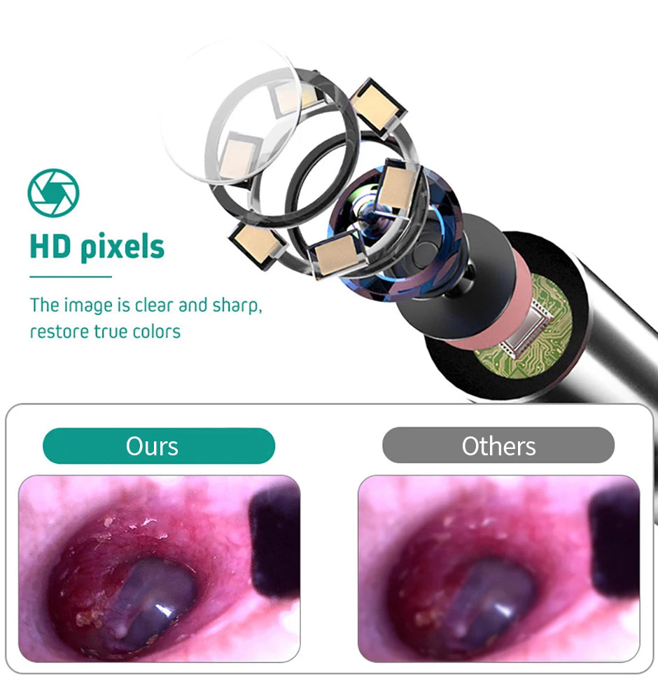 - Înregistrarea Full HD 1080P permite imagini clare și detaliate ale canalului auditiv pentru diagnostice clare.