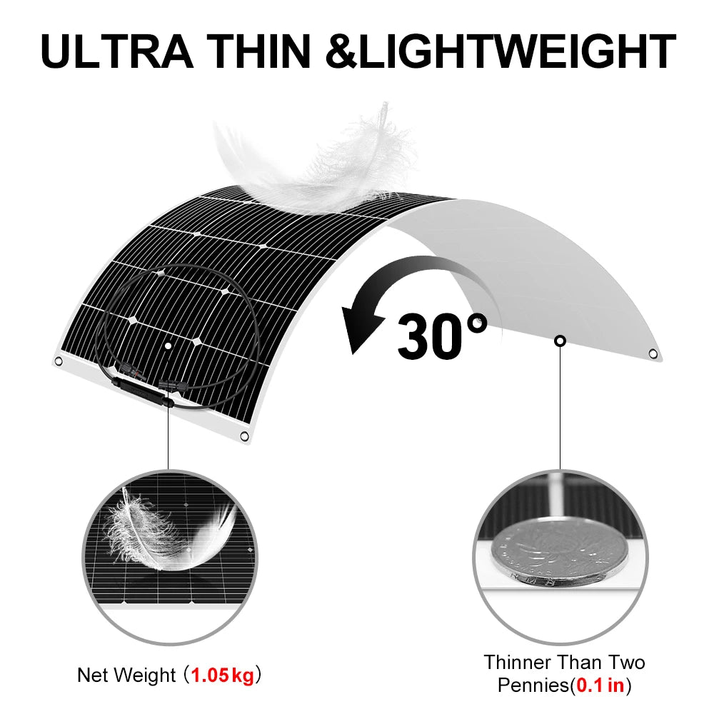 Panouri solare flexibile DOKIO 18V 200W 2PCS 100W impermeabile panou solar monocristalin pentru camping RV încărcare acasă 12V DFSP-100M