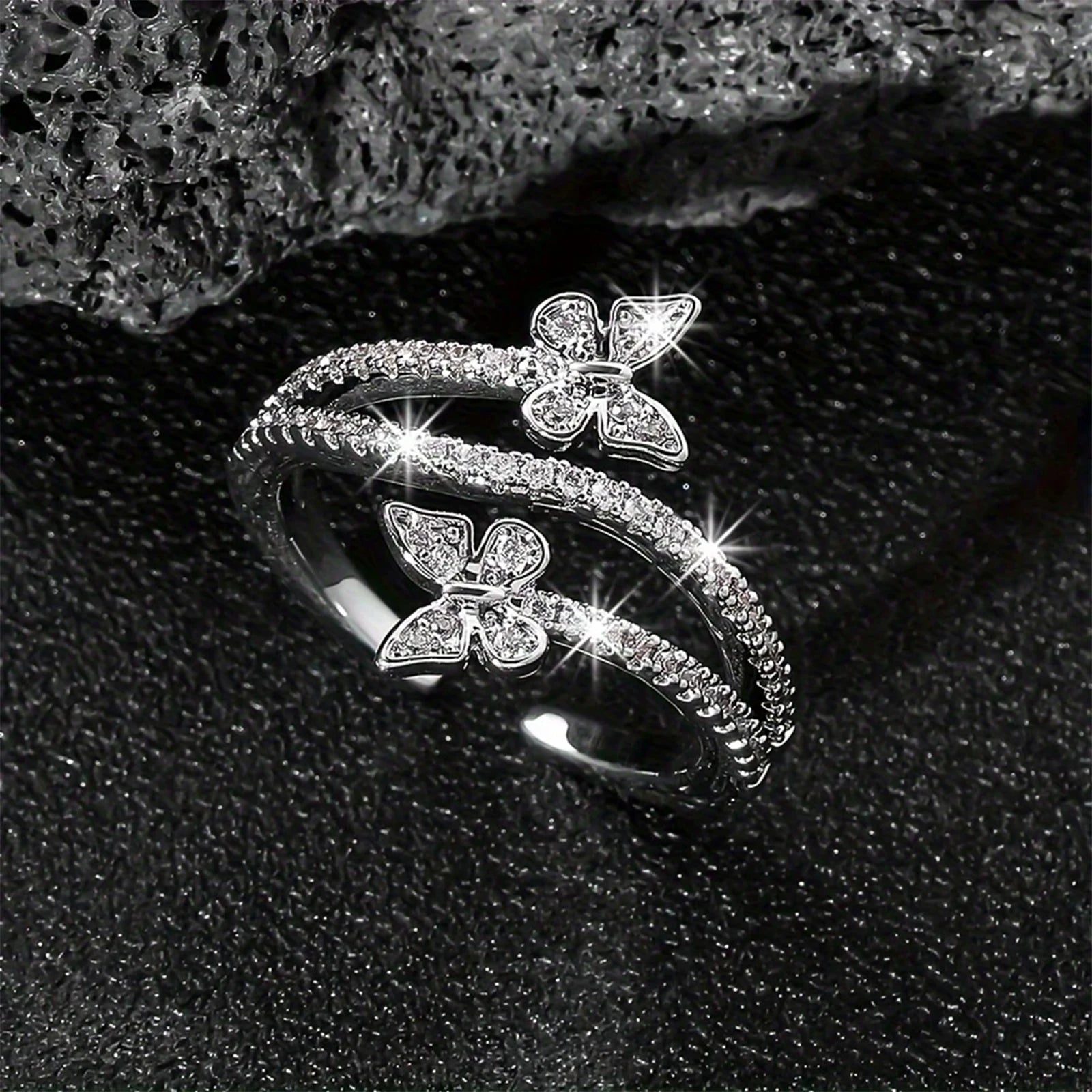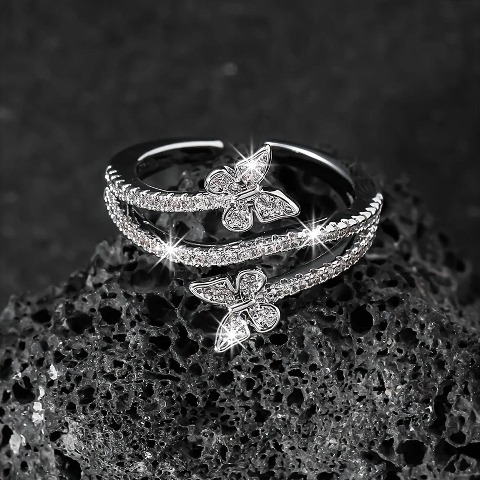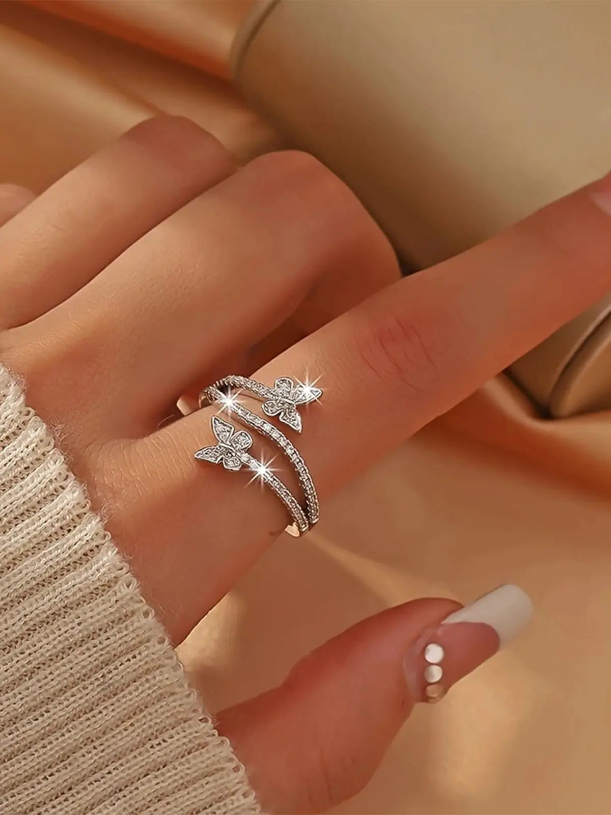 Inel elegant și reglabil cu fluture dublu – Farmec versatil pentru purtare zilnică și ocazii speciale