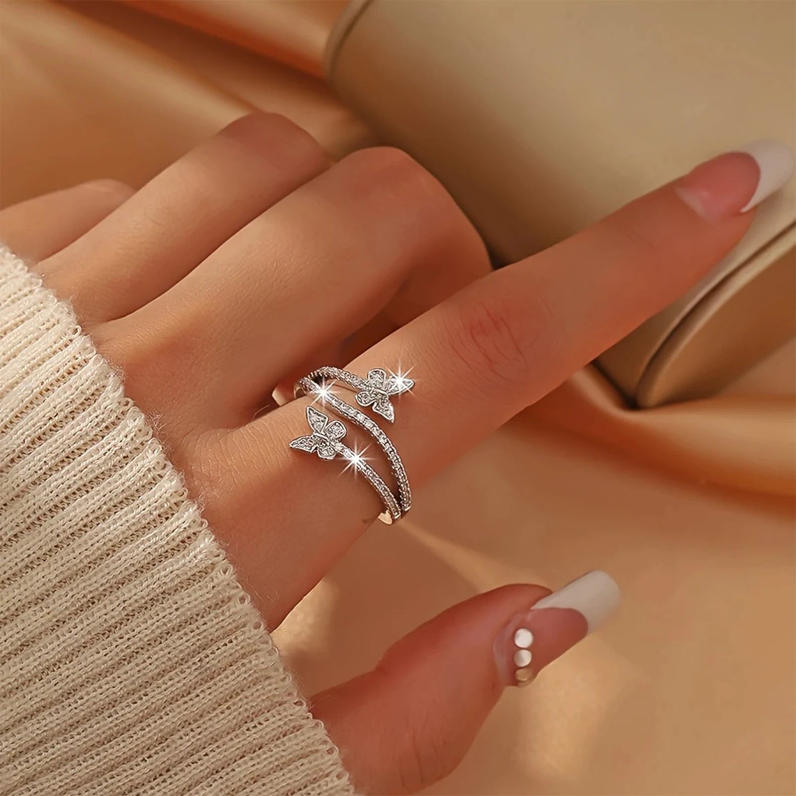 - 1 x Inel elegant și reglabil cu fluture dublu (cu trei straturi, reglabil)