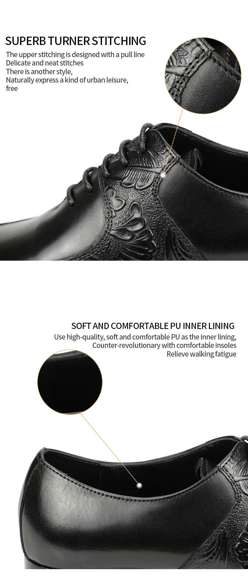 - Structură fină din piele care transmite un aspect nobil la fiecare pas și îmbunătățește vizual ținuta.