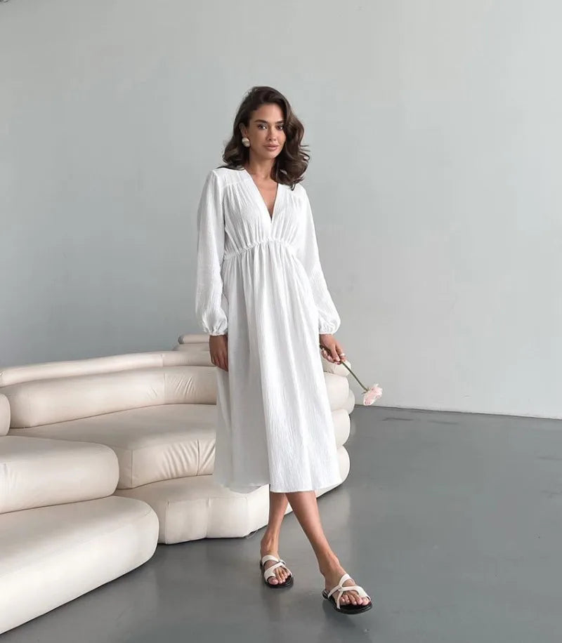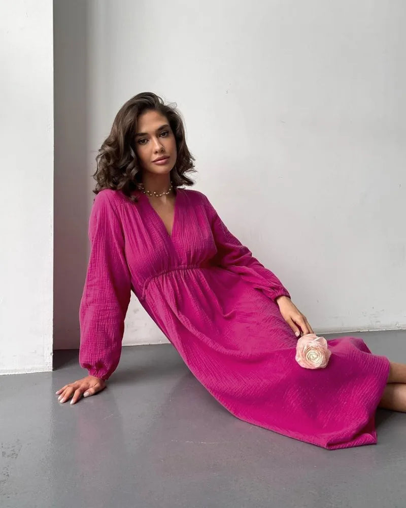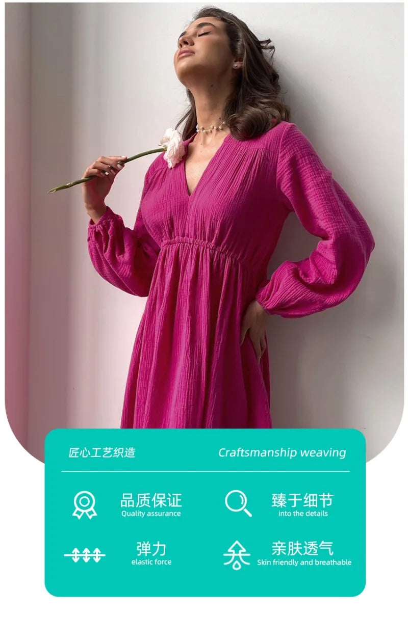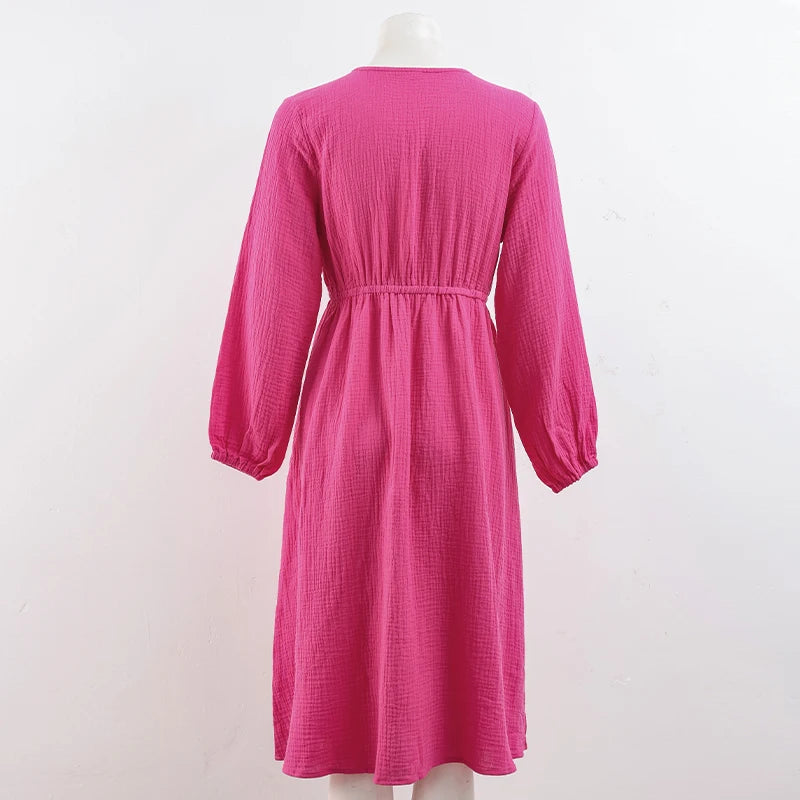 Rochii elegante pentru femei, 100% bumbac, muselină, mânecă lungă, decolteu în V, casual, petrecere, vacanță, plajă, alb, negru, halate, vestidos de mujer