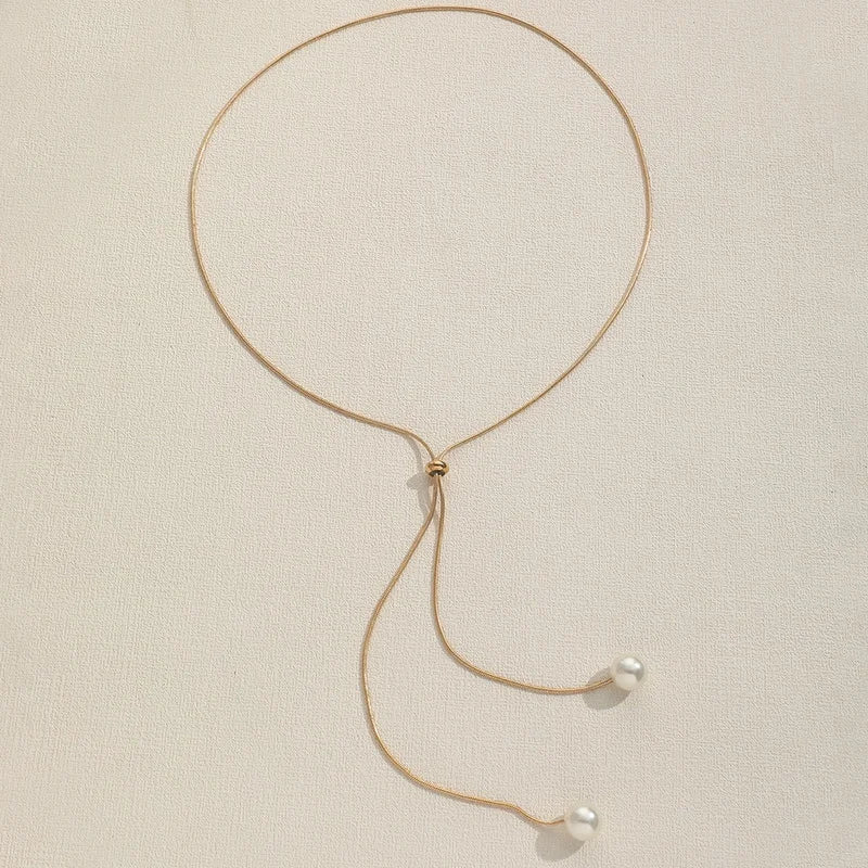- 1 x Colier elegant cu pandantiv lung, cu perle artificiale (conform descrierii)