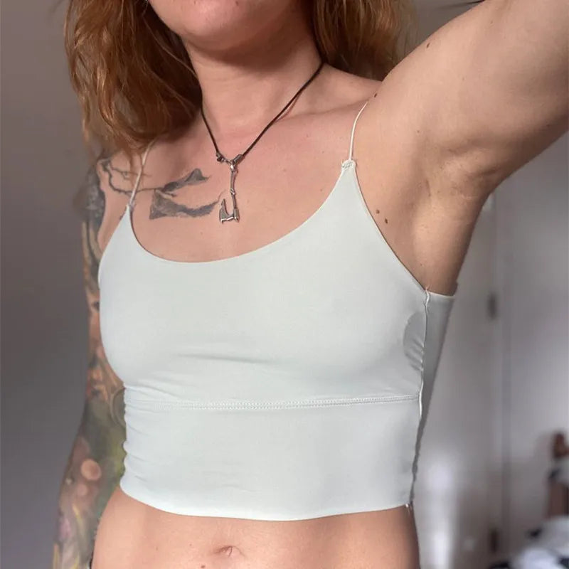 Topuri elegante pentru femei, crop, sutien de vară din mătase glacială, sport, cu bretele fine – Suport ușor și confort răcoros pentru zilele fierbinți