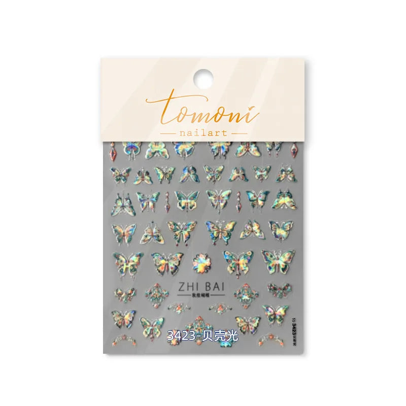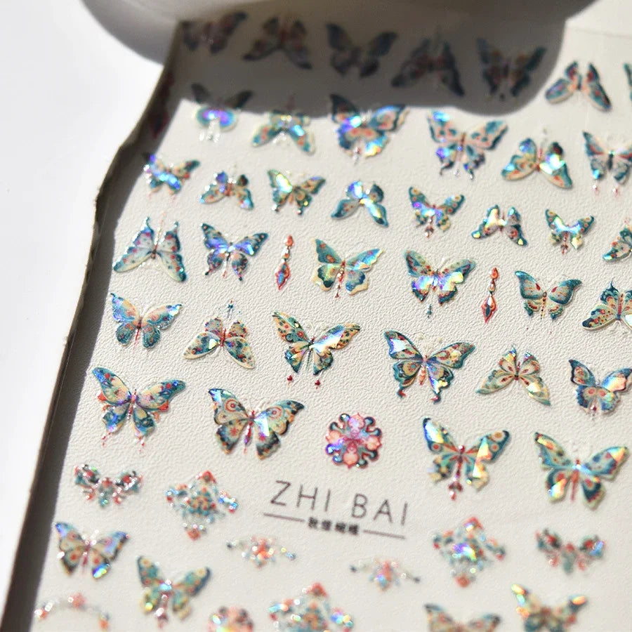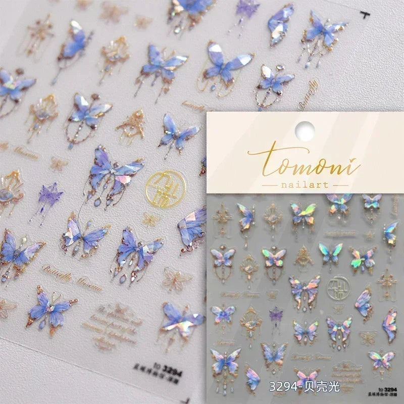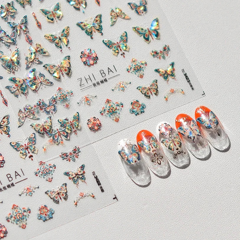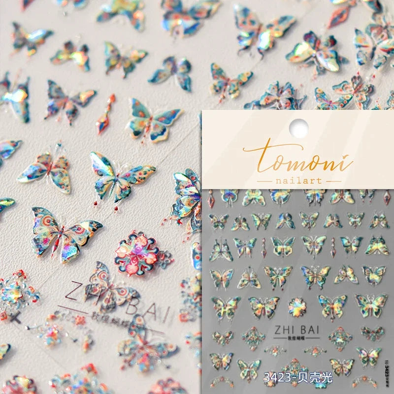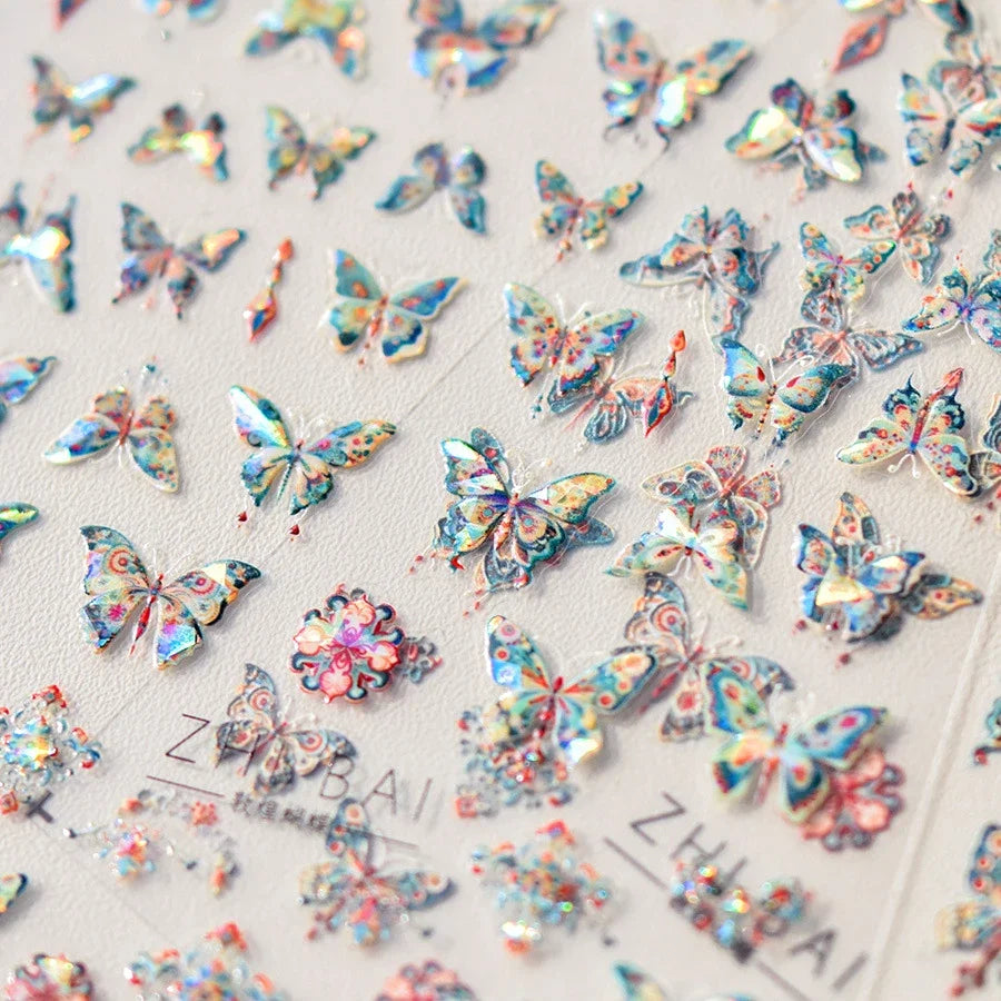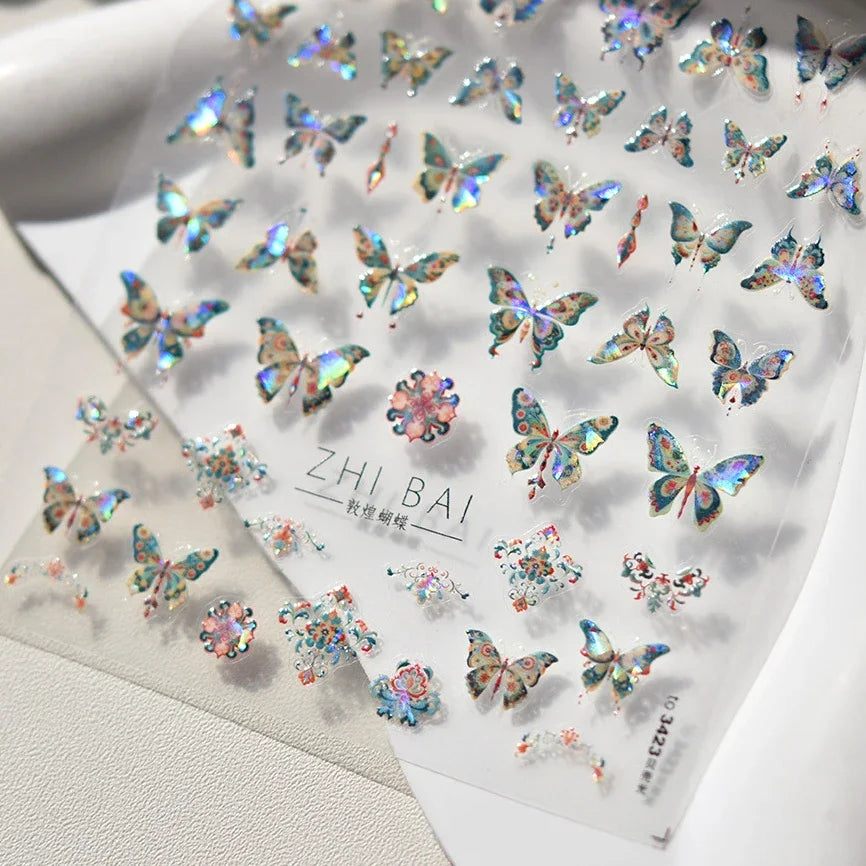 - 1 x Autocolant de unghii cu model fluture strălucitor, fantezie, Bohemia, 3D, relief moale, în relief