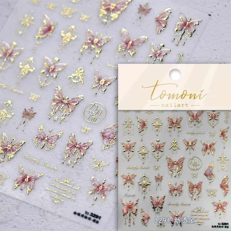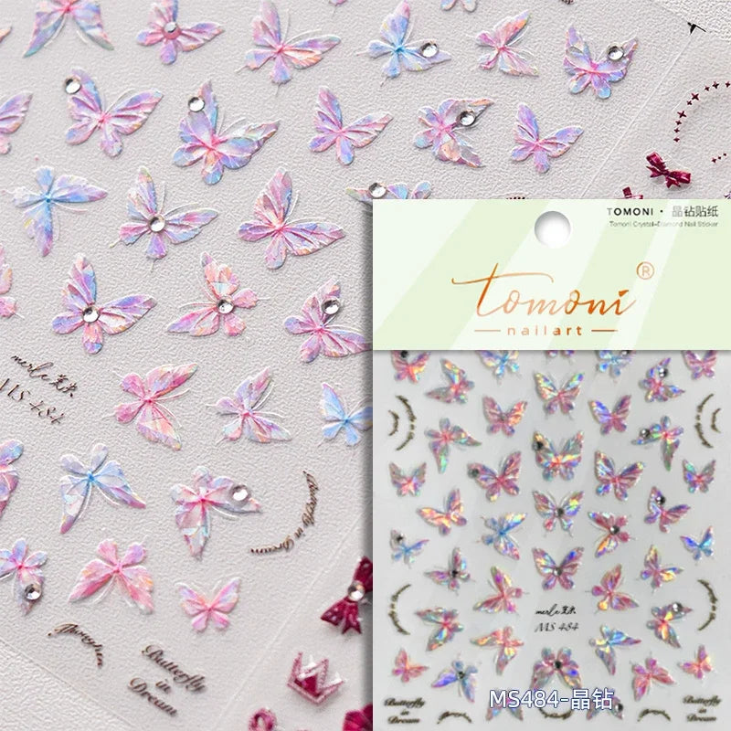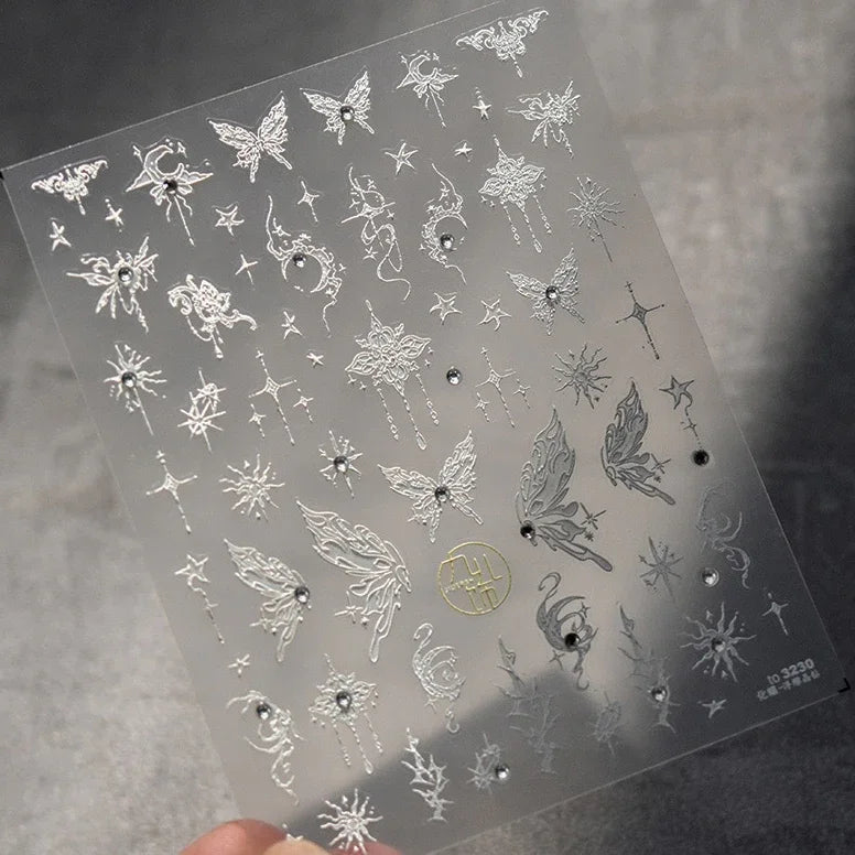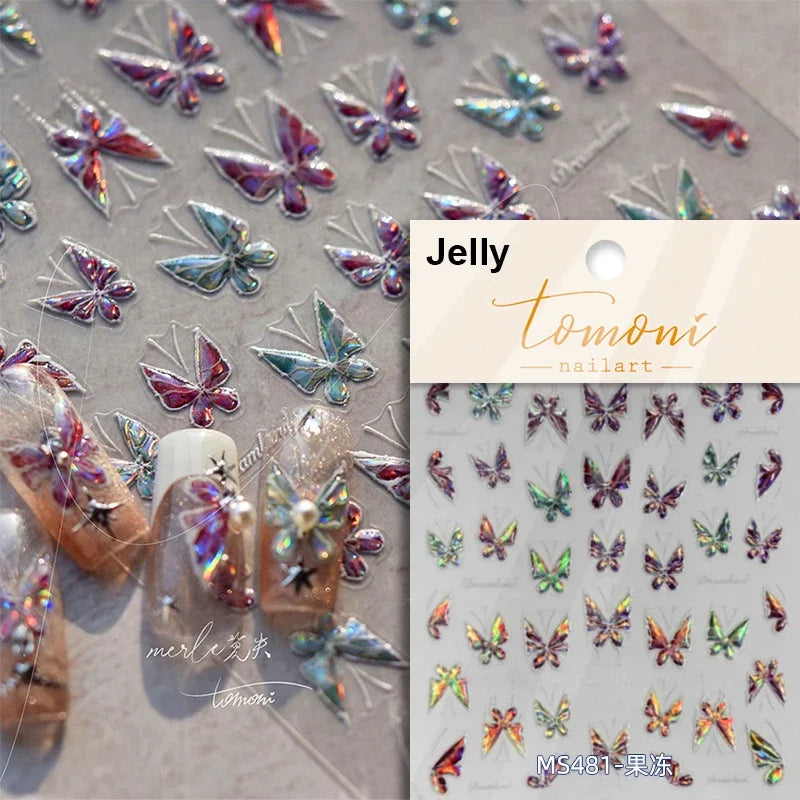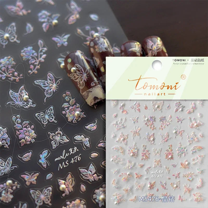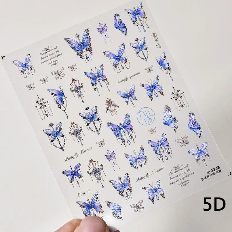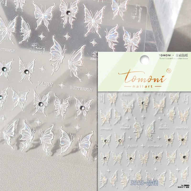 - 1 x Autocolant de unghii cu model fluture strălucitor, fantezie, Bohemia, 3D, relief moale, în relief