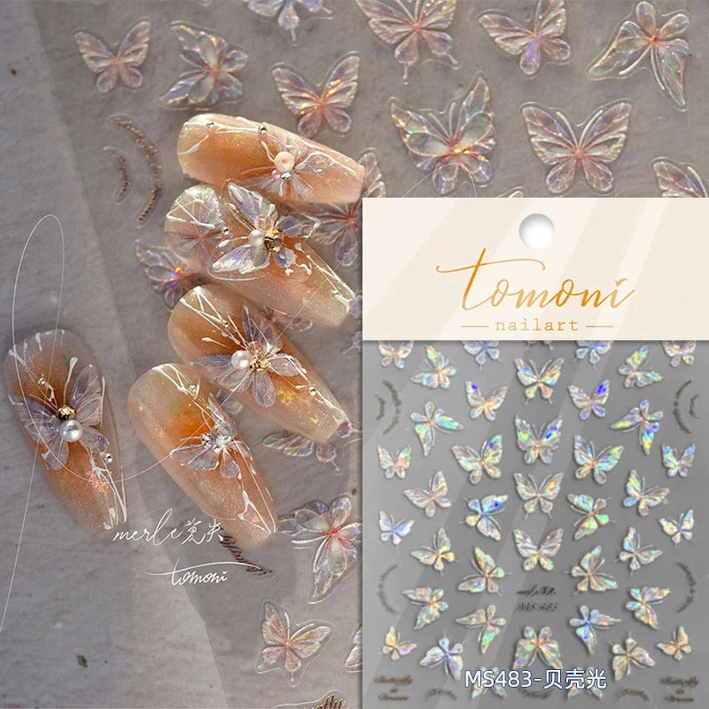 Fantezie strălucitoare Shell lumină fluture stras Bohemia fierbinte 5D moale în relief relief unghii arta autocolant 3D Decal decorare manichiură