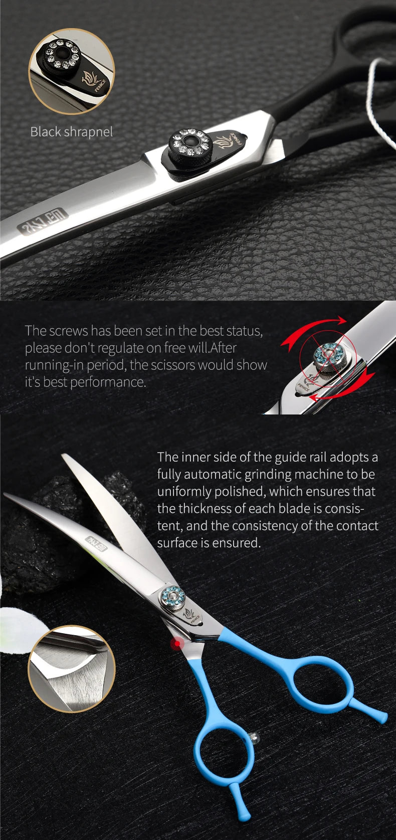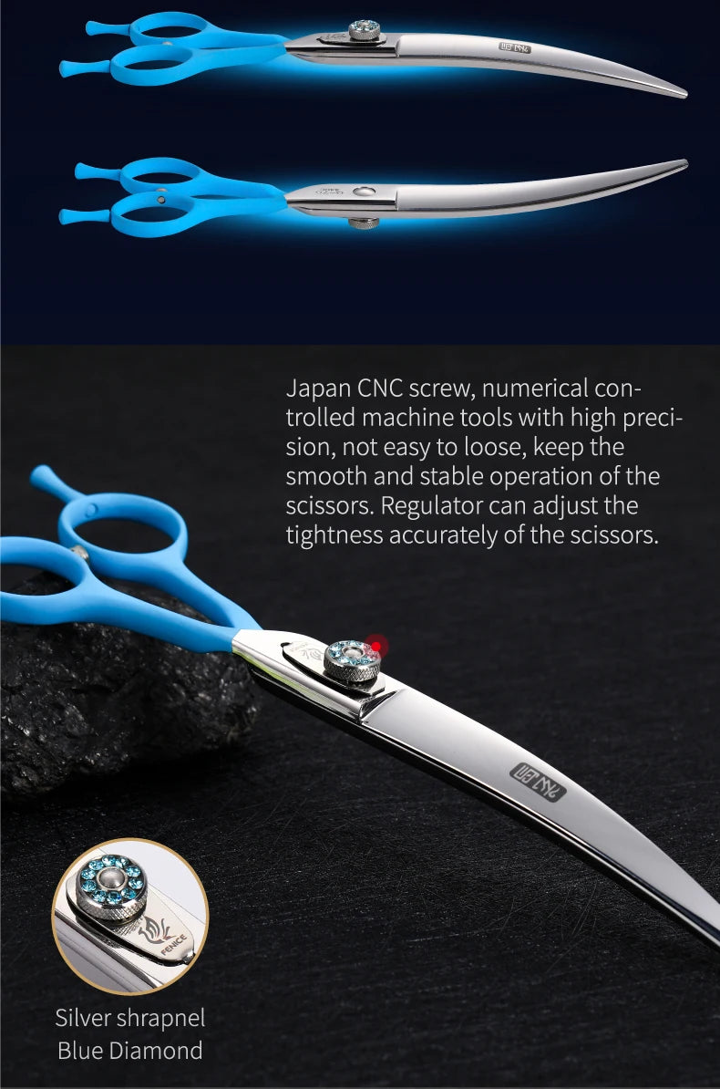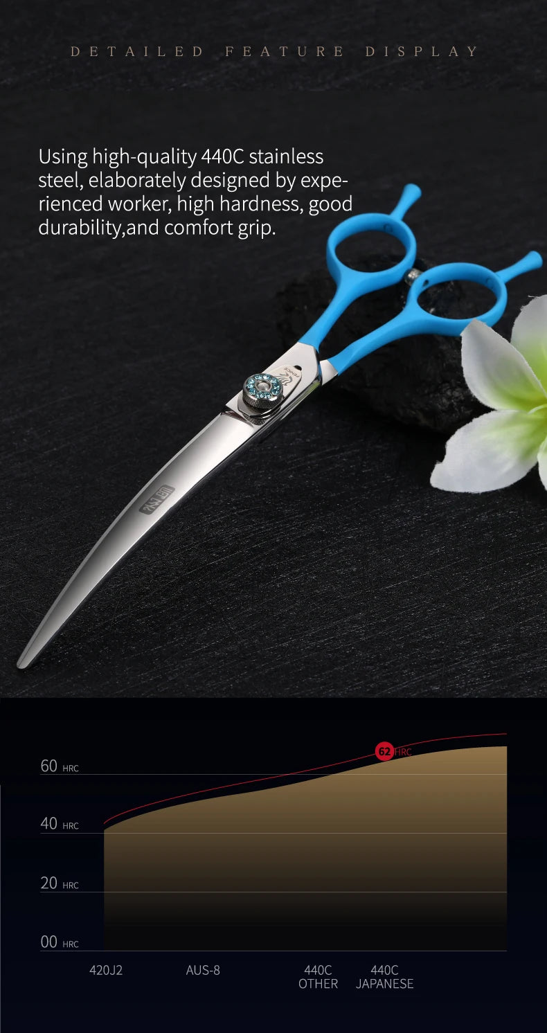 Foarfece de îngrijire profesionale Fenice, negre, 2025: 7.0-8.0 inch, curbate, din oțel inoxidabil JP 440C - Instrumente de îngrijire pentru câini Pomeranian Teddy