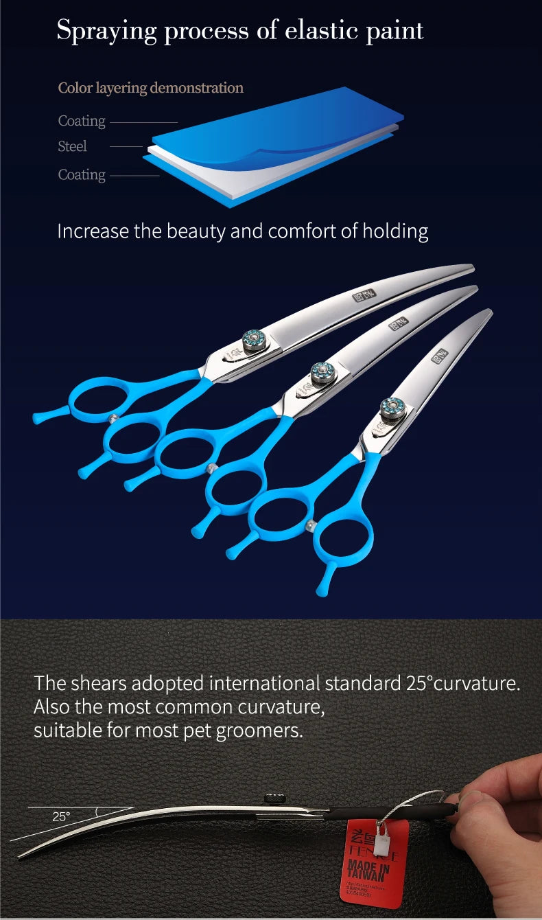 - Special concepute pentru câinii din rasele Teddy și Pomeranian, foarfecele sunt potrivite și pentru alte rase de talie mică și medie.