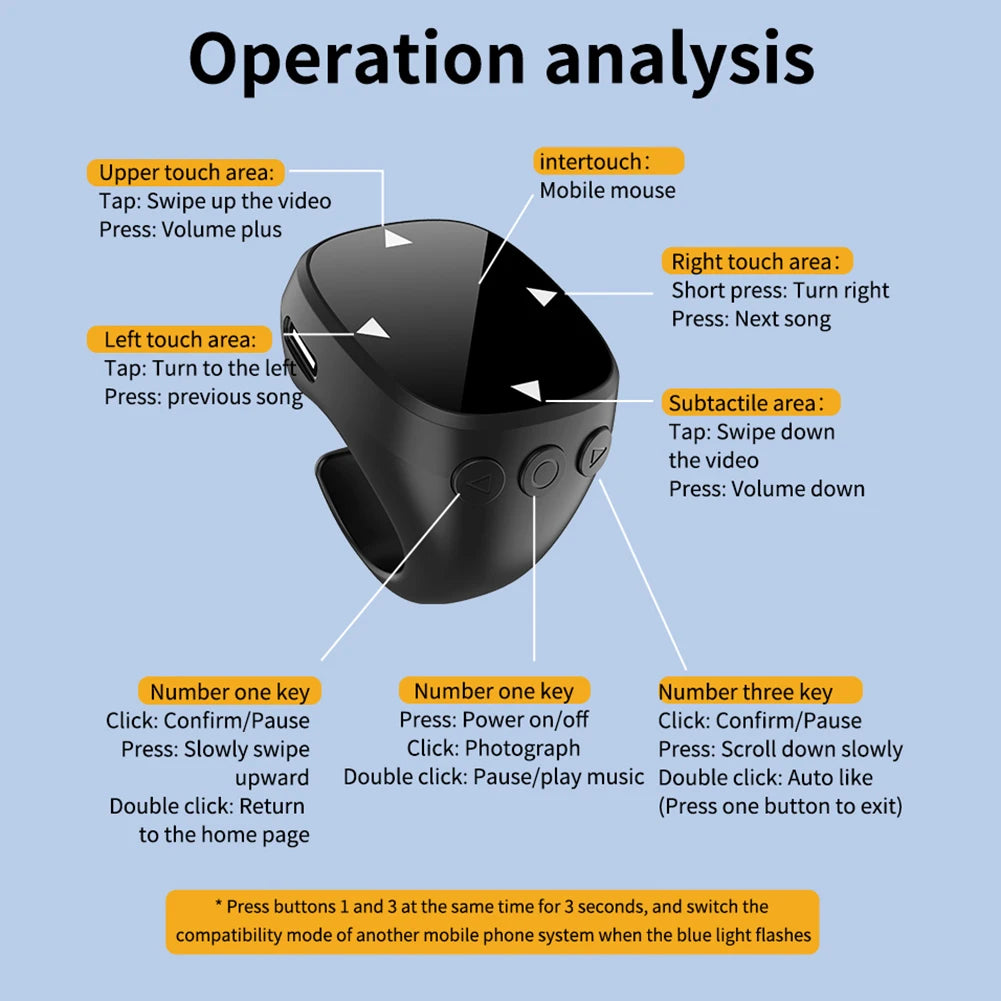 - 1 x Telecomandă cu inel de derulare cu vârful degetului, telecomandă wireless Bluetooth