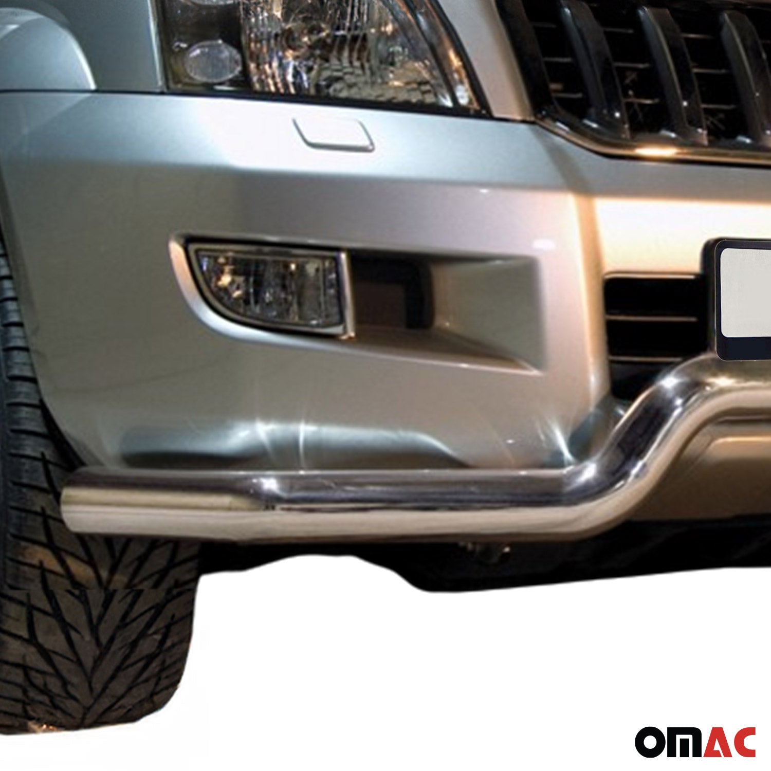 Bară de protecție/buton față pentru Toyota Land Cruiser 120 2003-2009, argintie, cu ABE (omologare de tip germană).