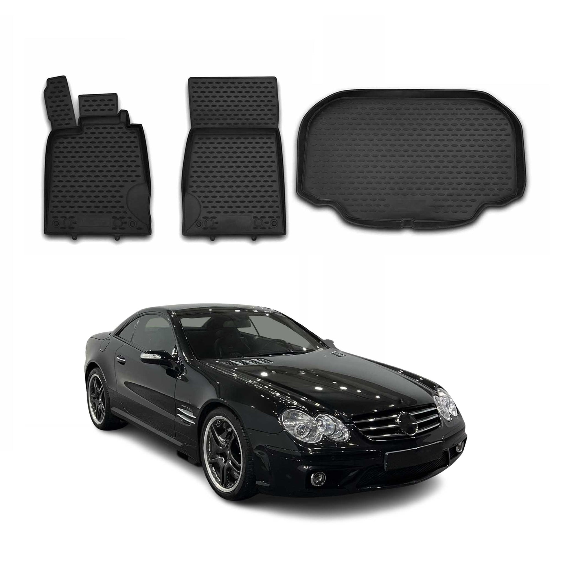 Covorașe și portbagaj pentru Mercedes SL Class R230 2008-2012, cauciuc, 3x