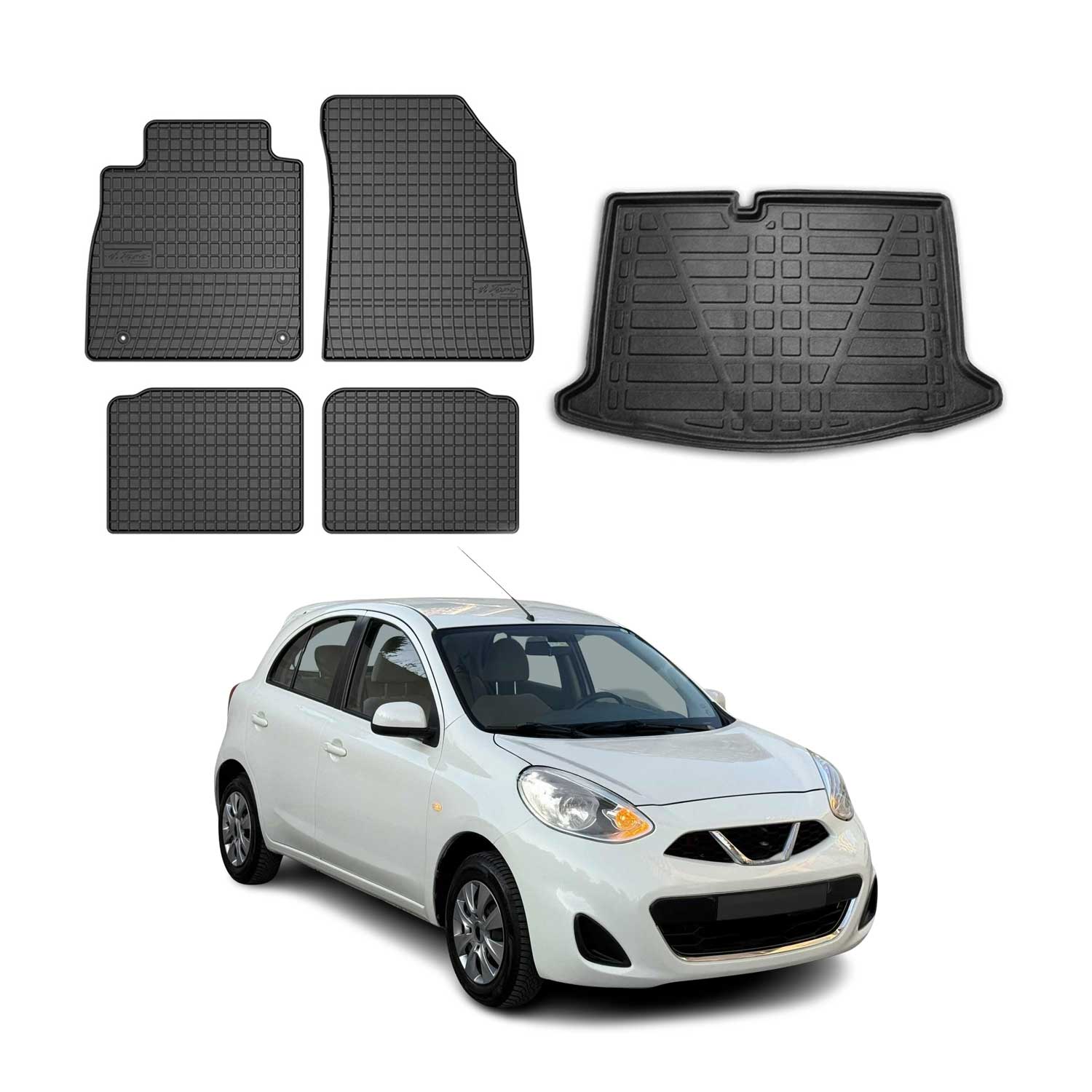 Set covorașe și tapițerie portbagaj pentru Nissan Micra K14 2017-2025, cauciuc, negru, 5x