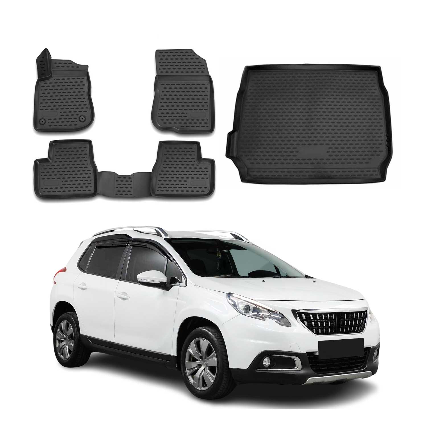 Set covorașe și tapițerie portbagaj pentru Peugeot 2008 2013-2020, cauciuc TPE, negru, 5x