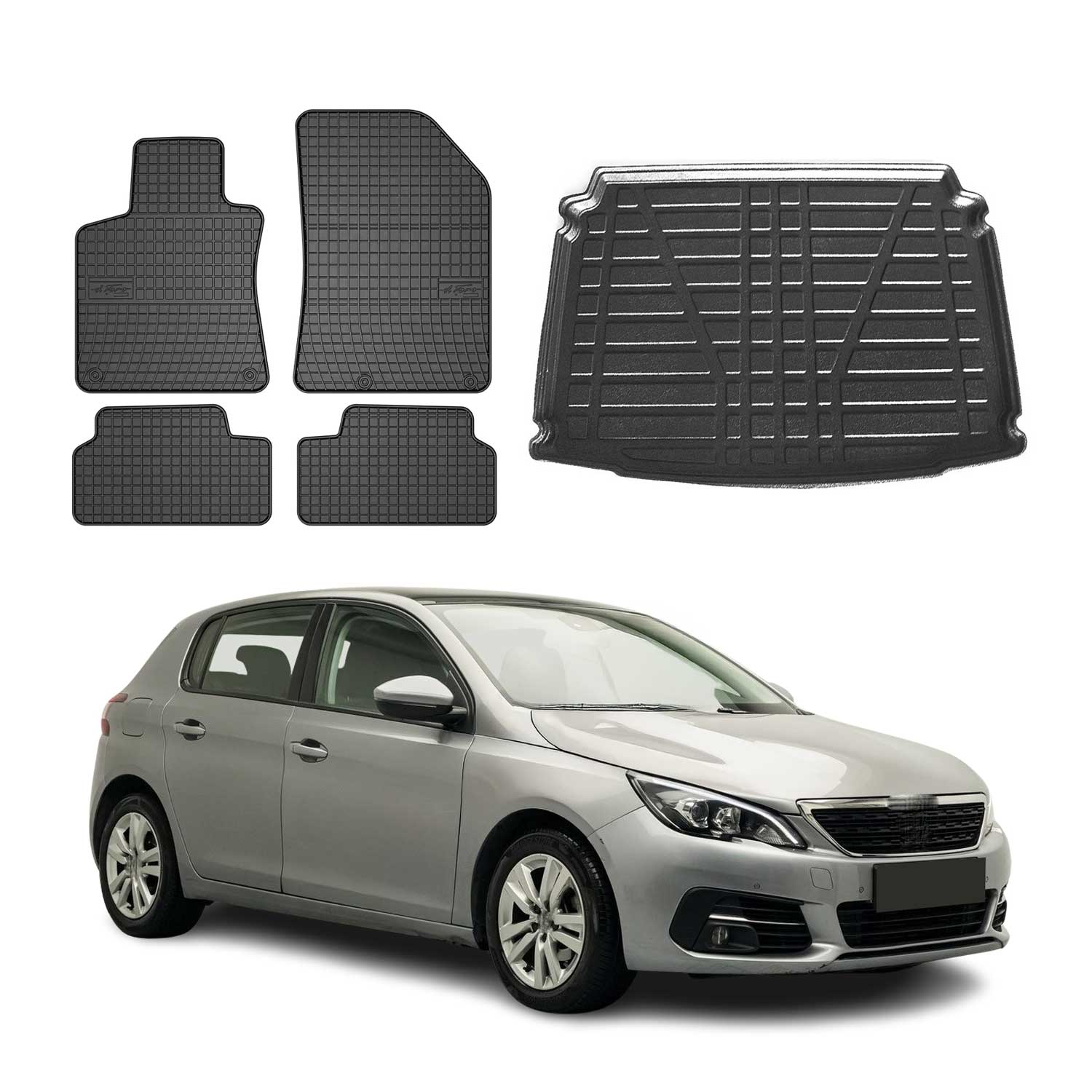 Set covorașe și tapițerie portbagaj pentru Peugeot 308 2014-2021, cauciuc TPE, negru, 5x