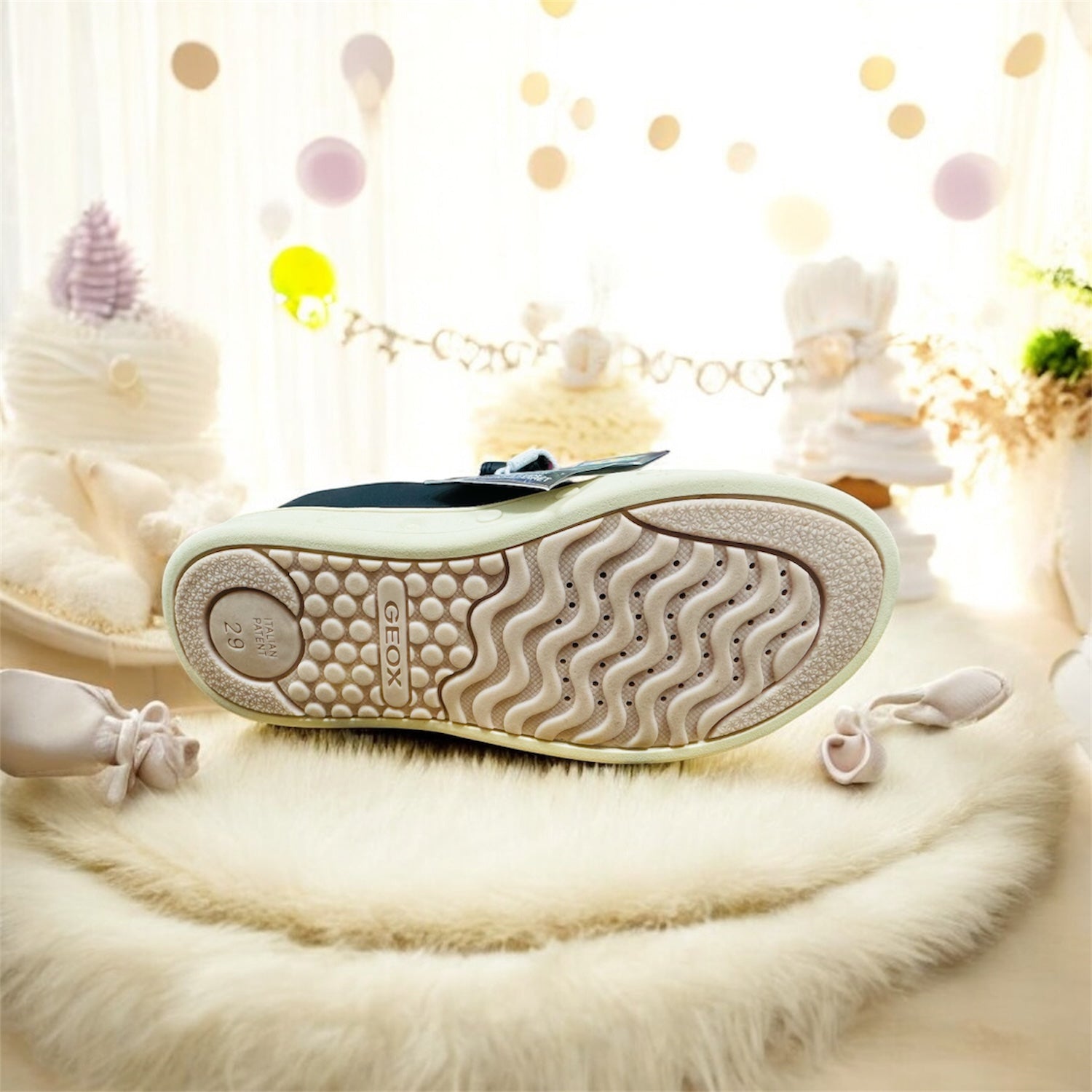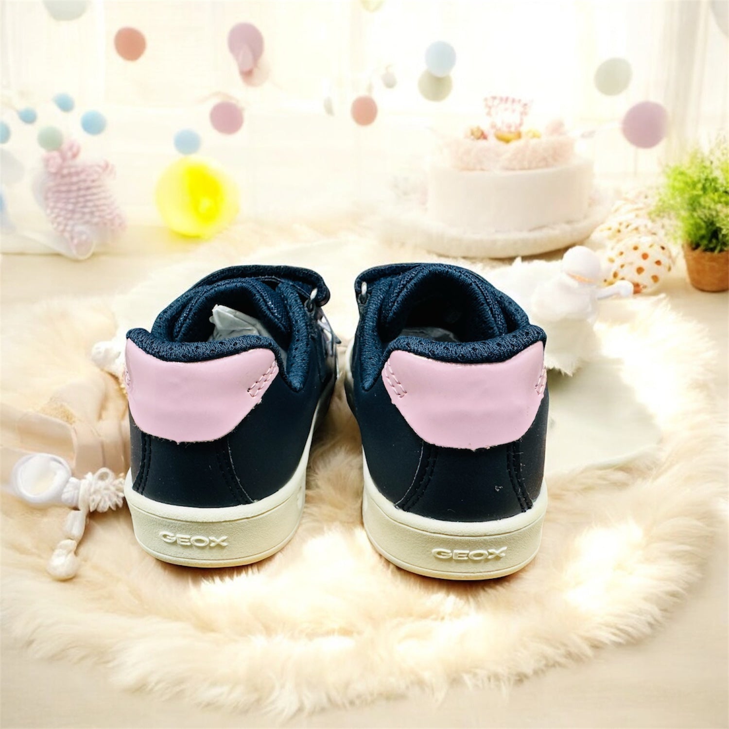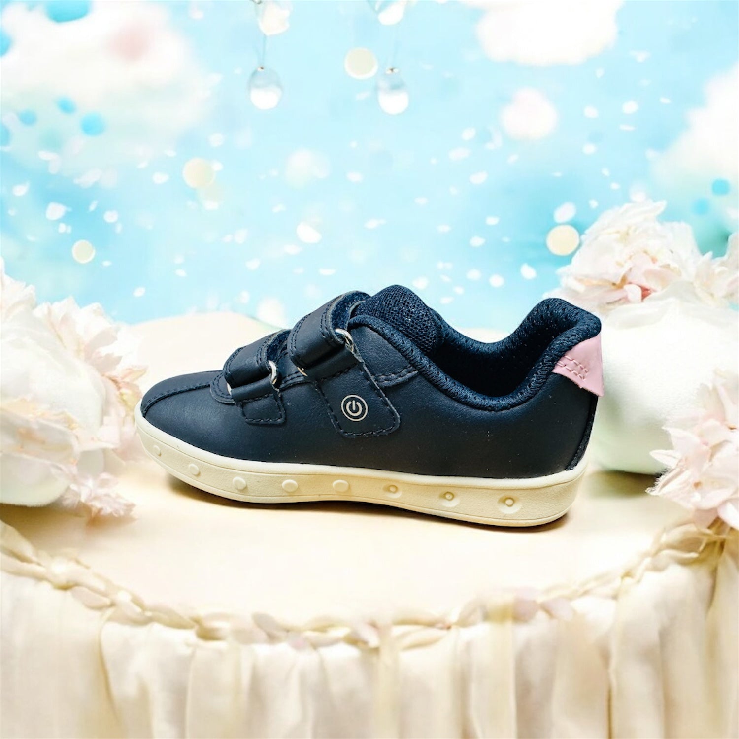 Teniși sport casual, confortabili și cu croială joasă, pentru fete, cu un aspect sportiv de teren de tenis. Partea superioară bleumarin atractivă și feminină este pusă în valoare de detalii roz contrastante și ornamente în formă de stea. Modelul Skylin este confecționat dintr-un material cu aspect de piele și prezintă luminițe în talpă, adăugând o notă de fantezie ținutelor de zi cu zi.