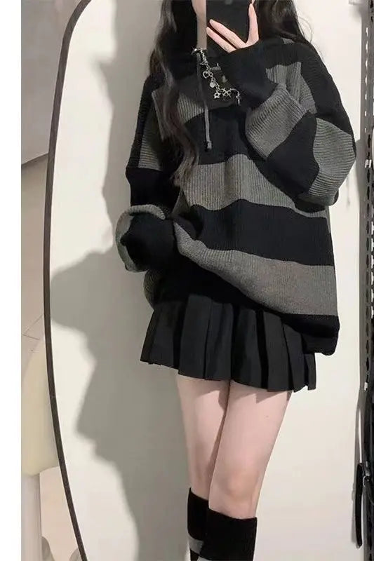 Pulover tricotat cu glugă Gidyq – Confort și dungi elegante pentru zile răcoroase