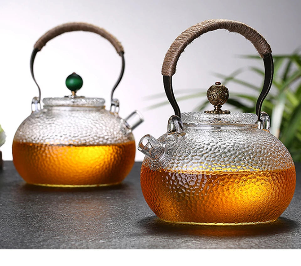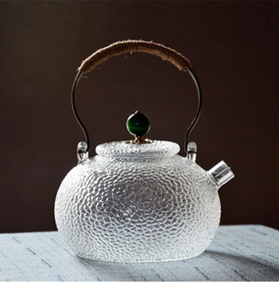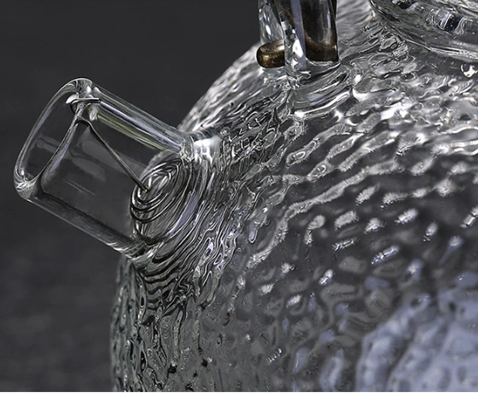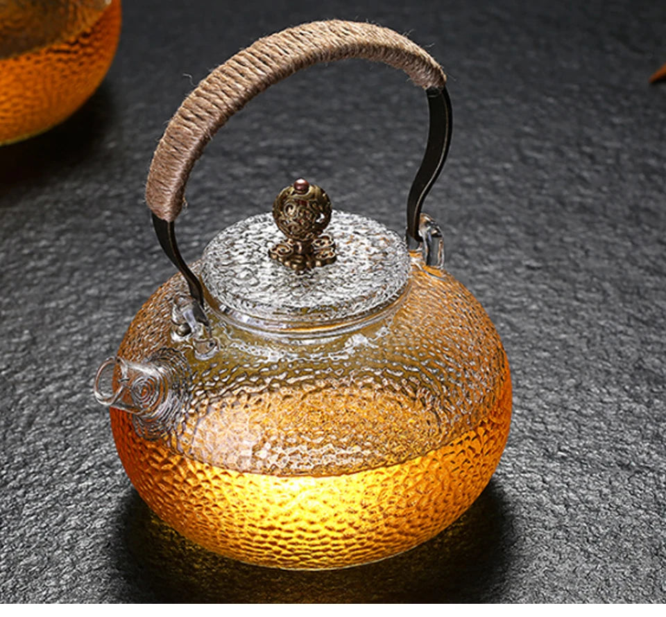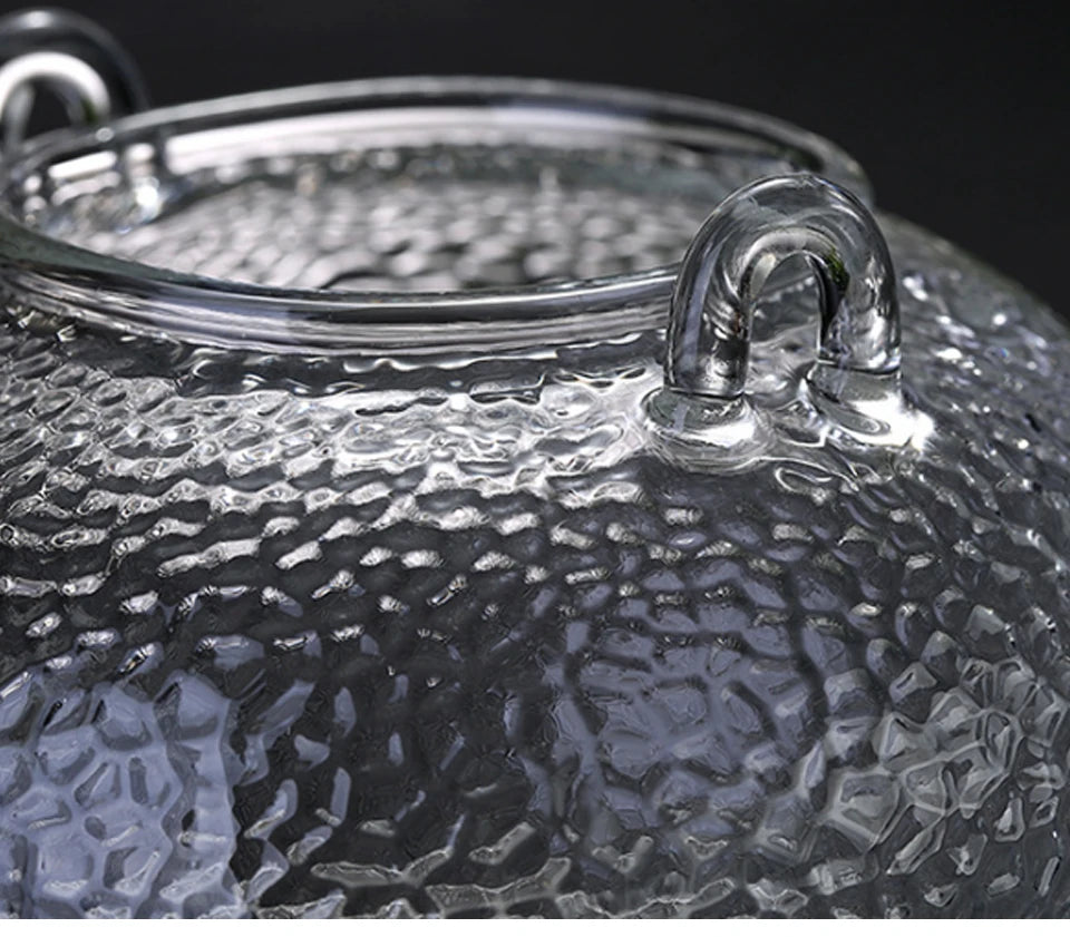 Set de ceai cu ceainic din sticlă rezistent la temperaturi ridicate – Elegant ceai lucrat manual, cu aspect ciocănit