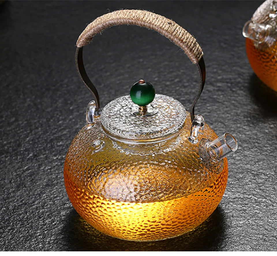 Experimentați plăcerea pură a ceaiului: un ceainic din sticlă rezistent la căldură, lucrat manual, care combină gustul, estetica și durabilitatea.