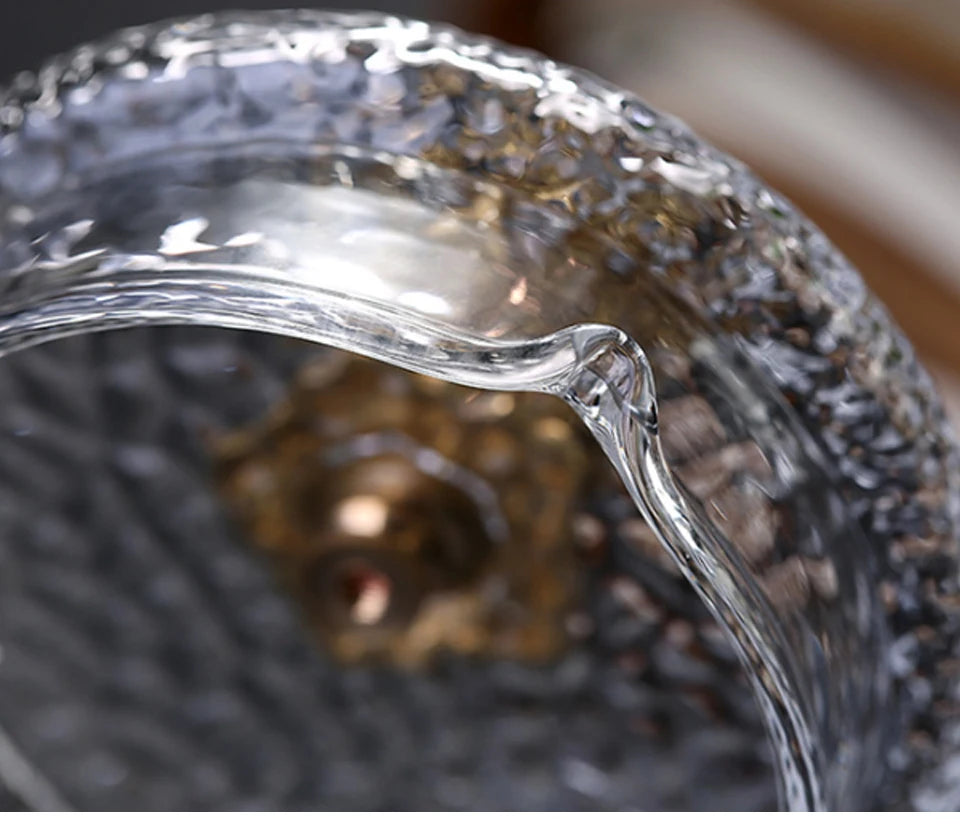 Combinând designul tradițional cu funcționalitatea contemporană, acest set de ceai este potrivit atât ca ustensilă practică de bucătărie, cât și ca piesă decorativă elegantă. Combinația de sticlă rezistentă la căldură și textură artizanală ciocănită face ca fiecare ceainic să fie unic, promovând consumul atent de ceai și lăsând o impresie deosebită în orice gospodărie. Capacitatea compactă permite infuzii controlate pentru o aromă intensă în loturi mici, ideale pentru ceaiuri de înaltă calitate precum Pu Erh sau alte infuzii selecte. Datorită vizibilității clare asupra procesului de infuzare, utilizatorii pot observa optim dezvoltarea culorii și aromei și, astfel, pot regla cu precizie procesul de preparare.