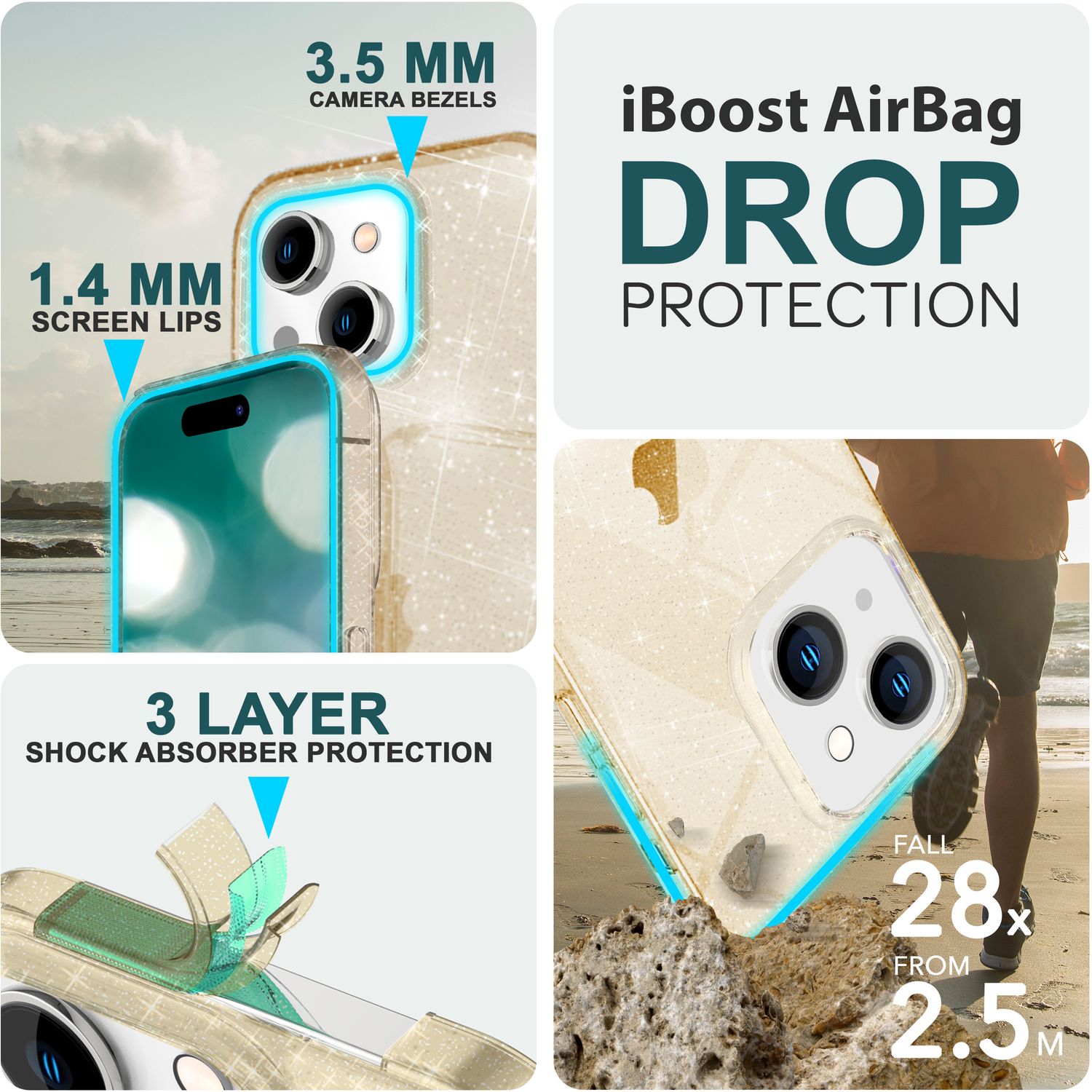 - Material: Amestec de silicon transparent cu TPU absorbant de șocuri