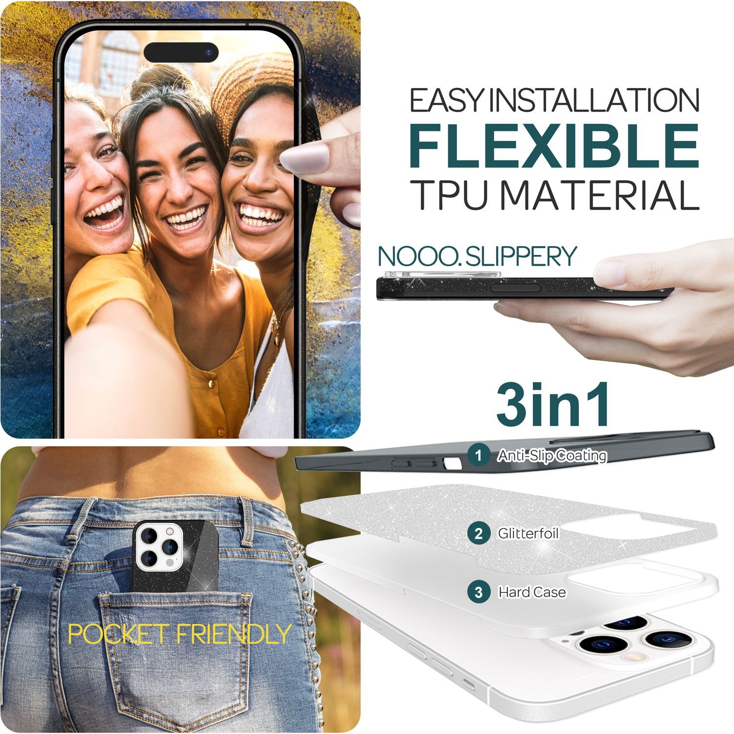 Carcasă sclipitoare pentru iPhone 15 Pro, carcasă hibridă cu sclipici, carcasă de protecție din silicon