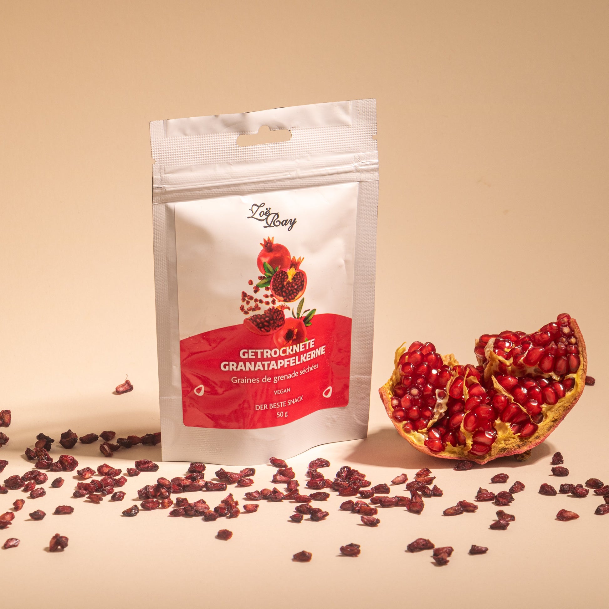 Descoperă semințele de rodie uscate natural de la VIVA LA VIDA: o gustare aromată, bogată în nutrienți, care oferă polifenoli antioxidanți și îmbunătățește gustul și sănătatea meselor tale zilnice.