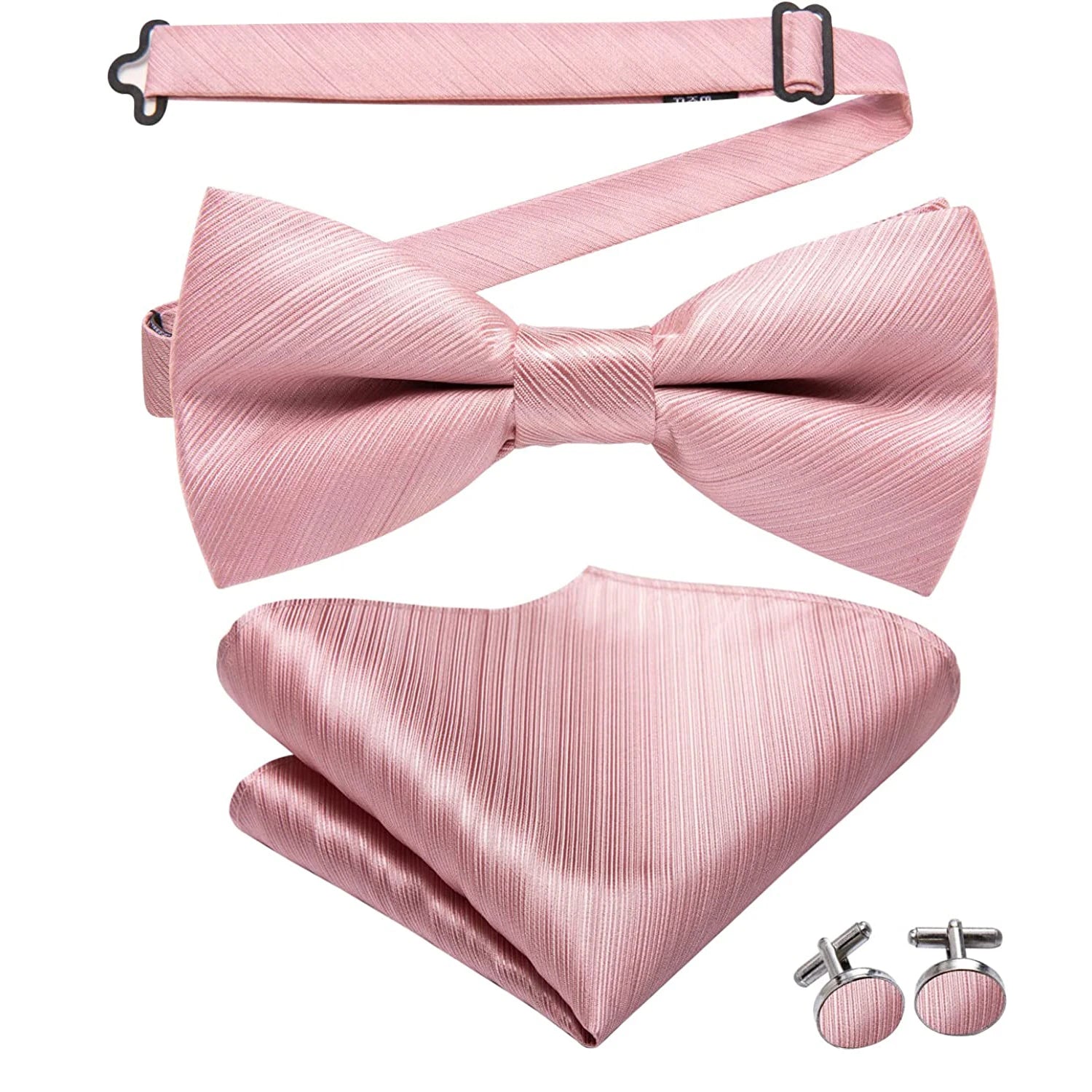 Papion Hi-Tie din mătase roz piersică, somon, pentru bărbați, set de butoni de buzunar, cu nod fluture, pentru nunți și afaceri