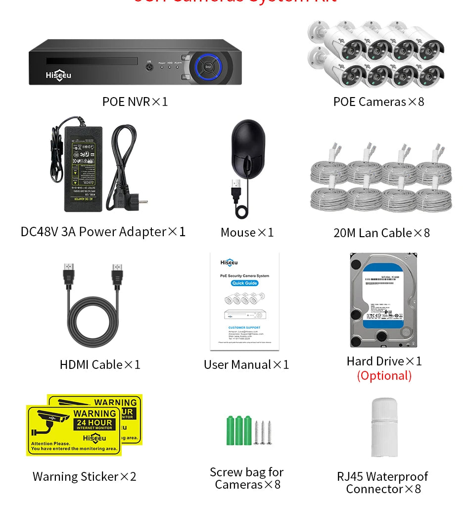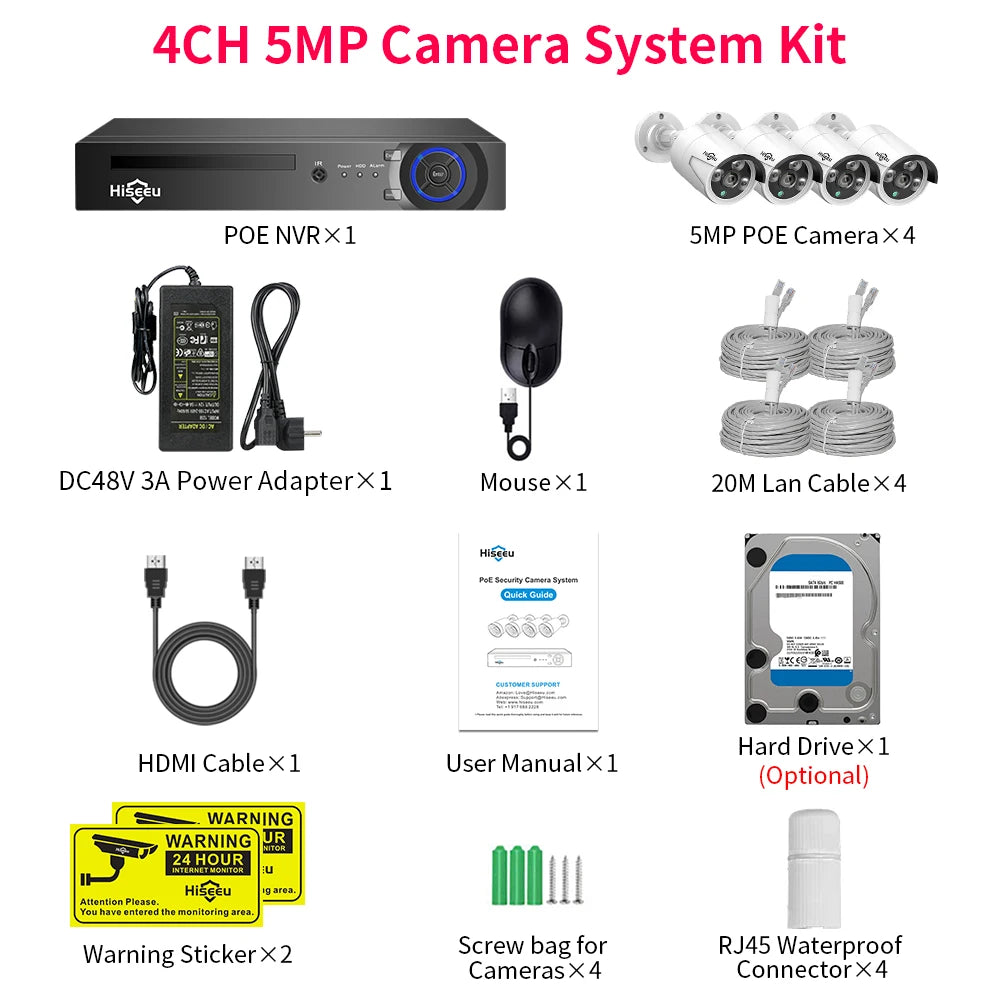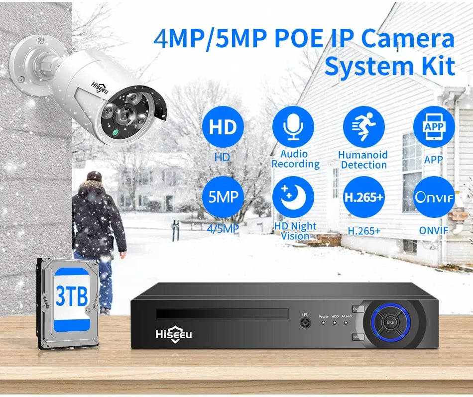 Sistem de supraveghere Hiseeu 5MP/3MP 8CH POE NVR – Supraveghere video și audio fiabilă și rezistentă la intemperii pentru casa și afacerea ta